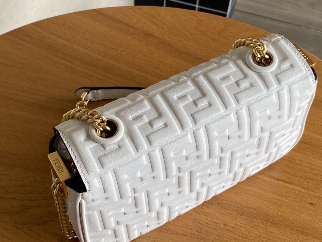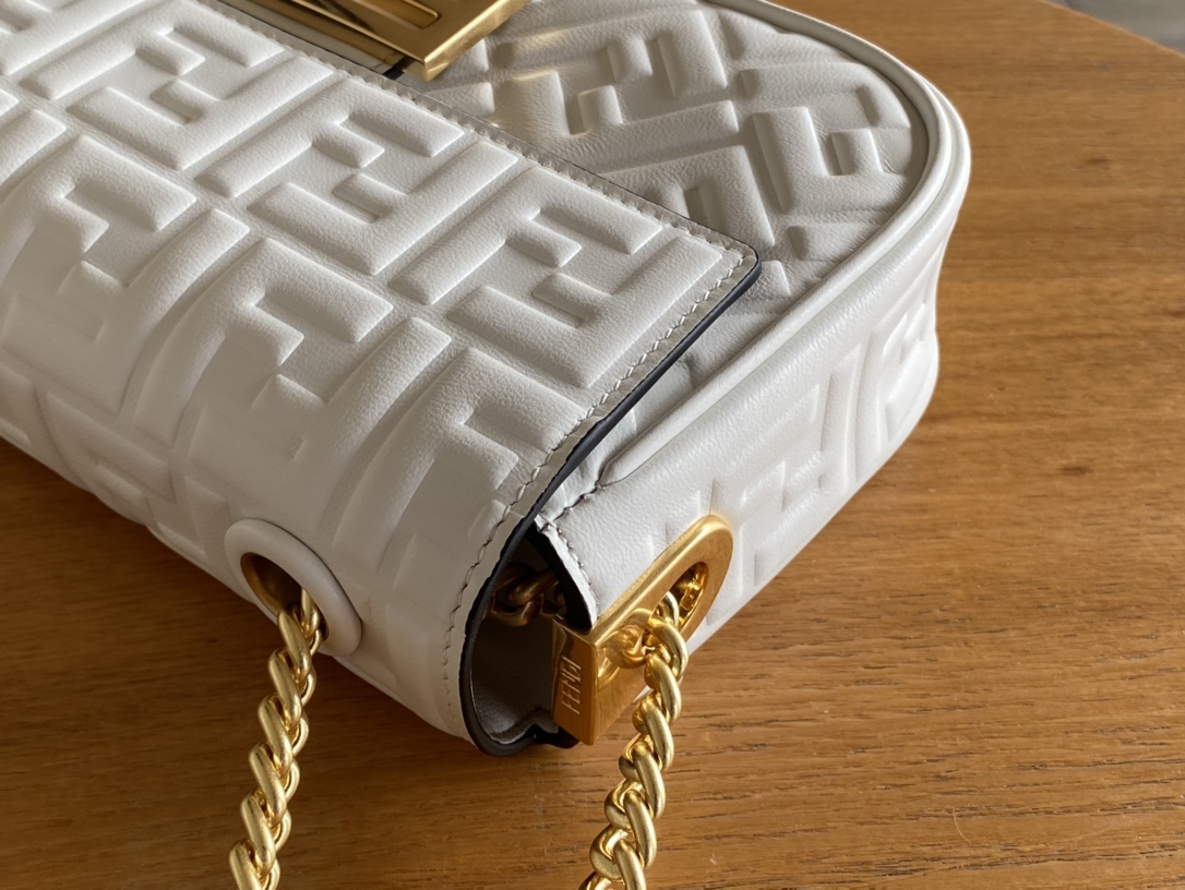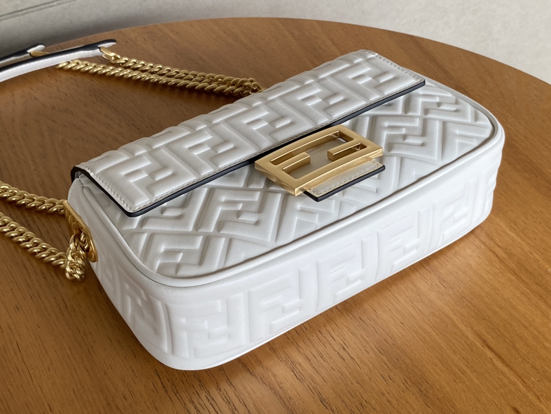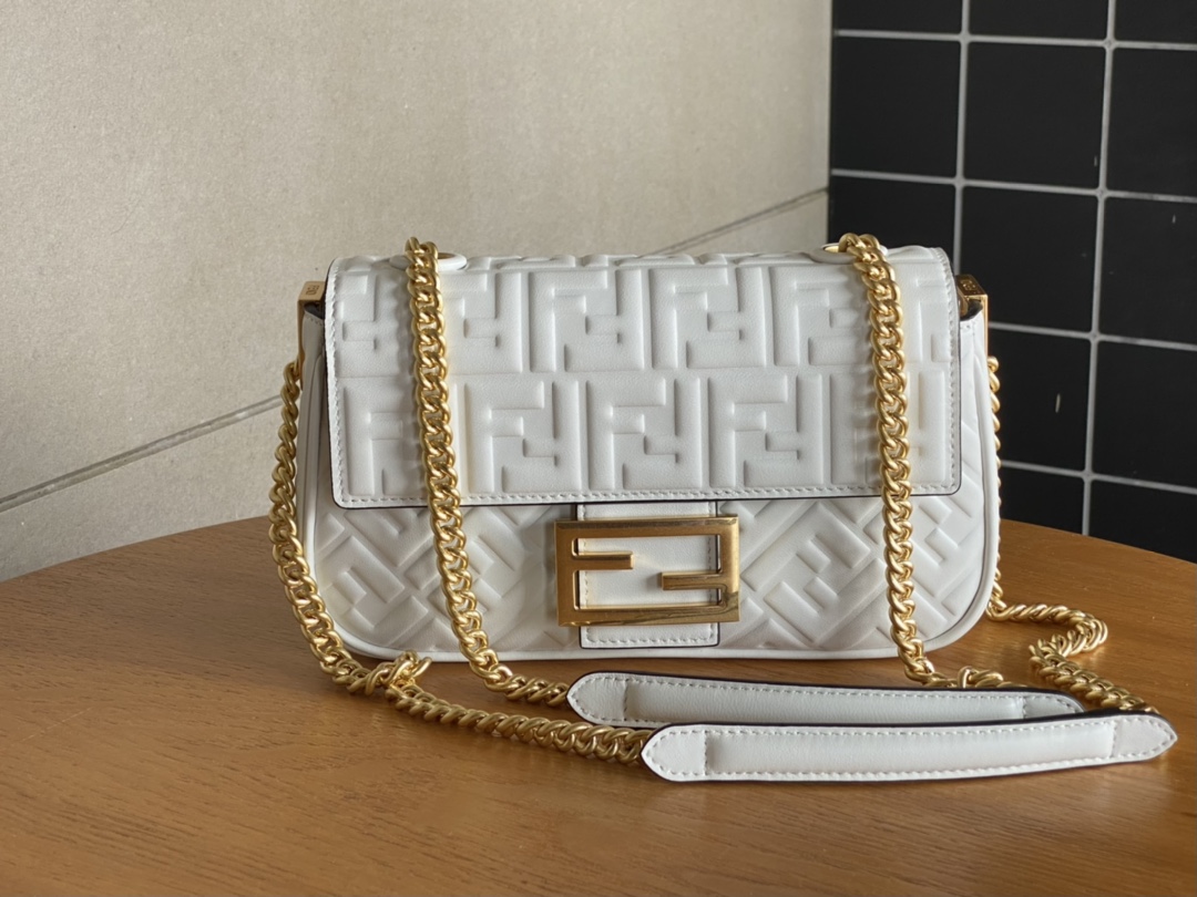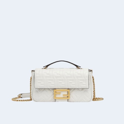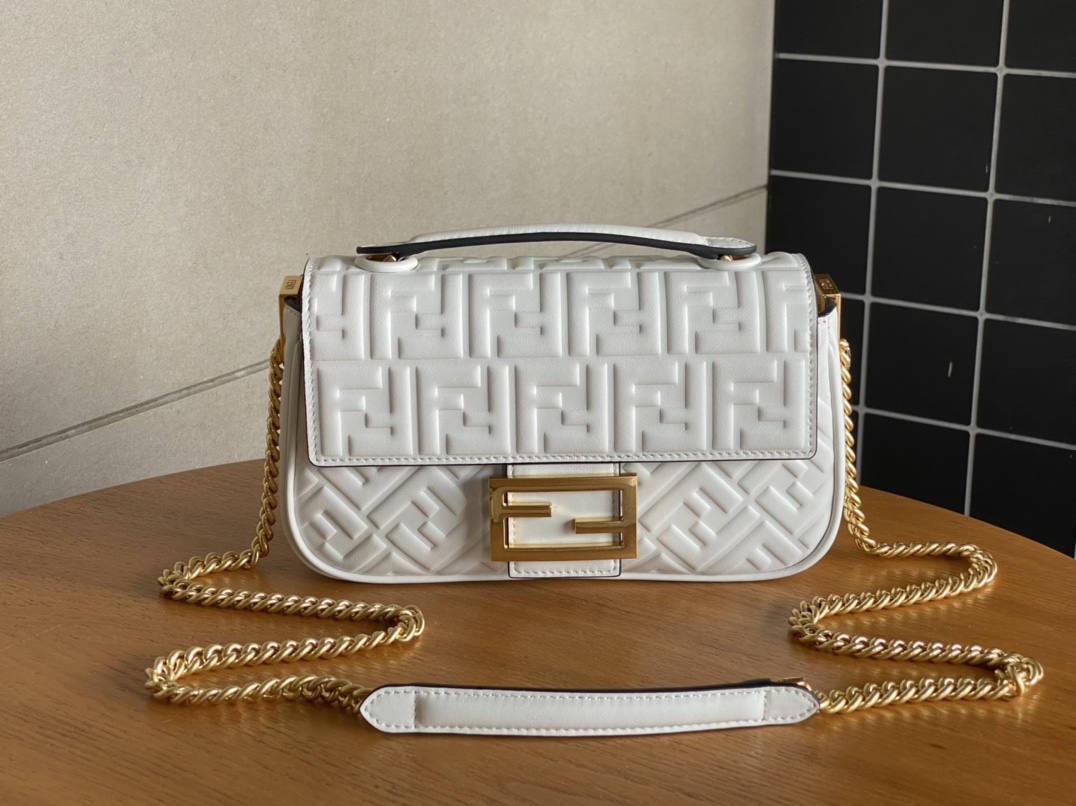 펜디 바게트 자카드 패브릭 미디엄 체인 백
