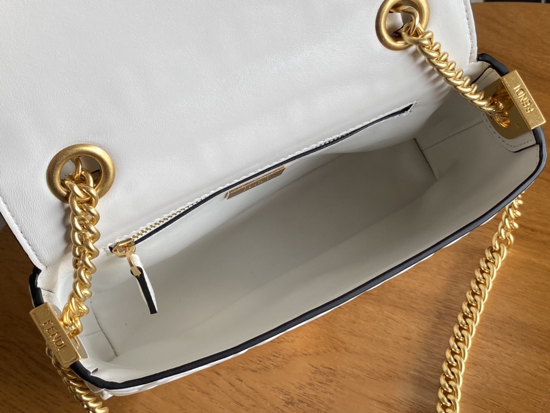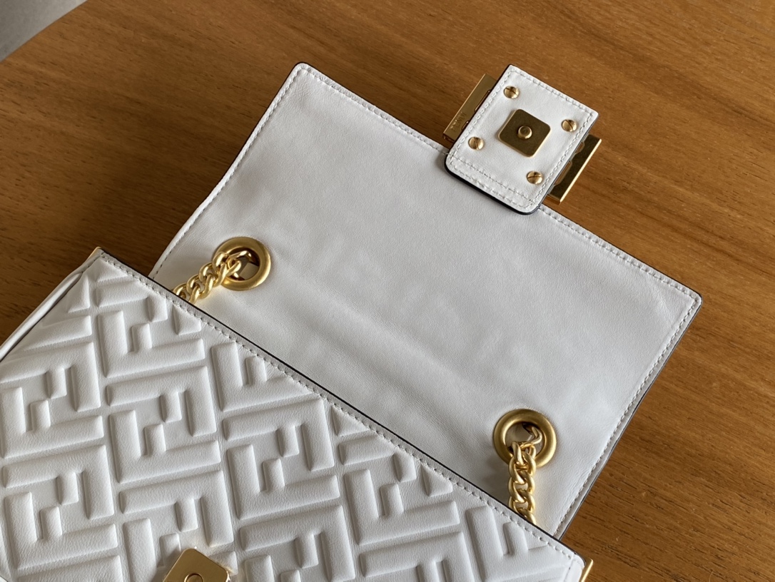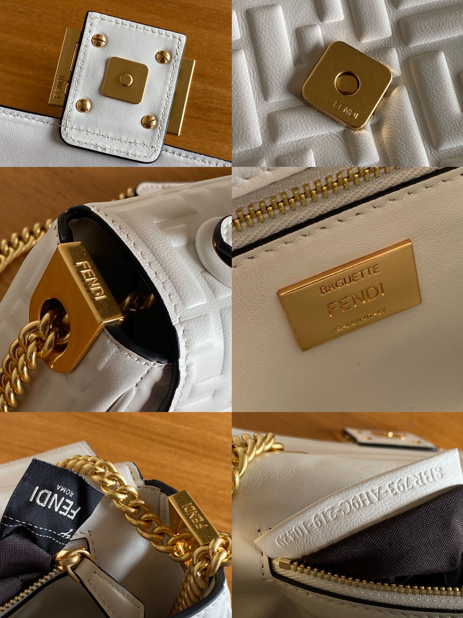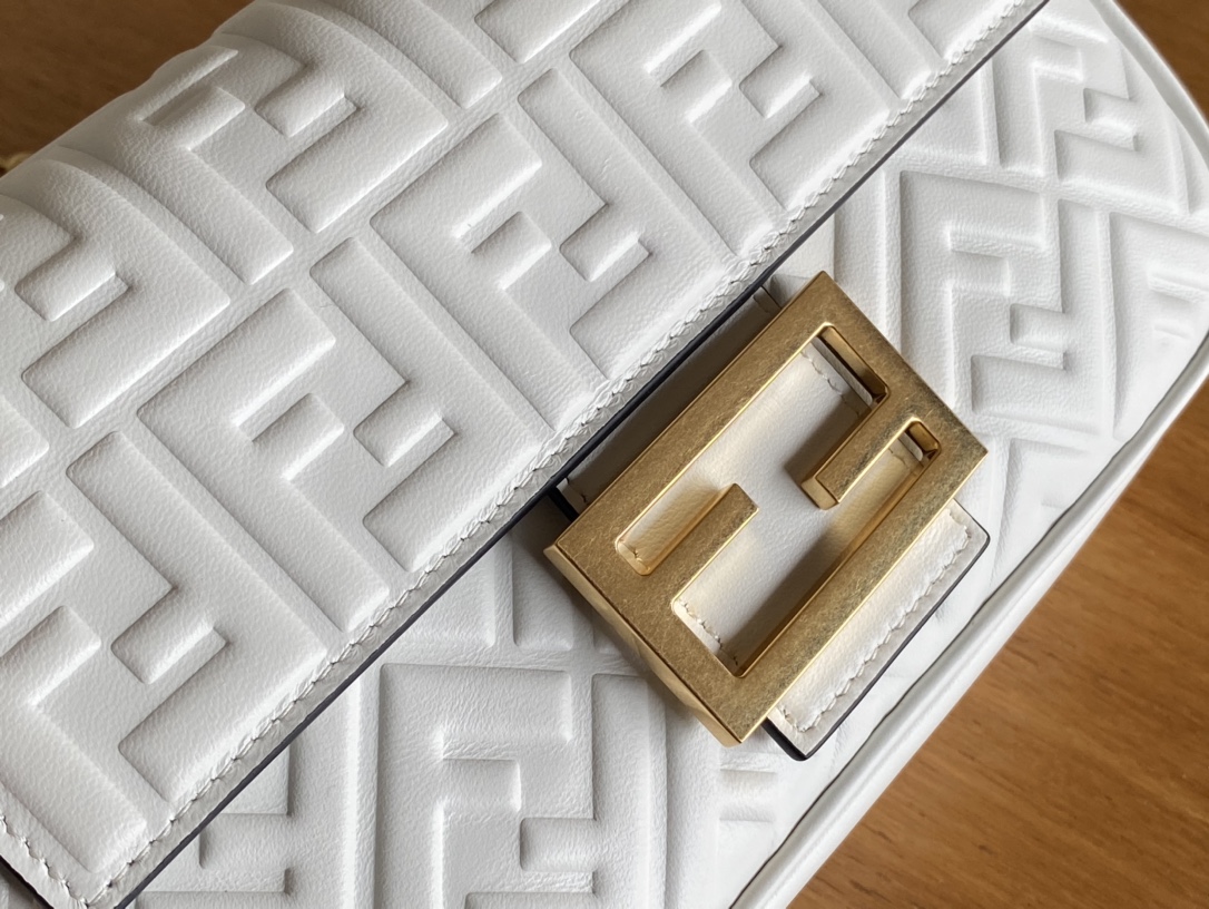 펜디 바게트 자카드 패브릭 미디엄 체인 백