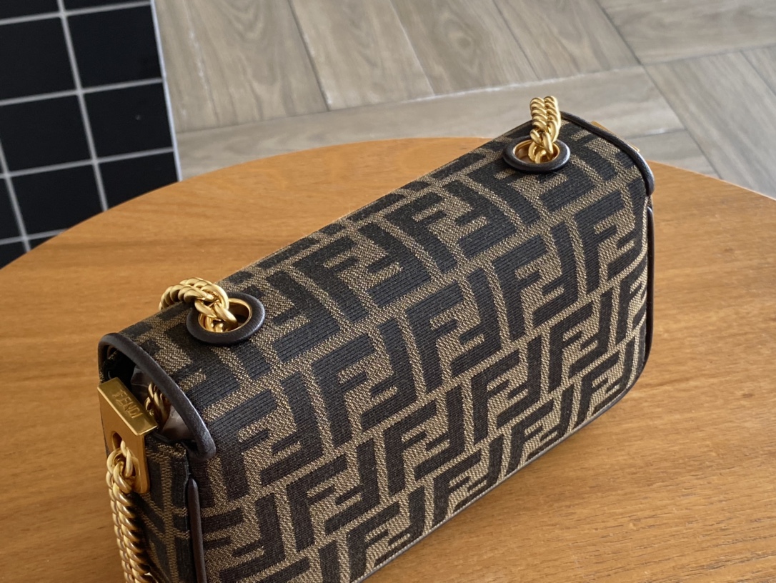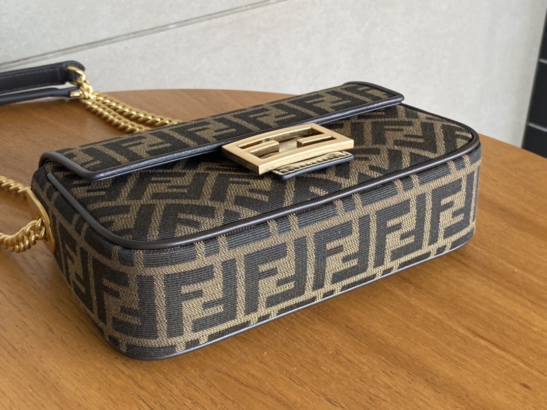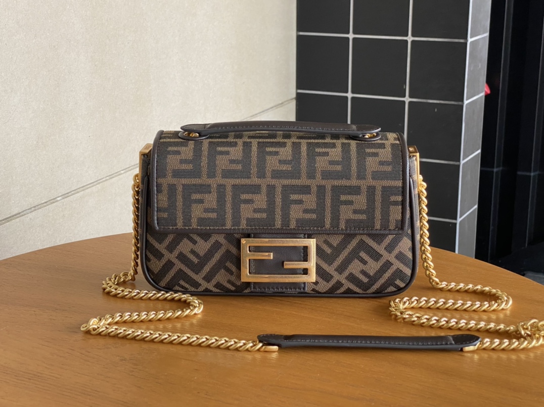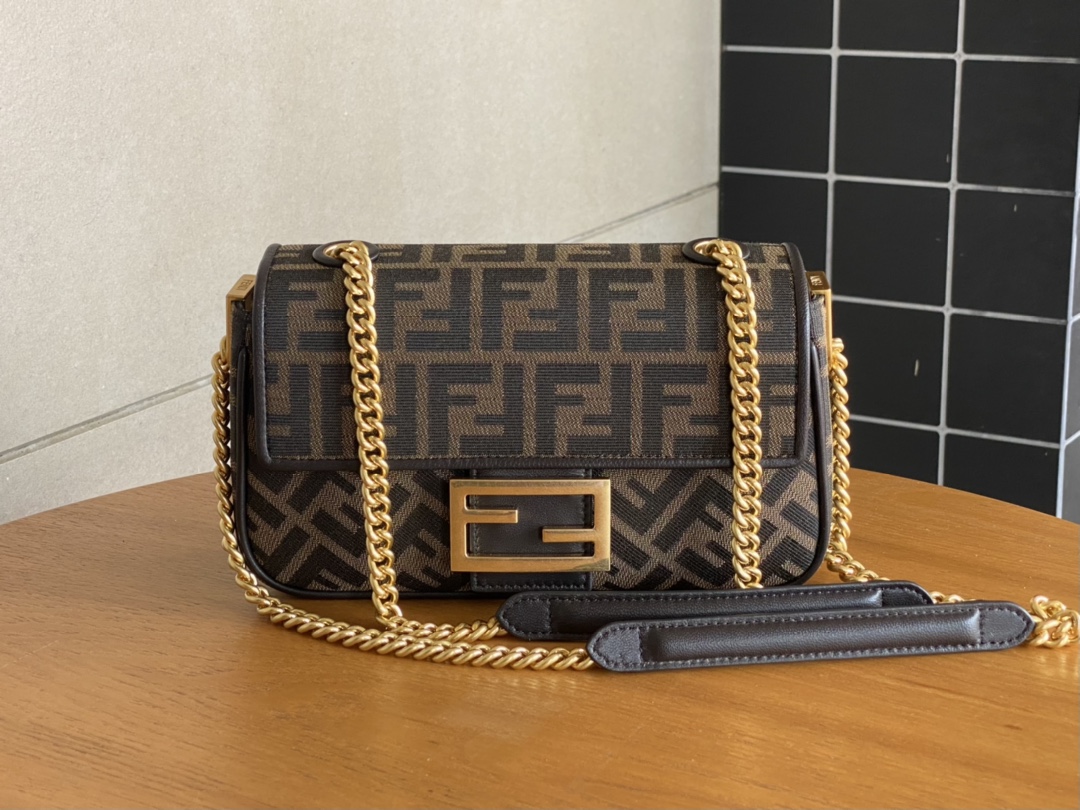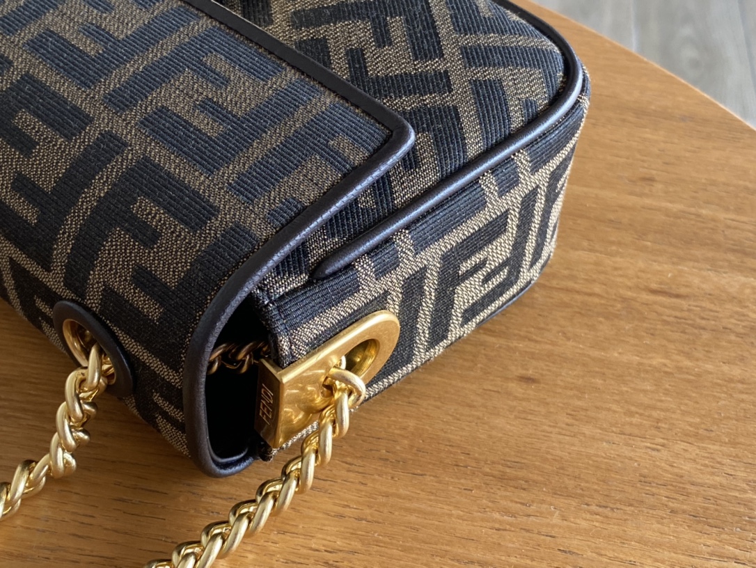 펜디 바게트 자카드 패브릭 미디엄 체인 백
