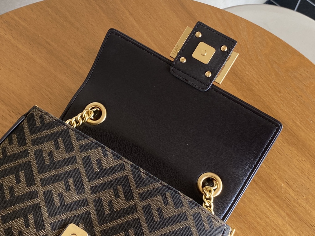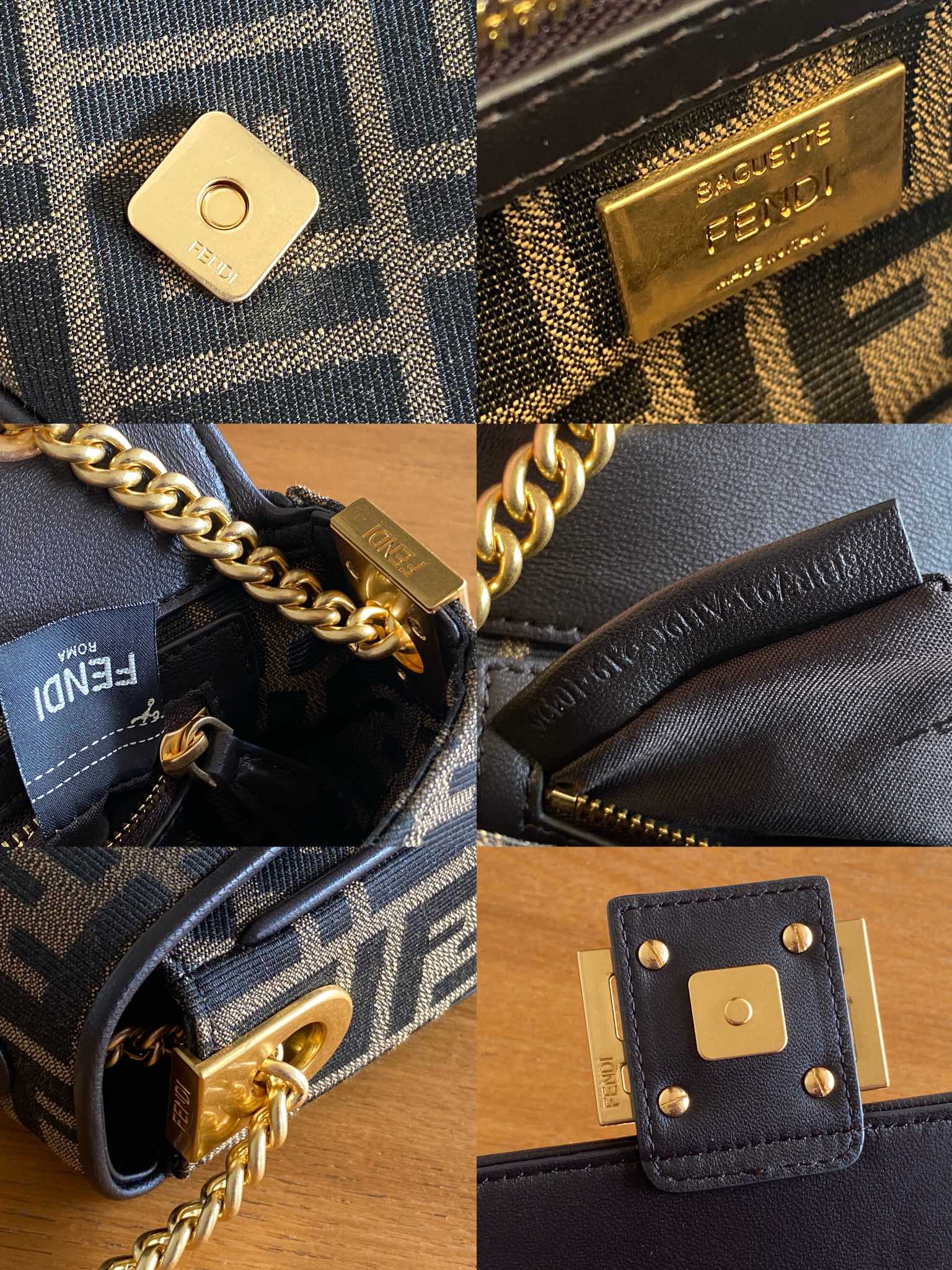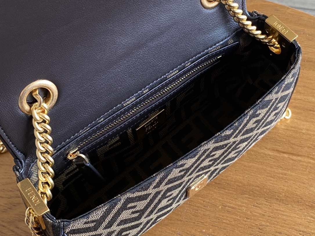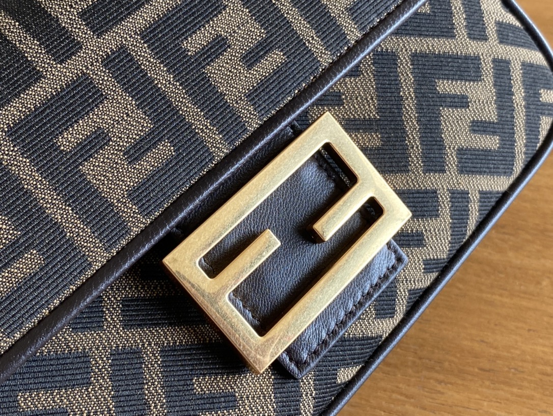 펜디 바게트 자카드 패브릭 미디엄 체인 백