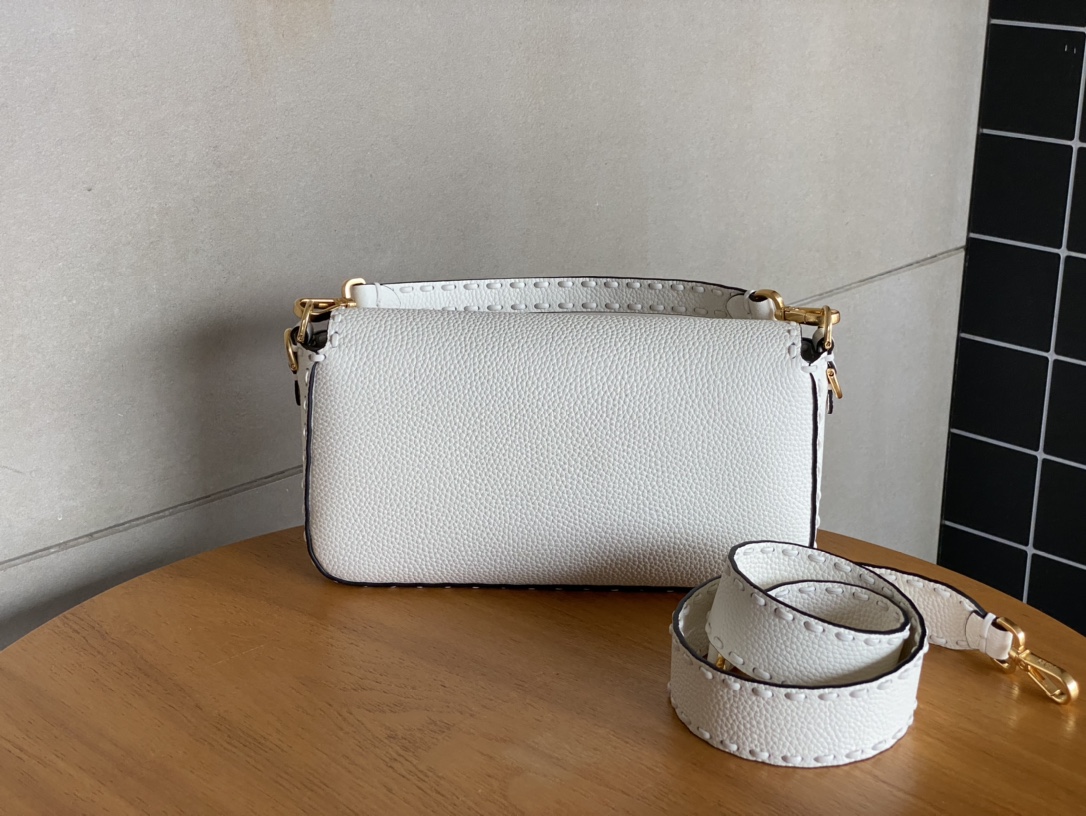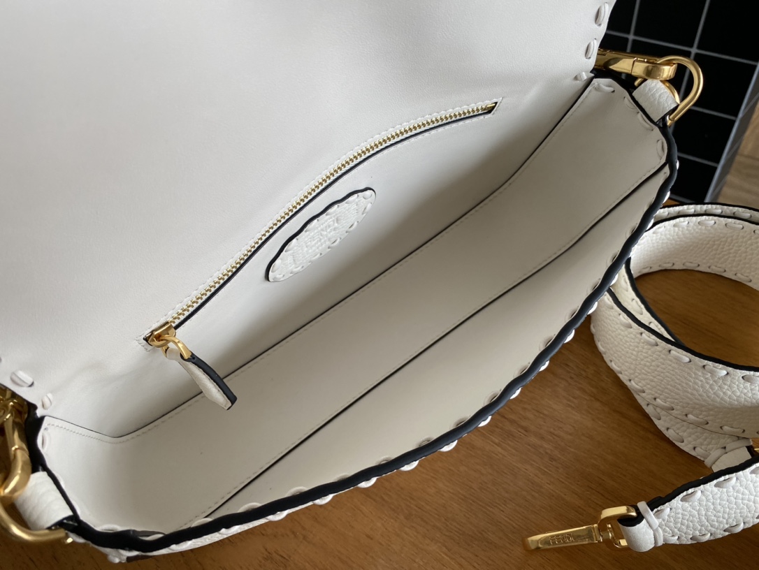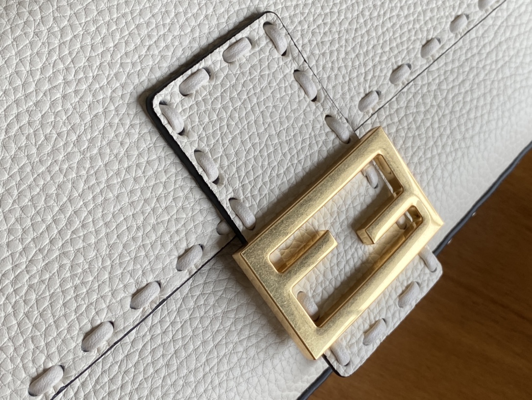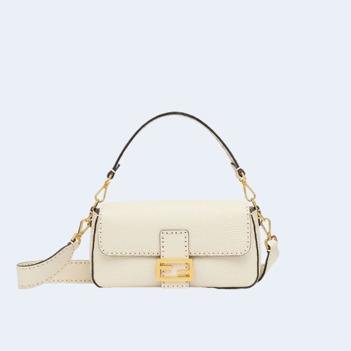펜디 미니 바게트 FF 모티프 레더백 화이트