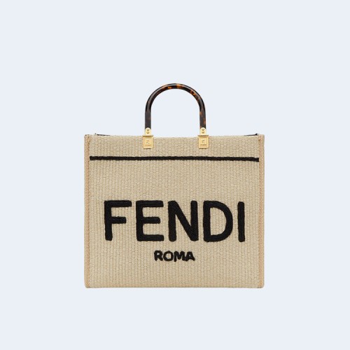 펜디 선샤인 스트로우 미디엄 쇼퍼백 베이지