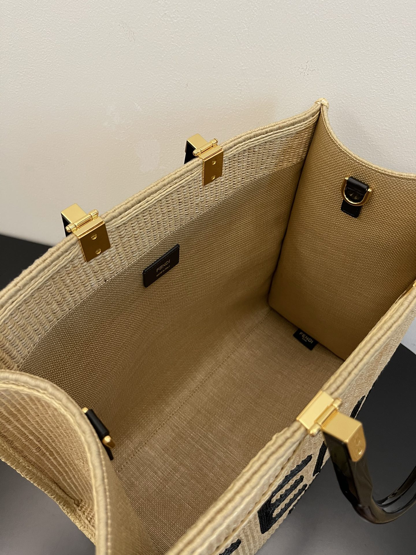 펜디 선샤인 스트로우 미디엄 쇼퍼백 블랙