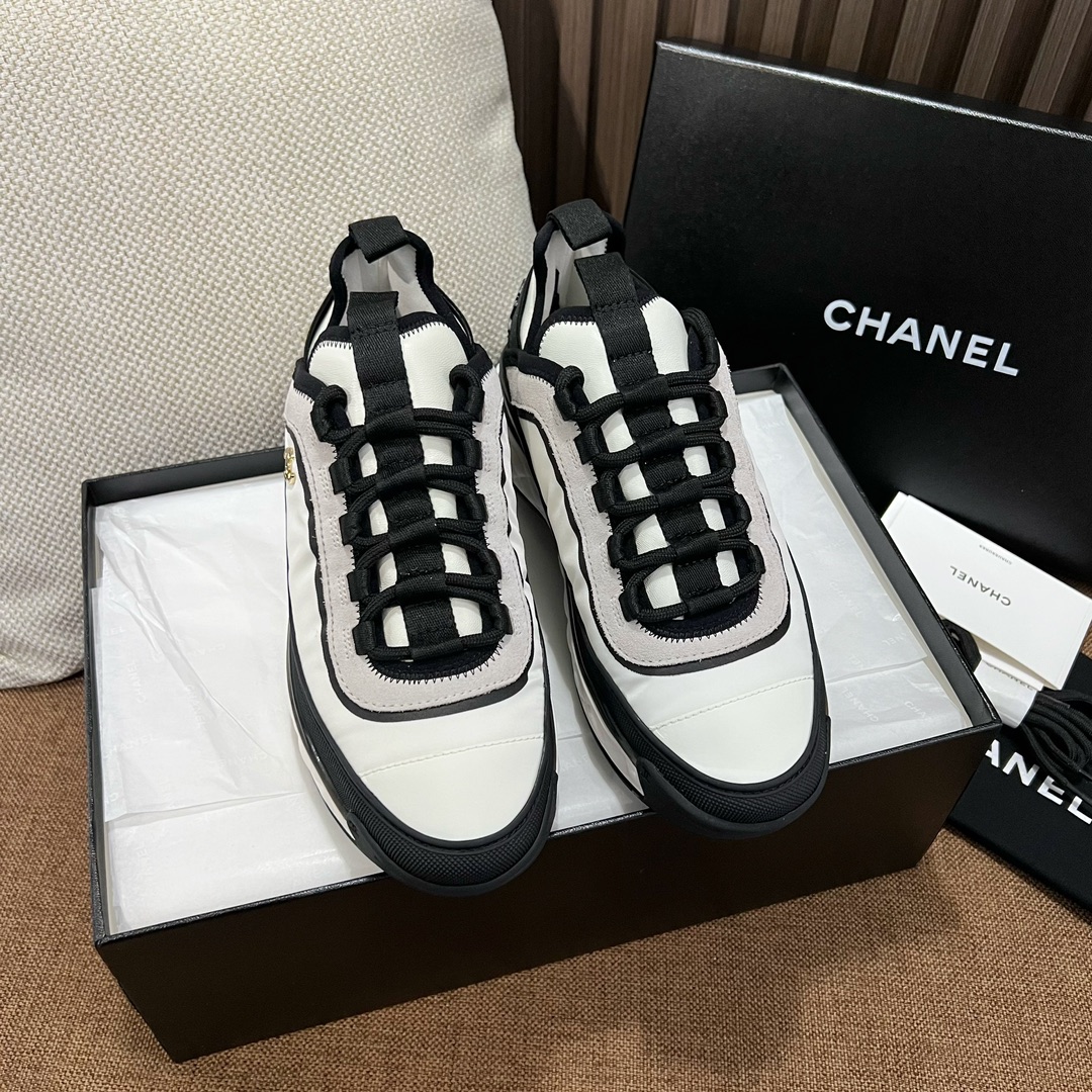 샤넬 믹스드 파이버 스니커즈 패브릭 카프스킨
