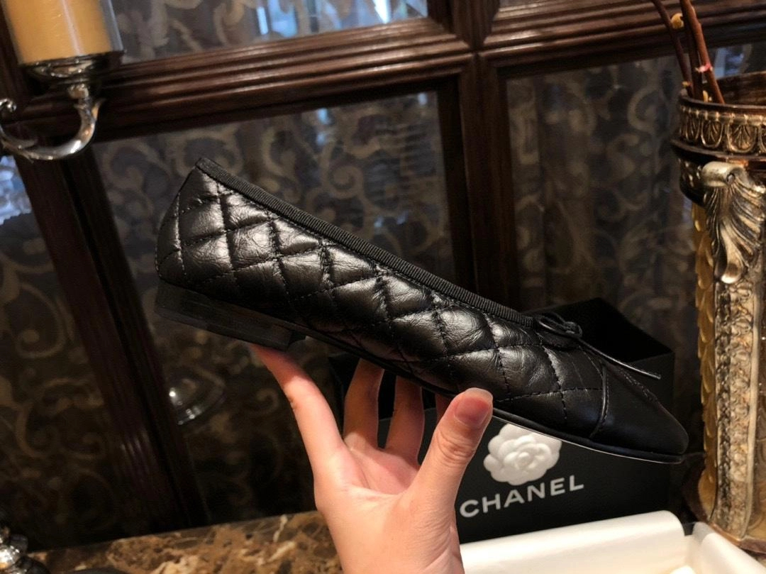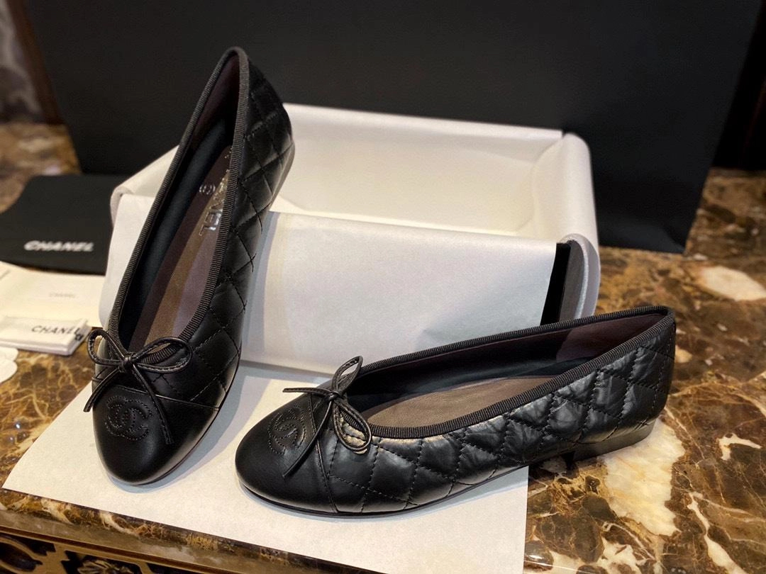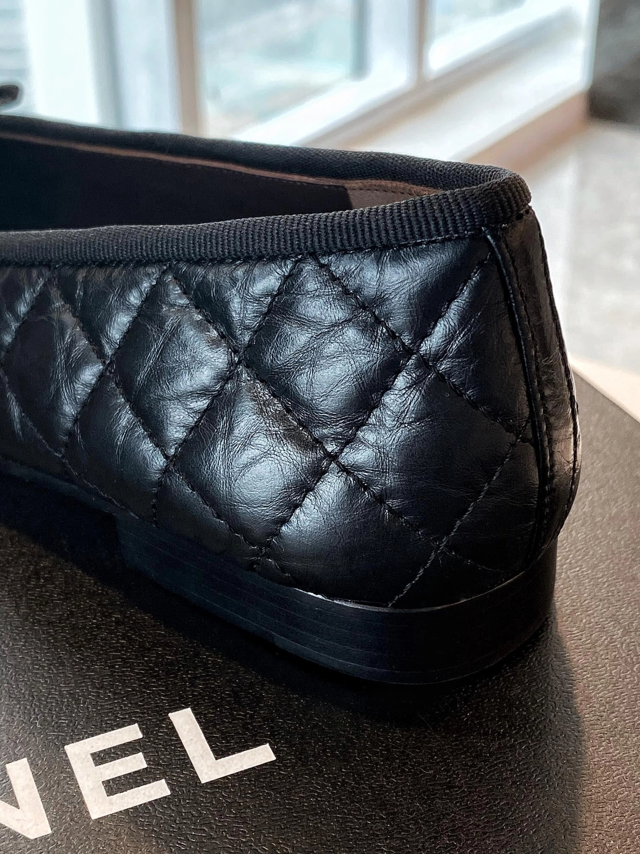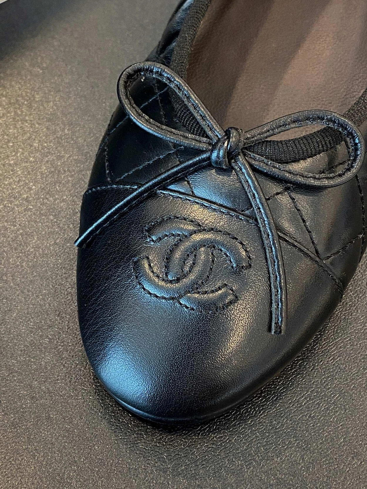 샤넬 발레리나 플랫 빈티지 카프스킨 블랙