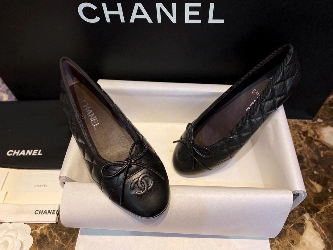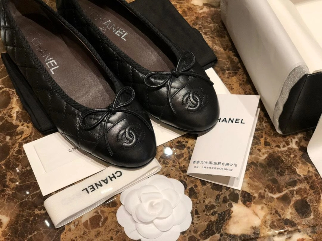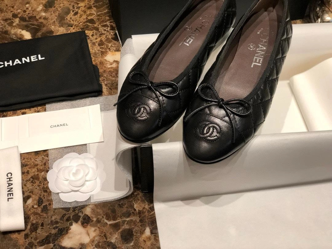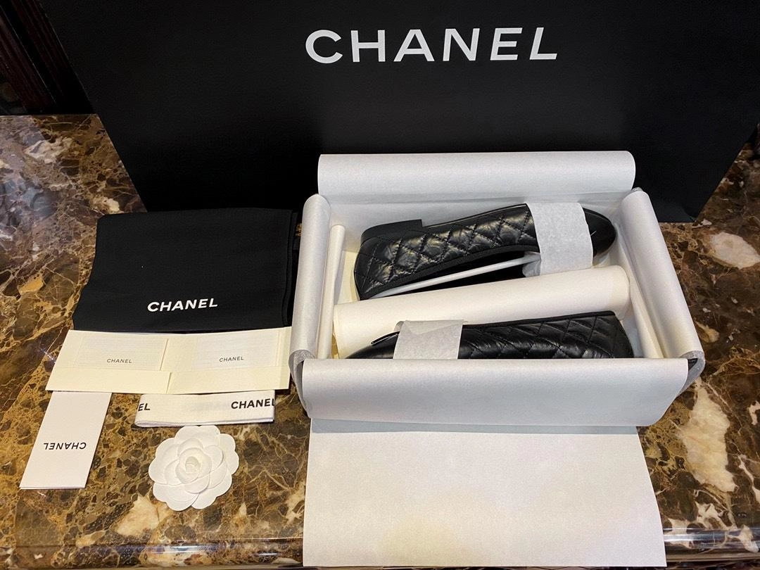 샤넬 발레리나 플랫 빈티지 카프스킨 블랙