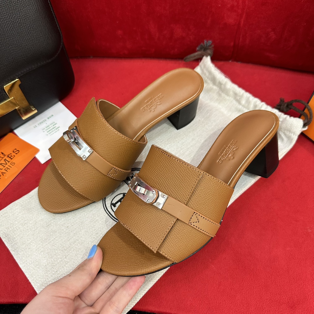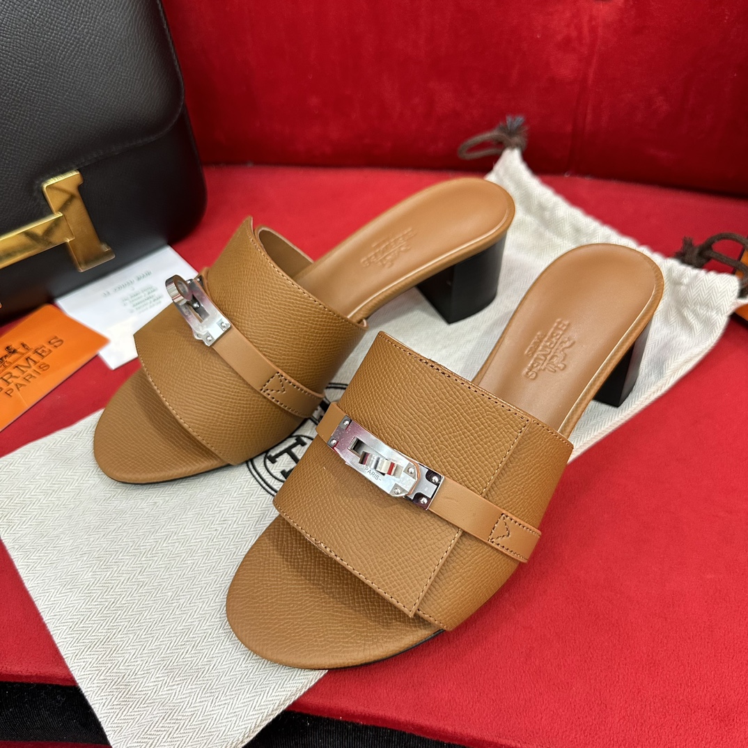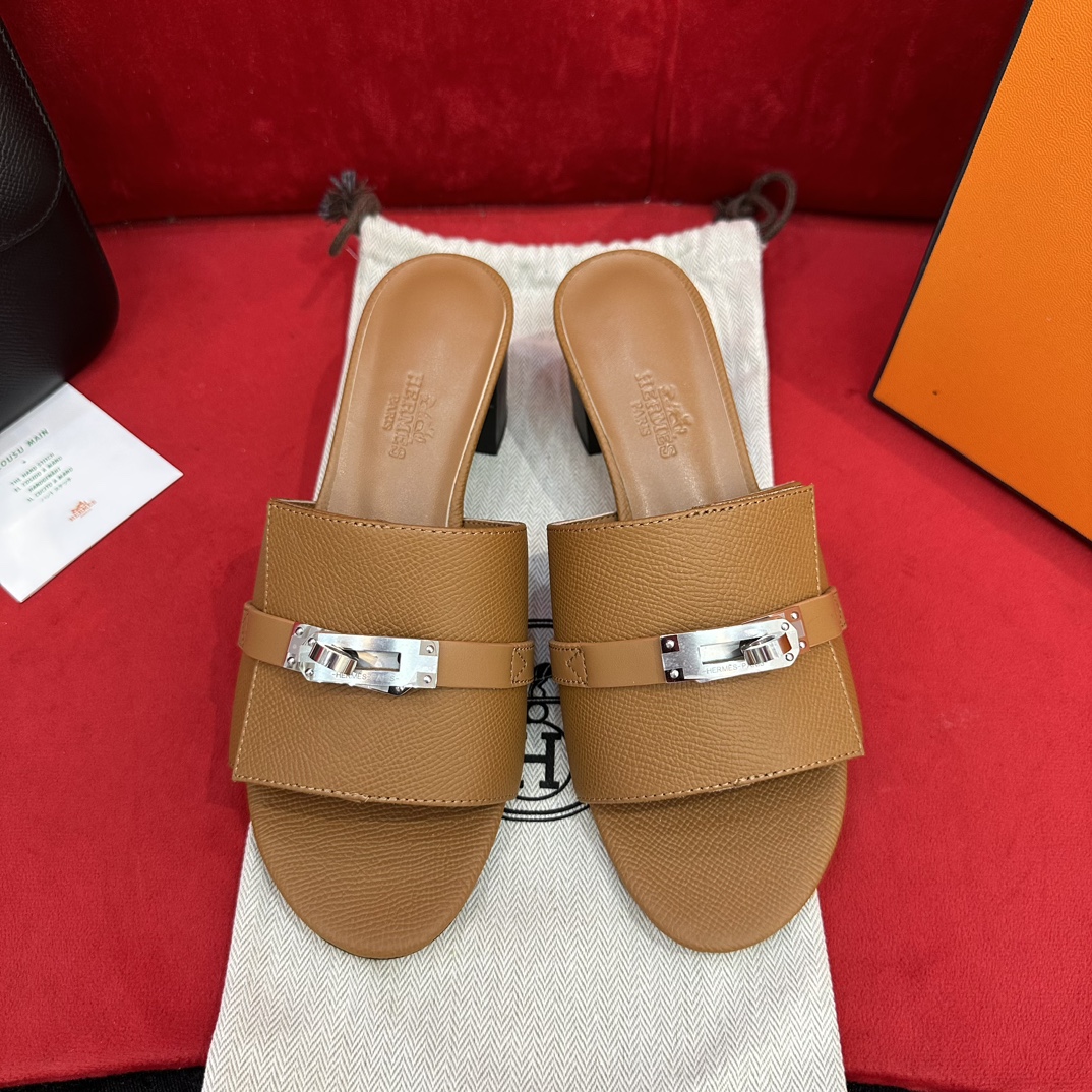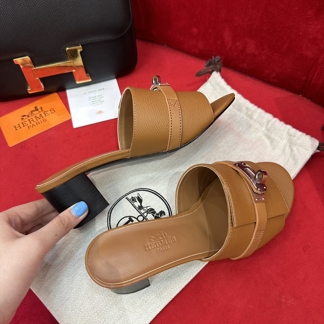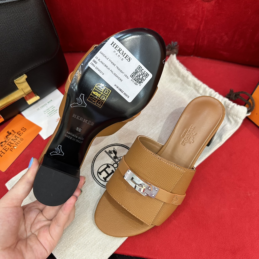 에르메스 지지 50 샌들 카프스킨 & 팔라듐 하드웨어 누아
