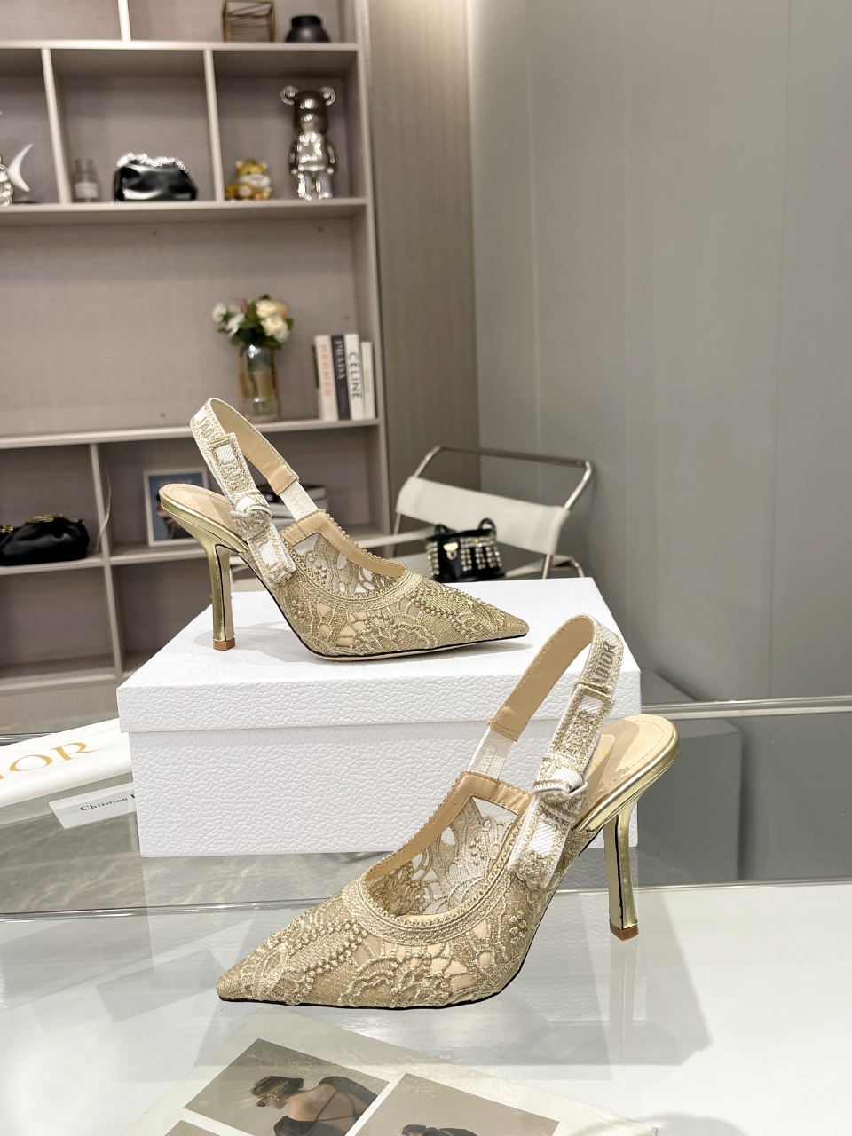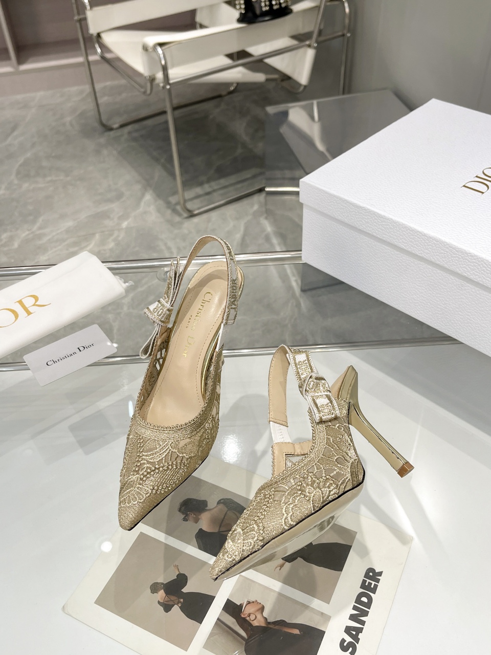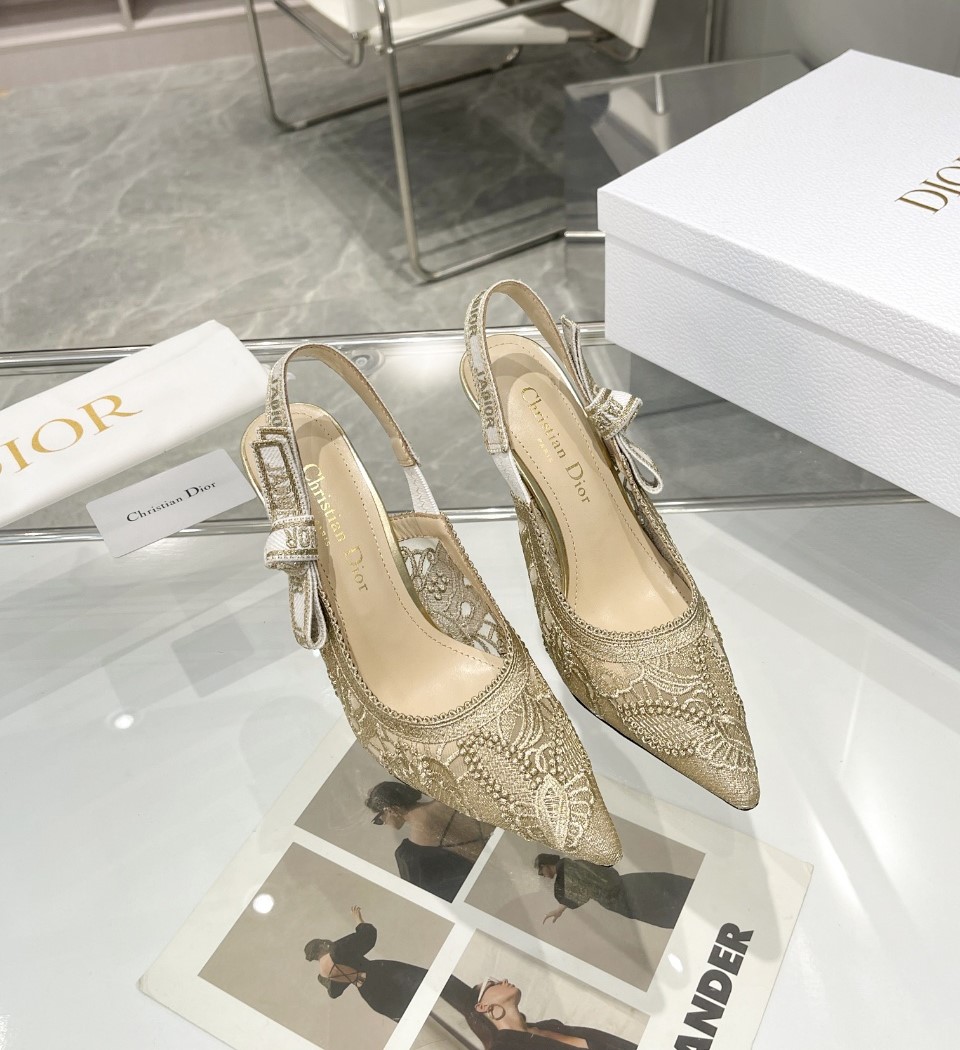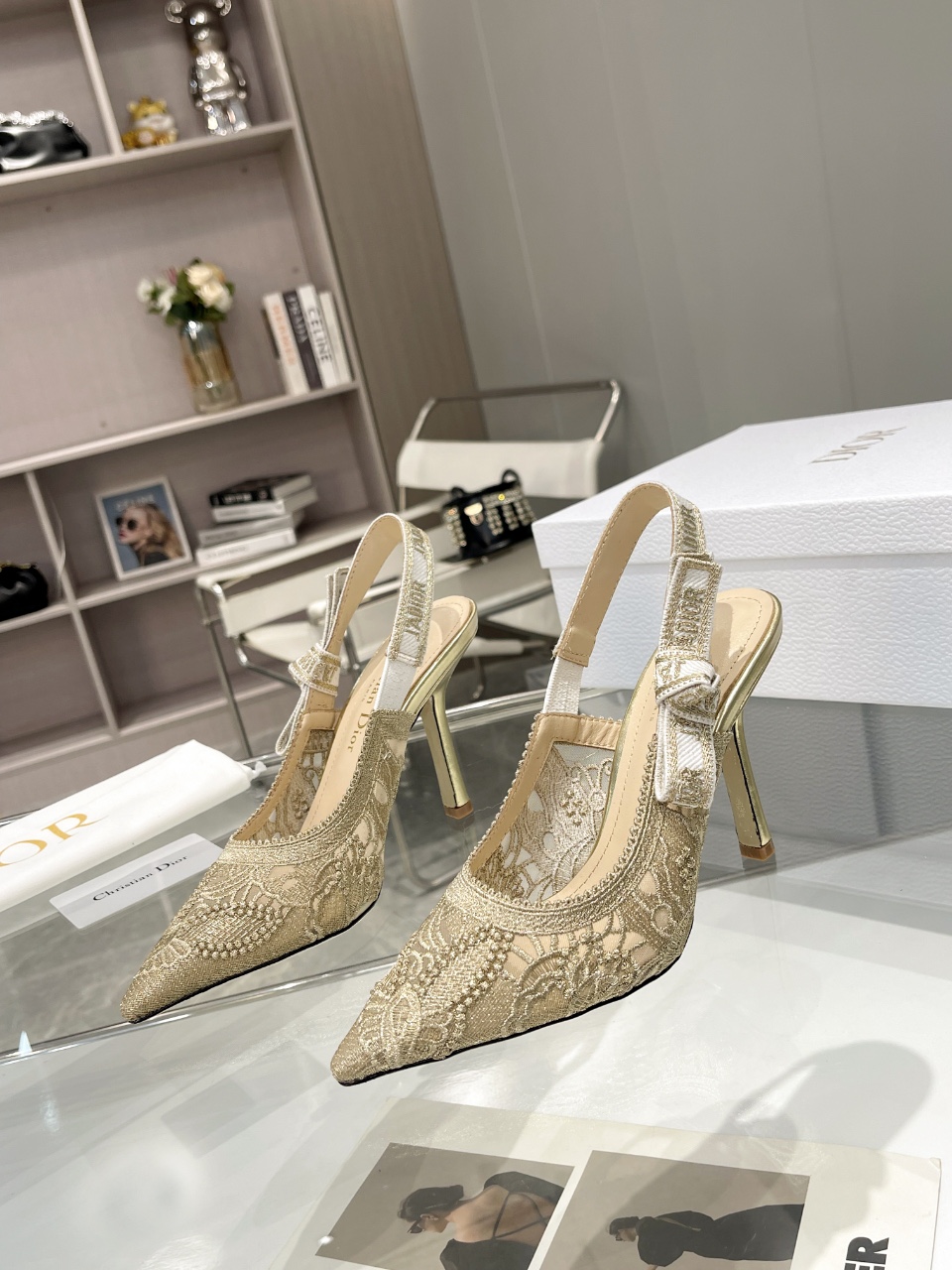 디올 자디올 레이스 슬링백 골드 메쉬 하이힐