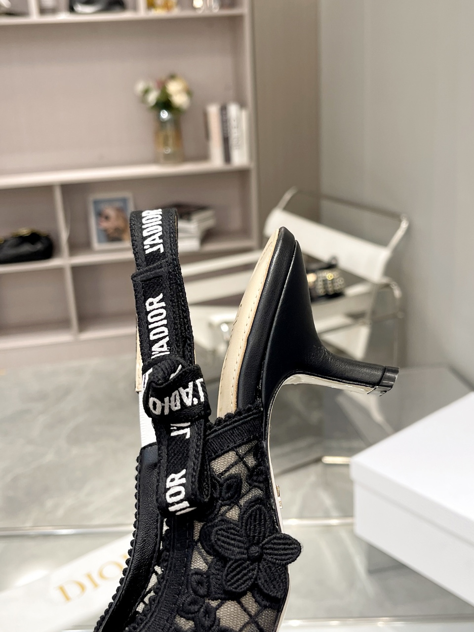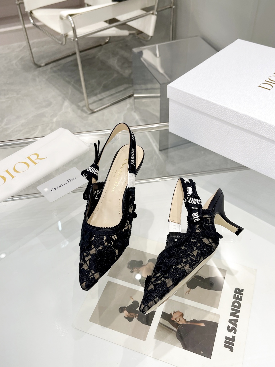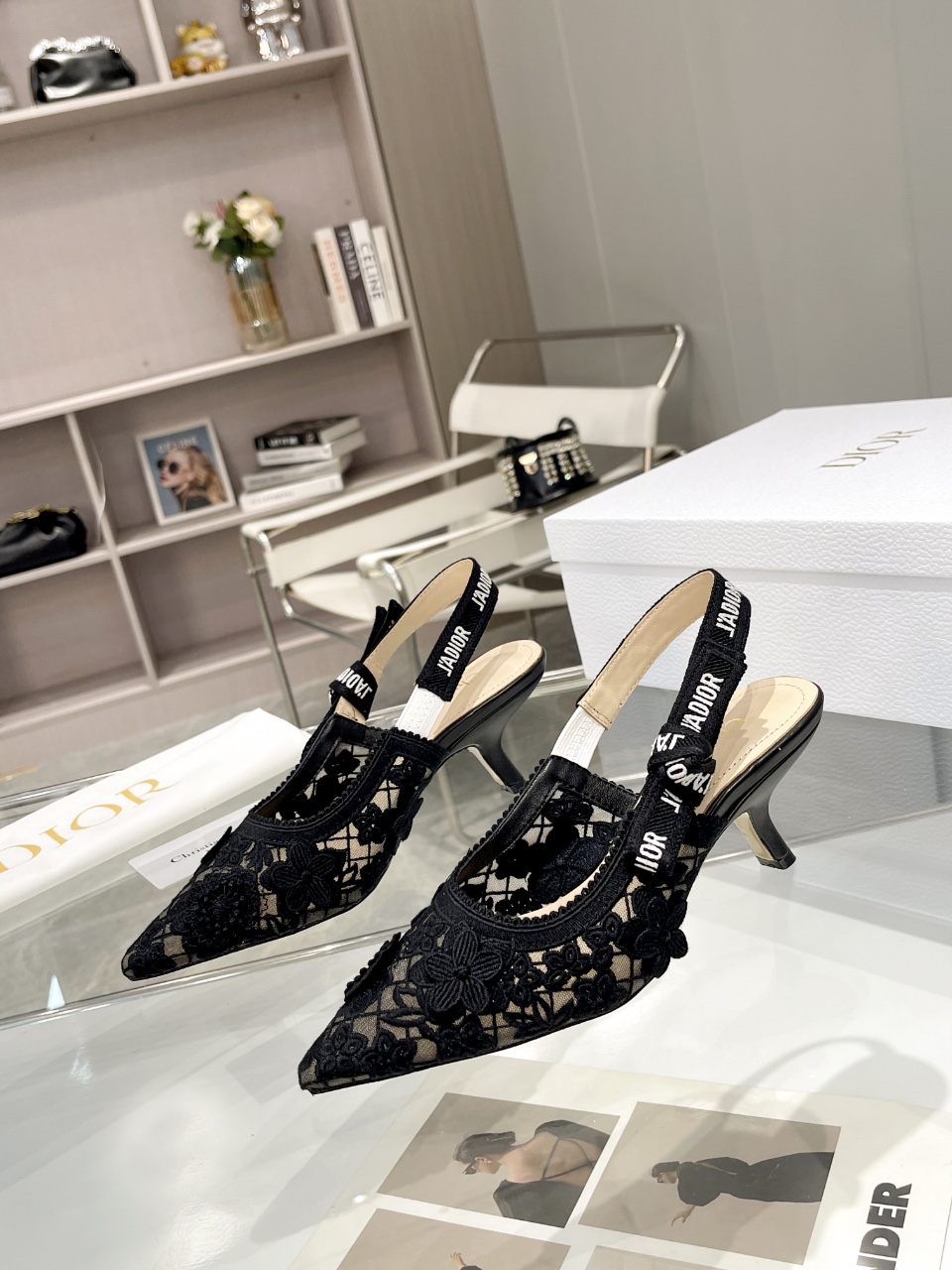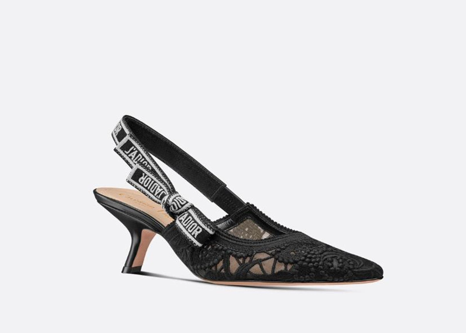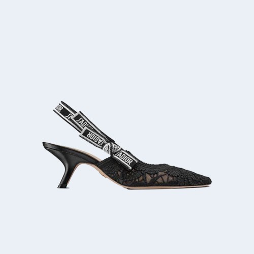디올 자디올 레이스 슬링백 블랙 메쉬 미드힐