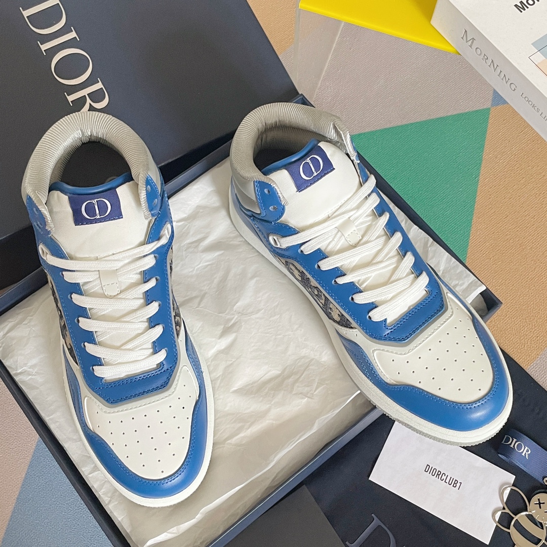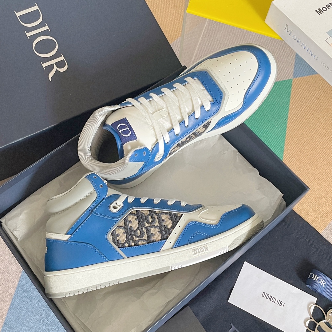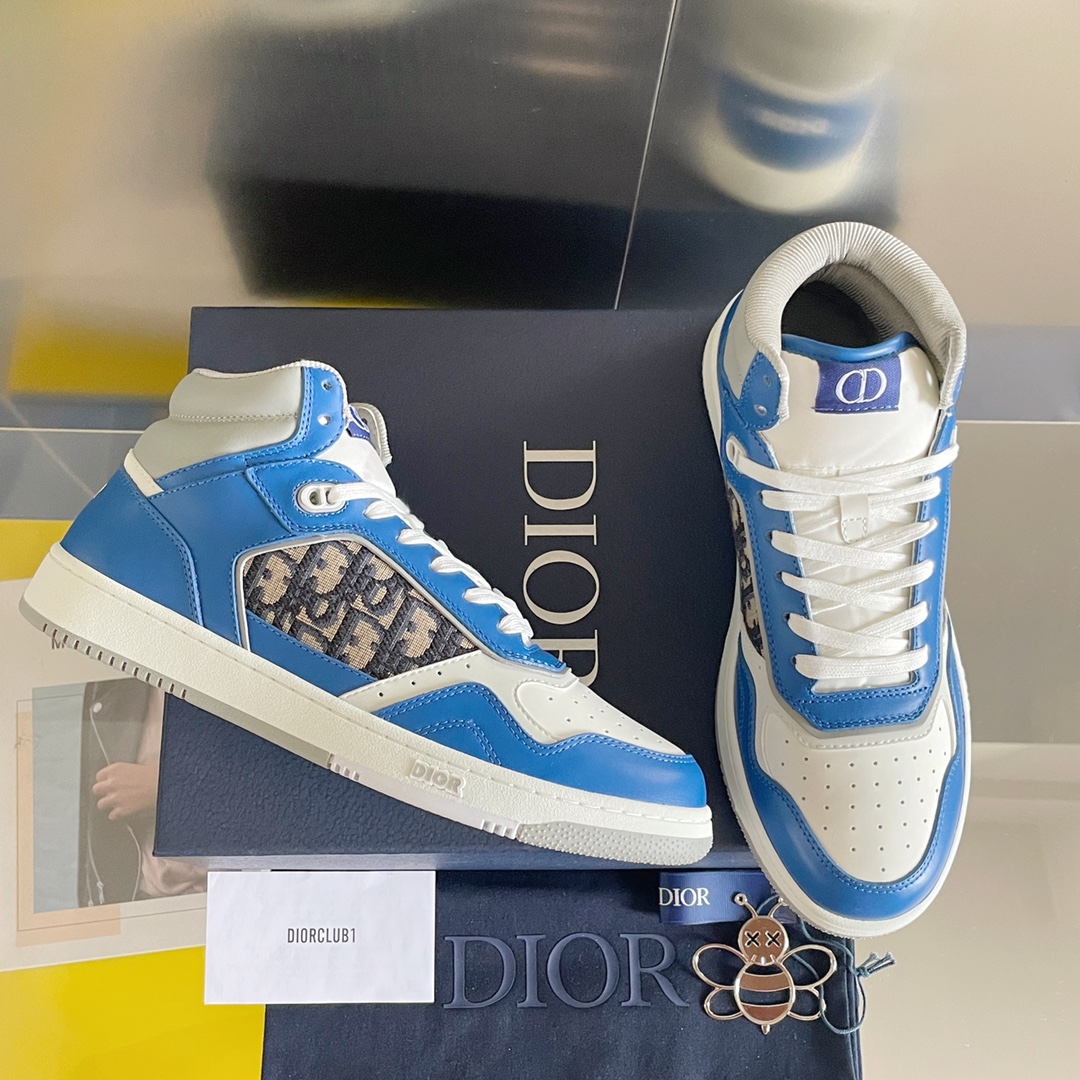 디올 B27 블루 크림 스무스 하이탑 스니커즈