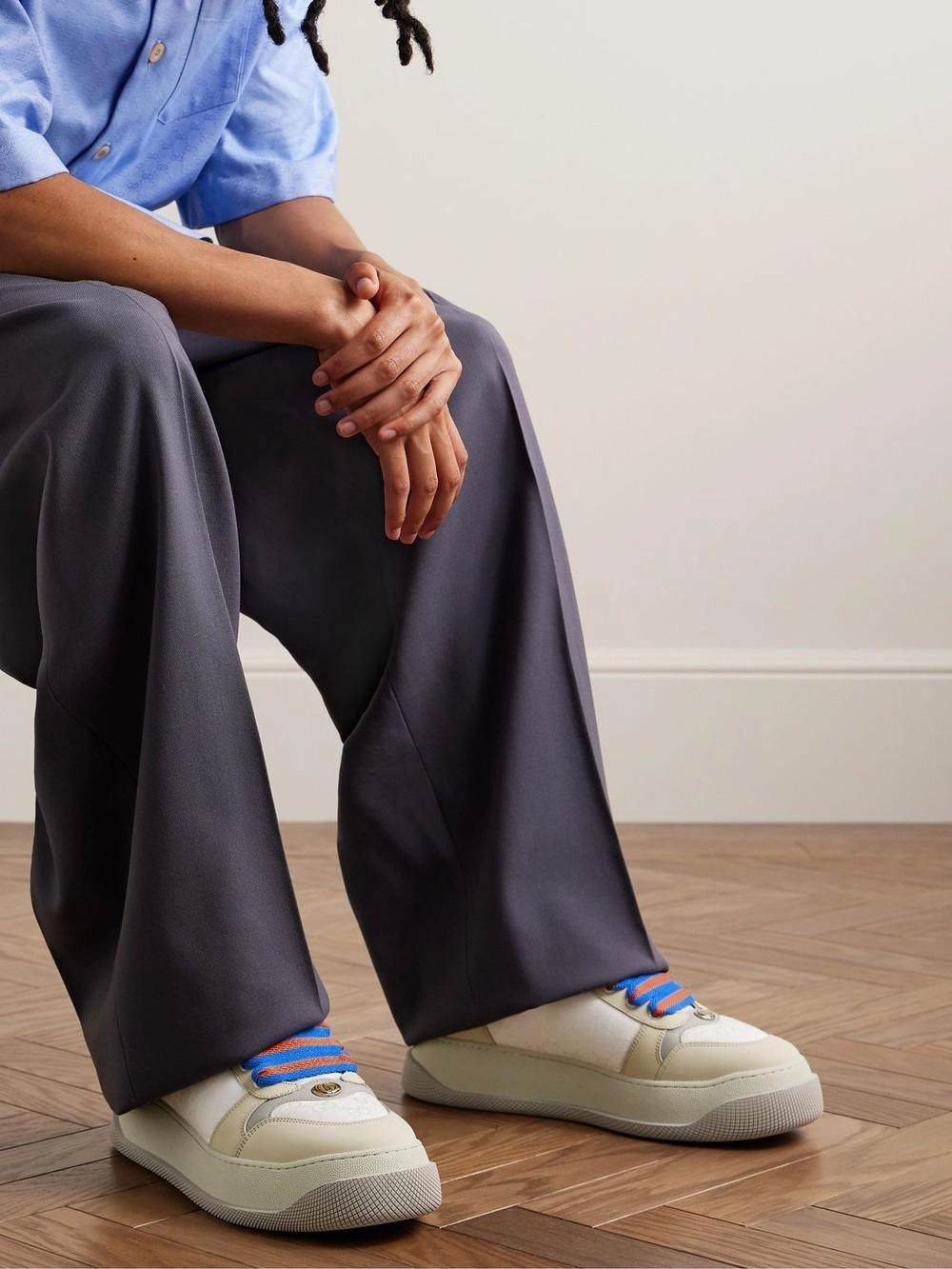 구찌 Double Screener 모노그램 캔버스 스니커즈 베이지