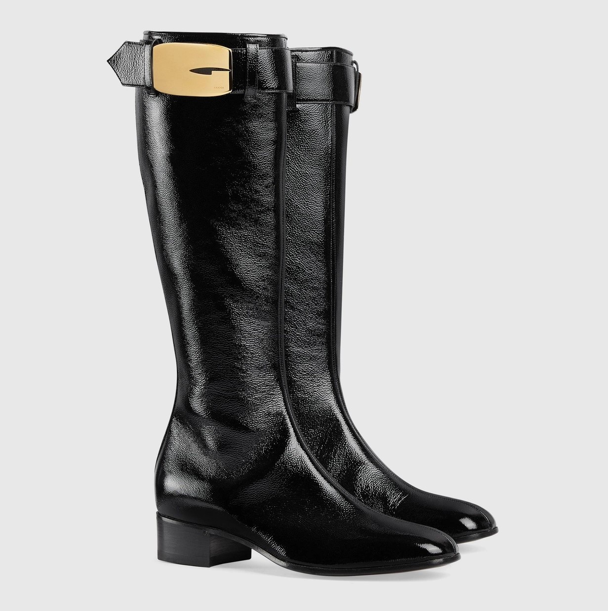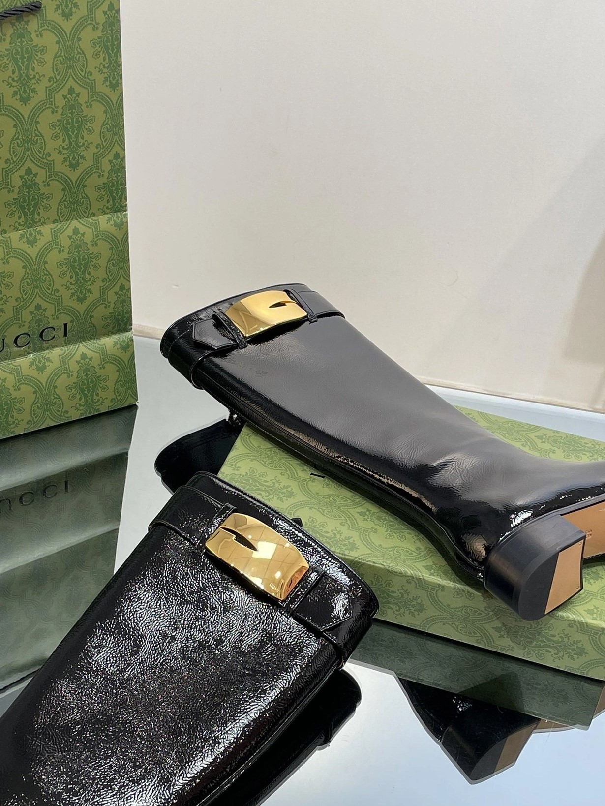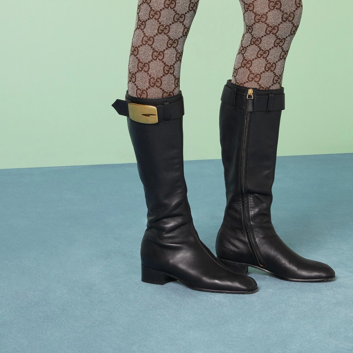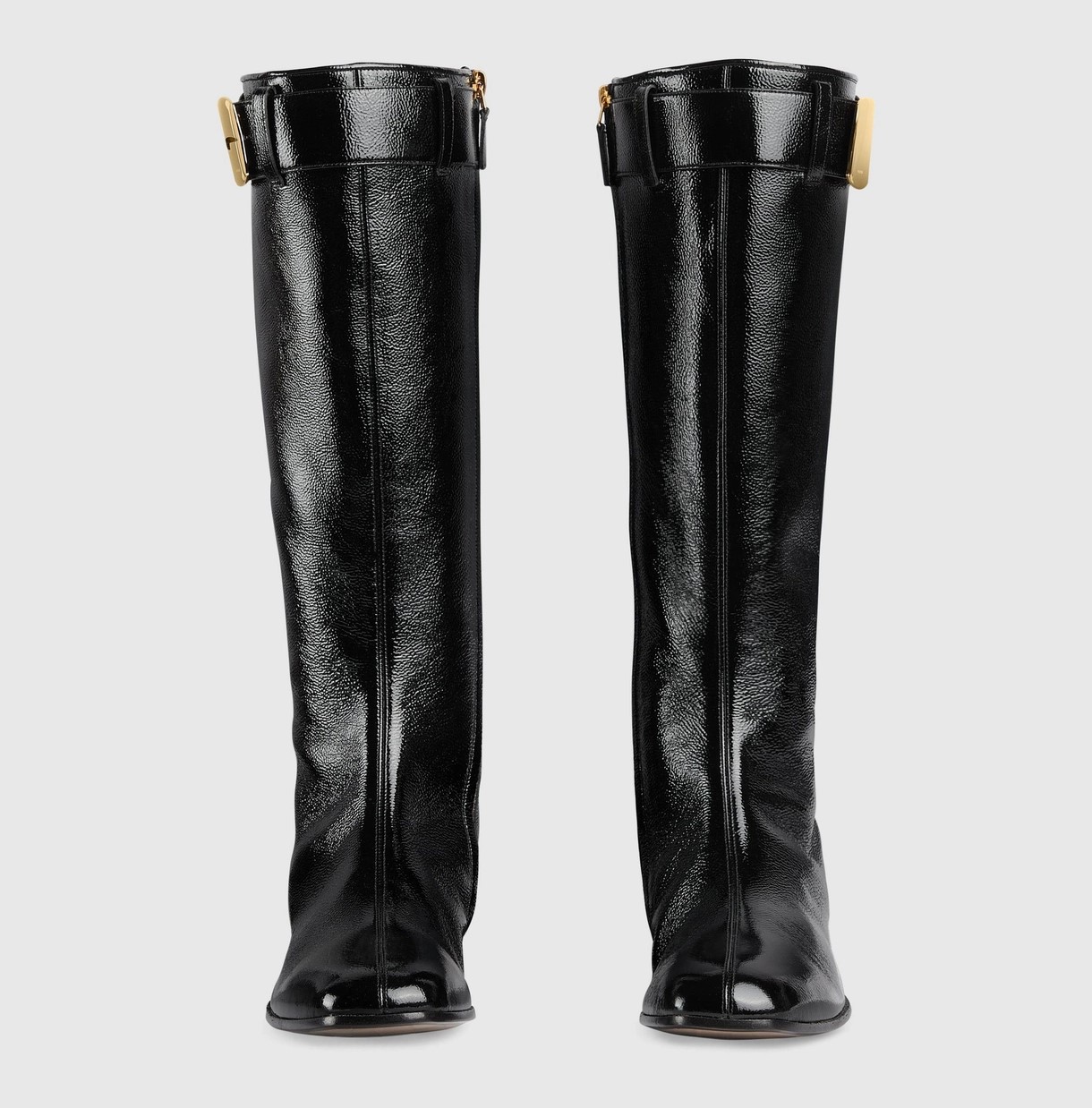 구찌 인터로킹 G 미드힐 펌프스 블랙