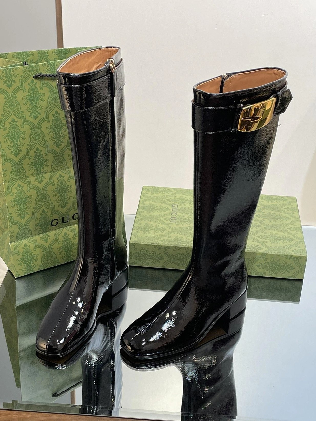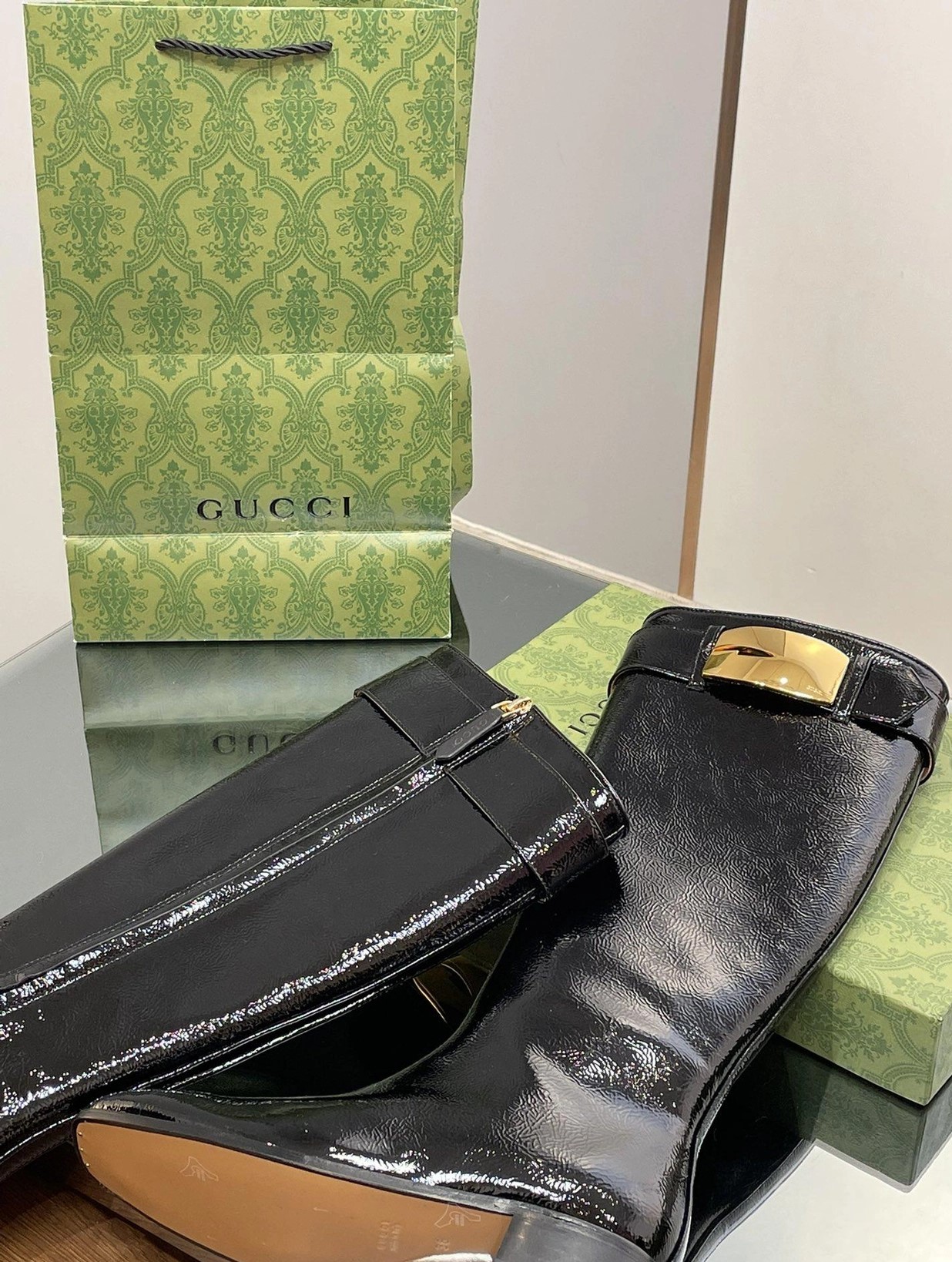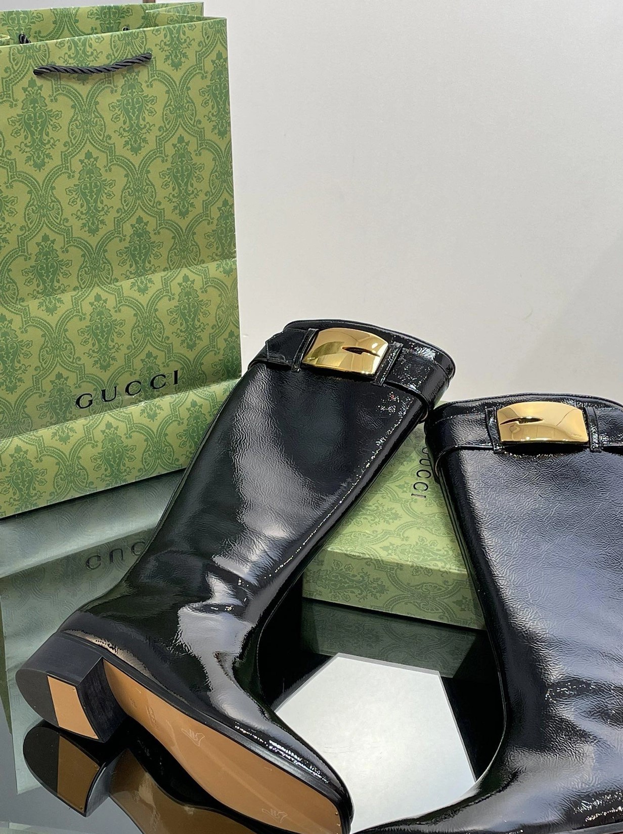 구찌 인터로킹 G 미드힐 펌프스 블랙