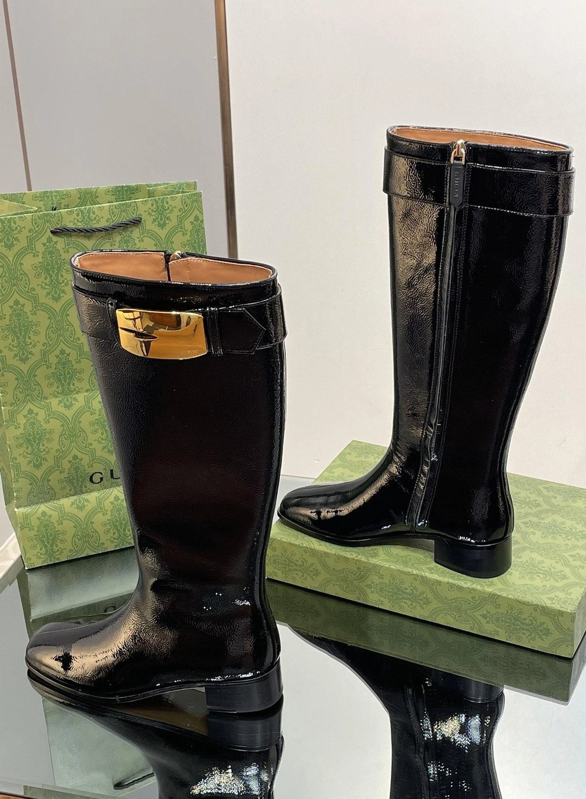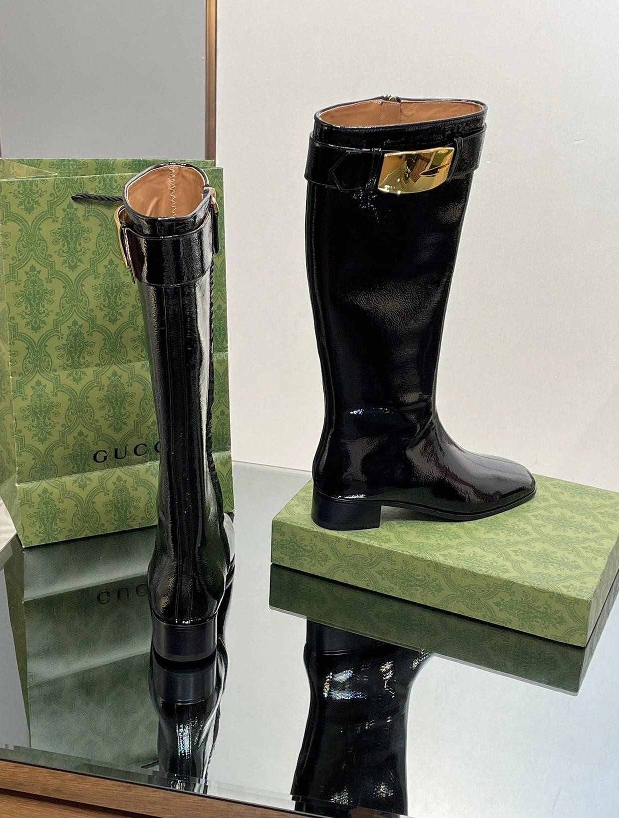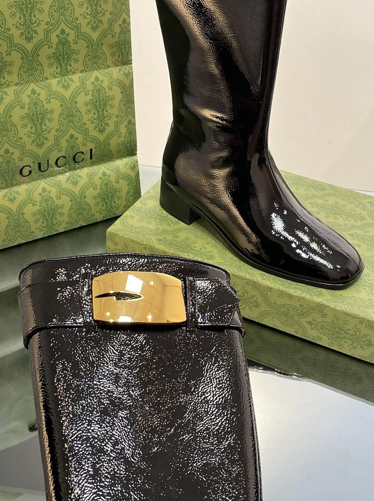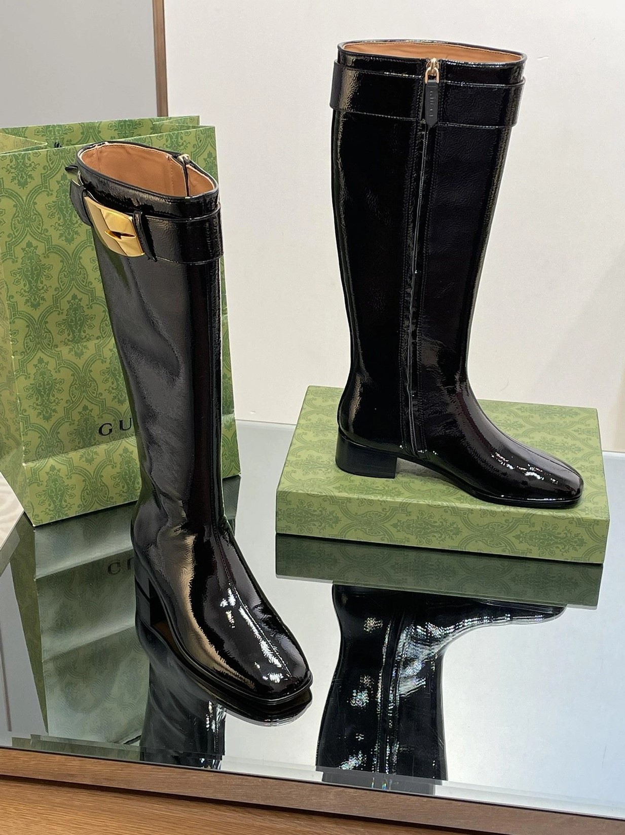 구찌 인터로킹 G 미드힐 펌프스 블랙