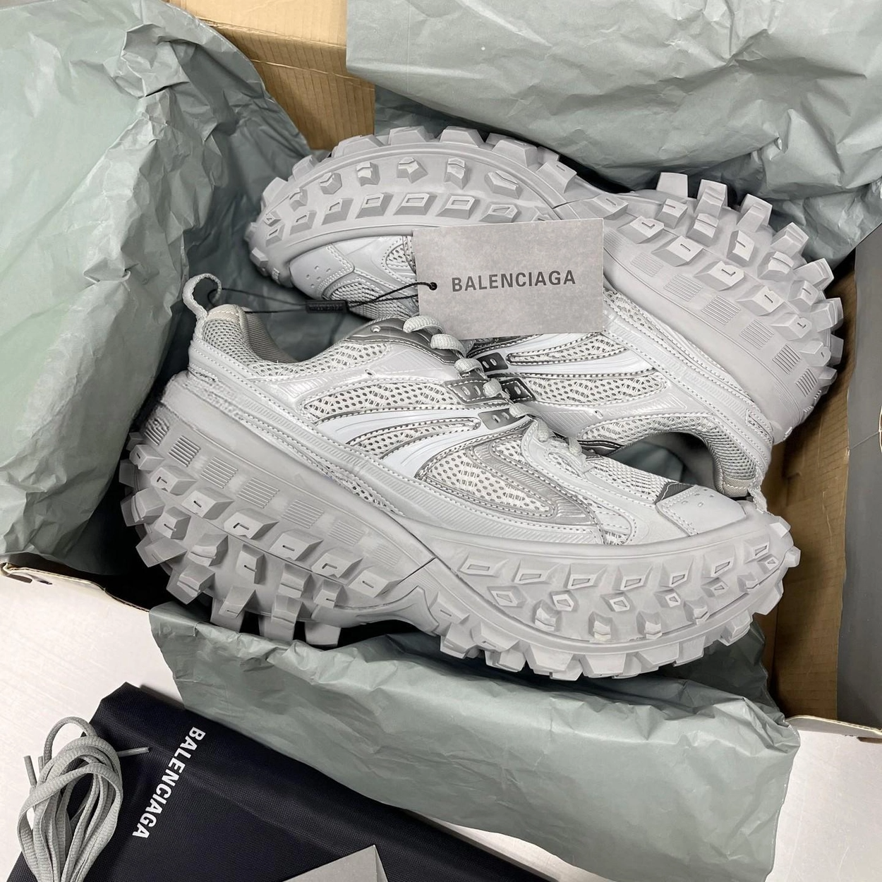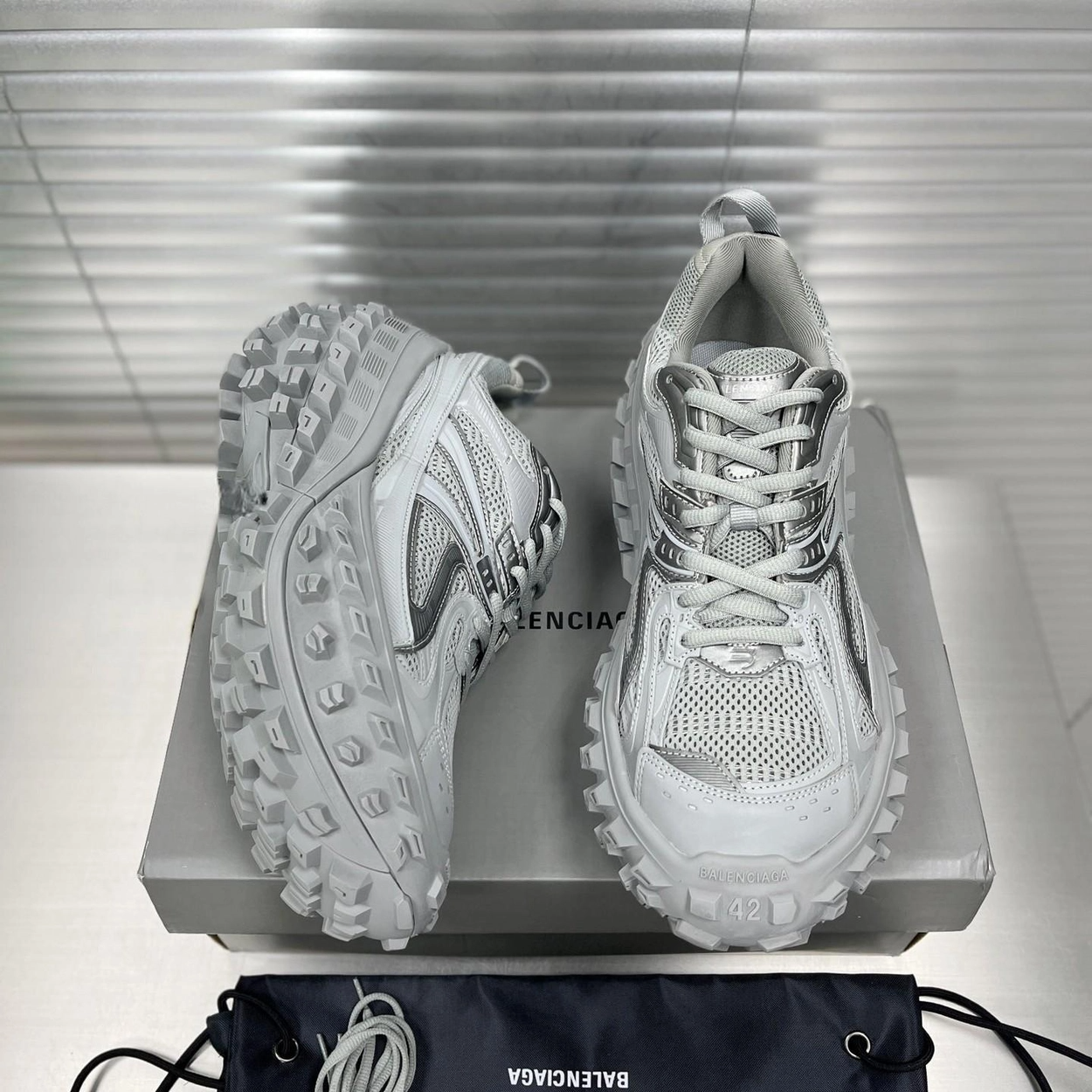 발렌시아가 디펜더 그레이 메쉬 스니커즈
