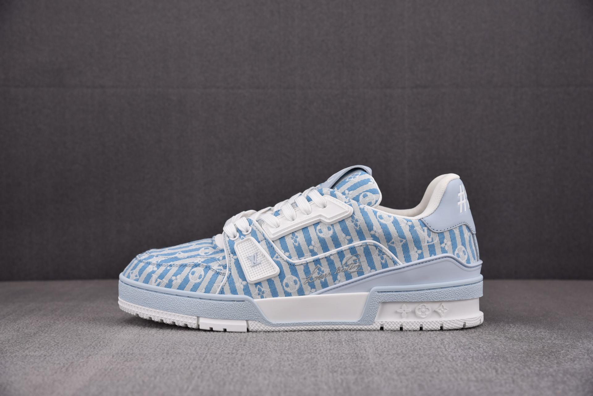 루이비통 LV 트레이너 스니커즈 블루 스트라이프 모노그램