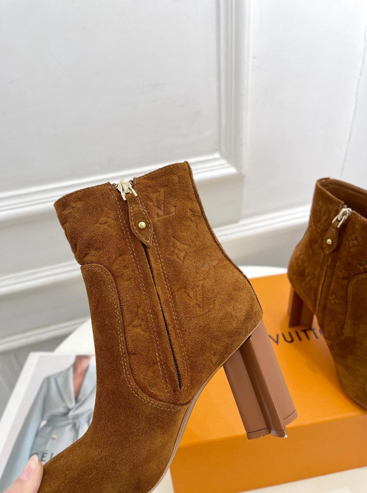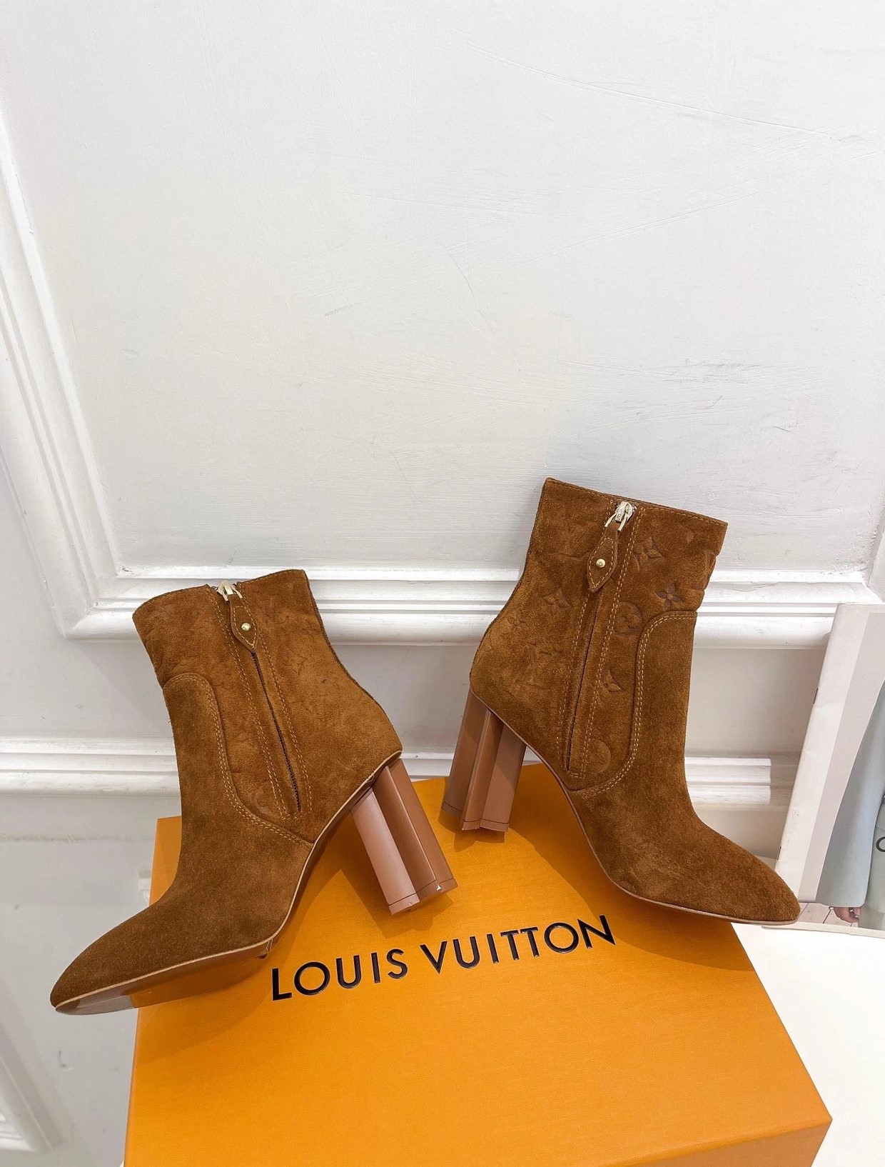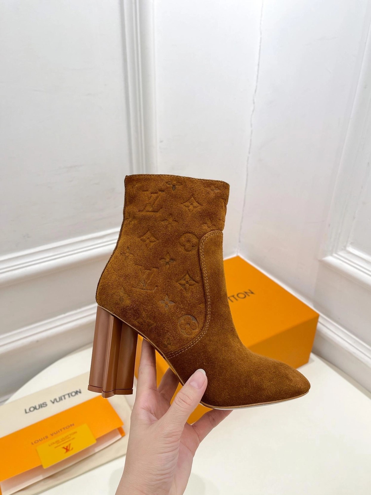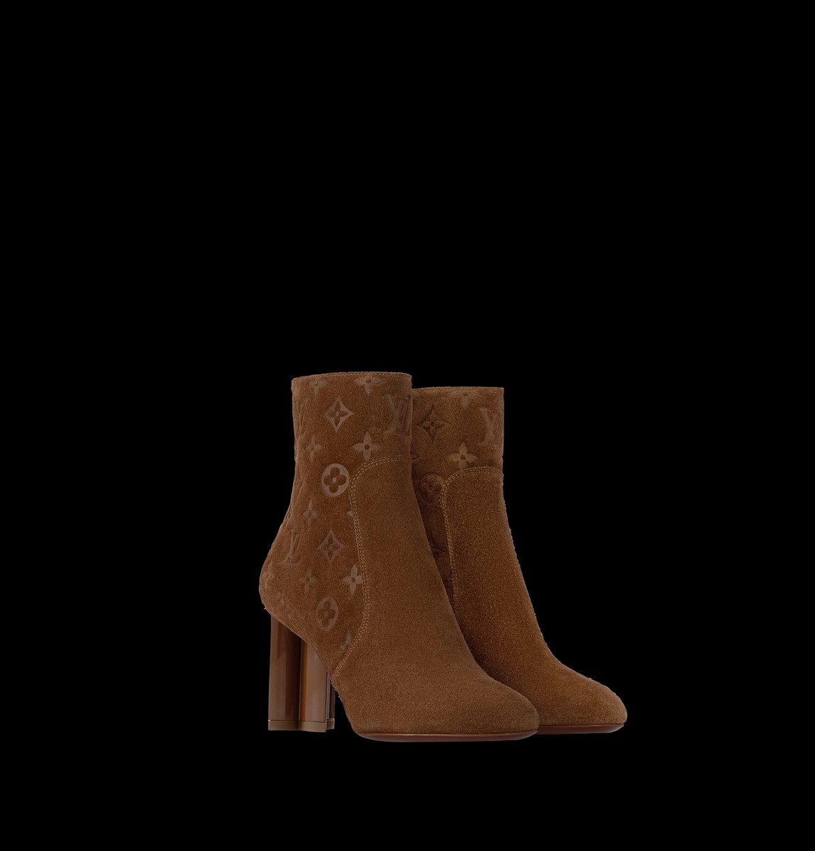 루이비통 실루엣 앵클 벨벳 부츠 코냑