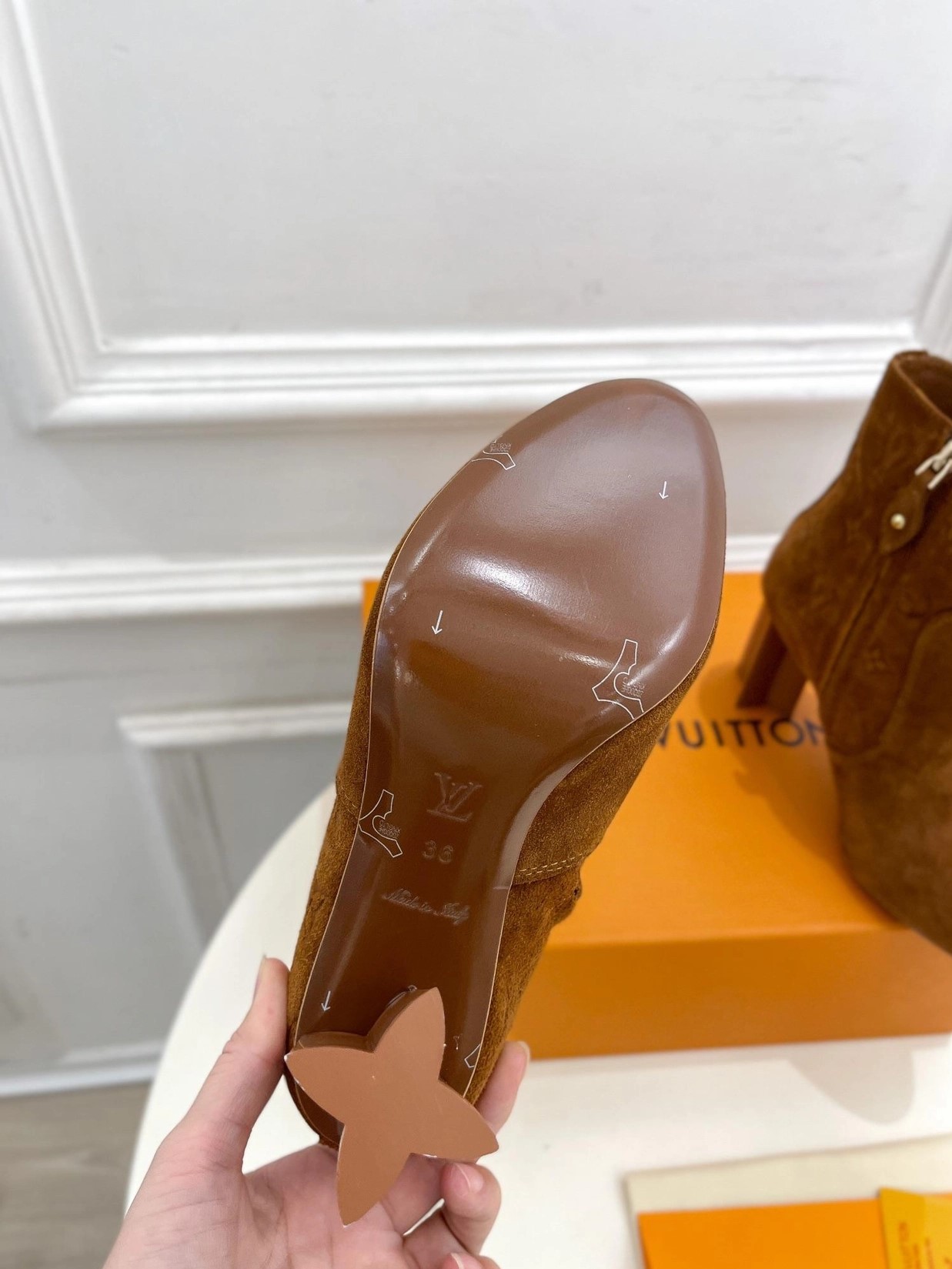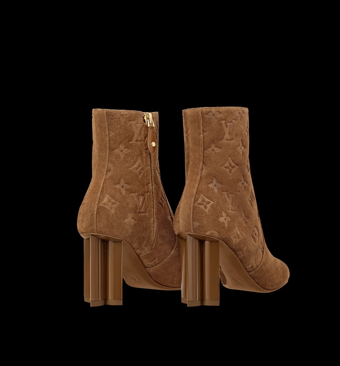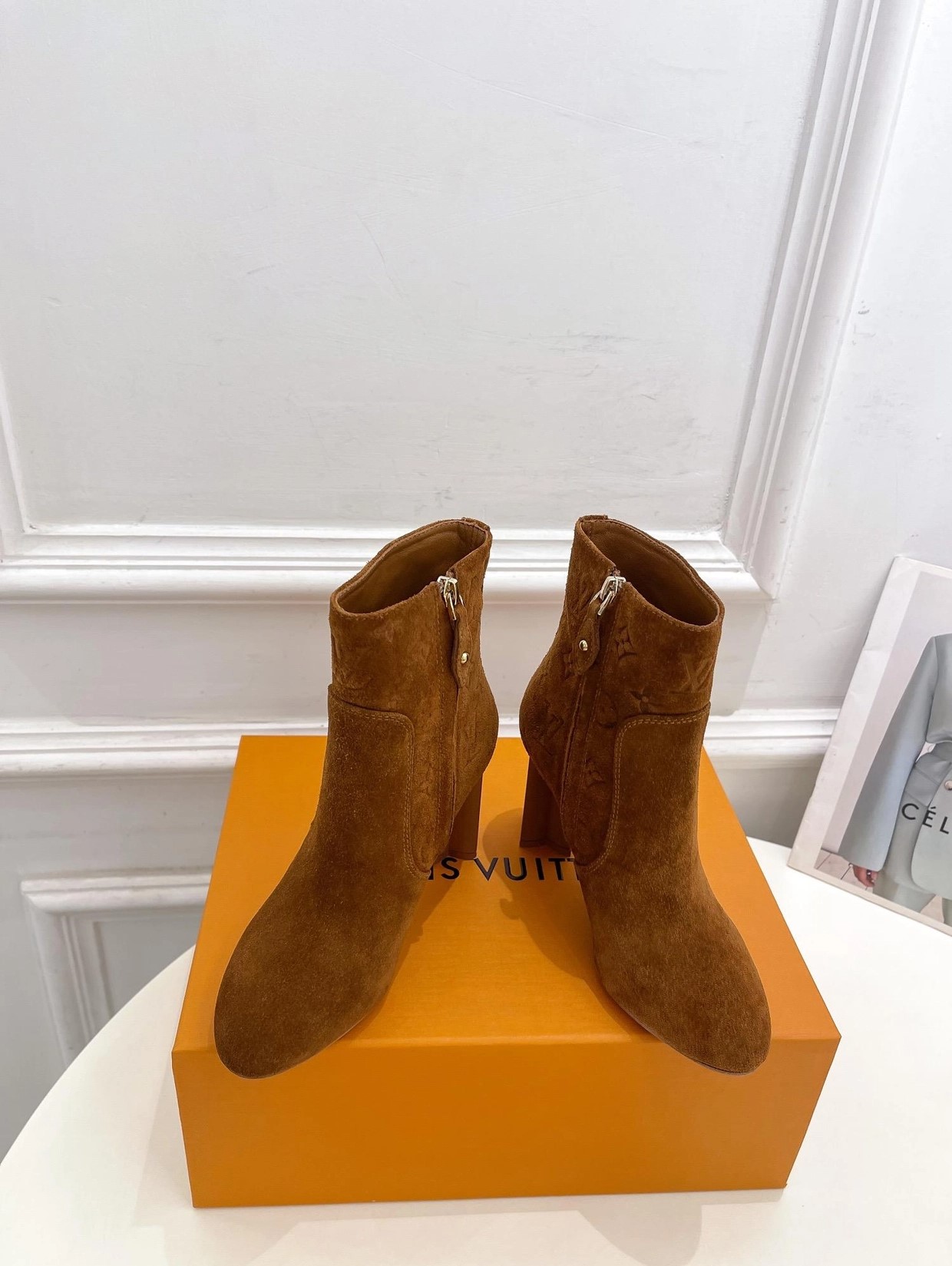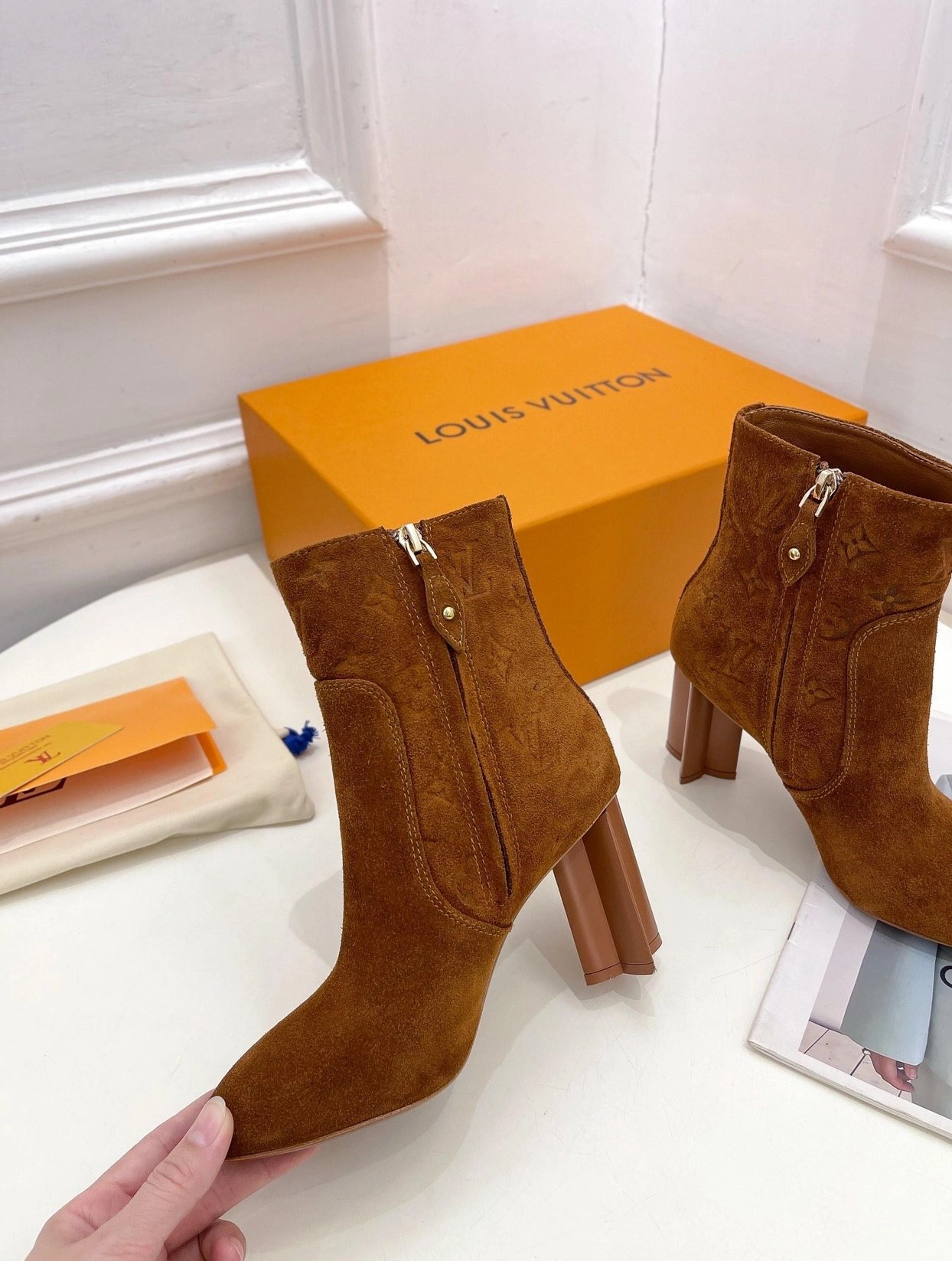 루이비통 실루엣 앵클 벨벳 부츠 코냑