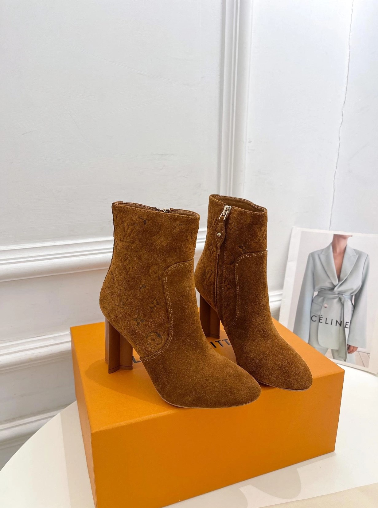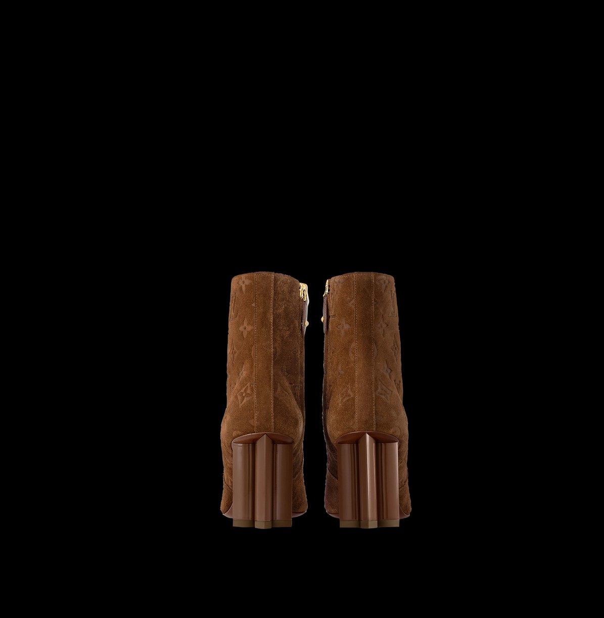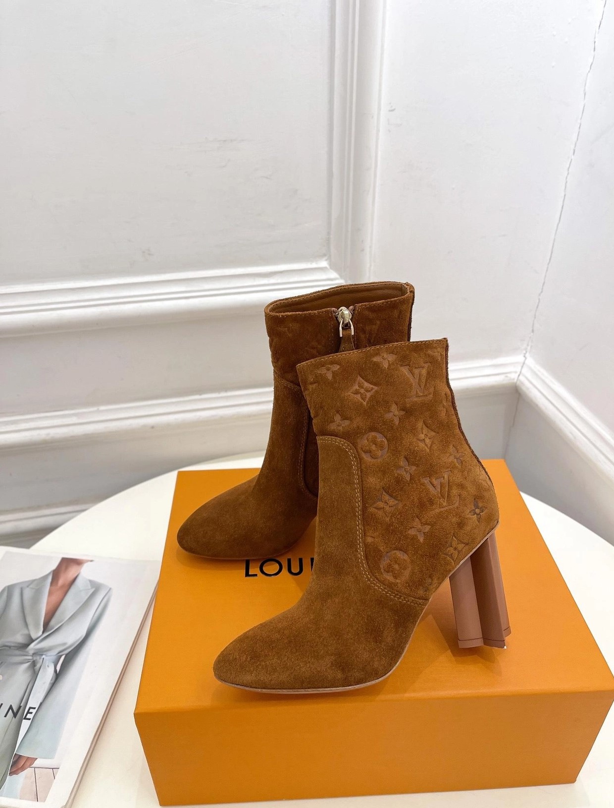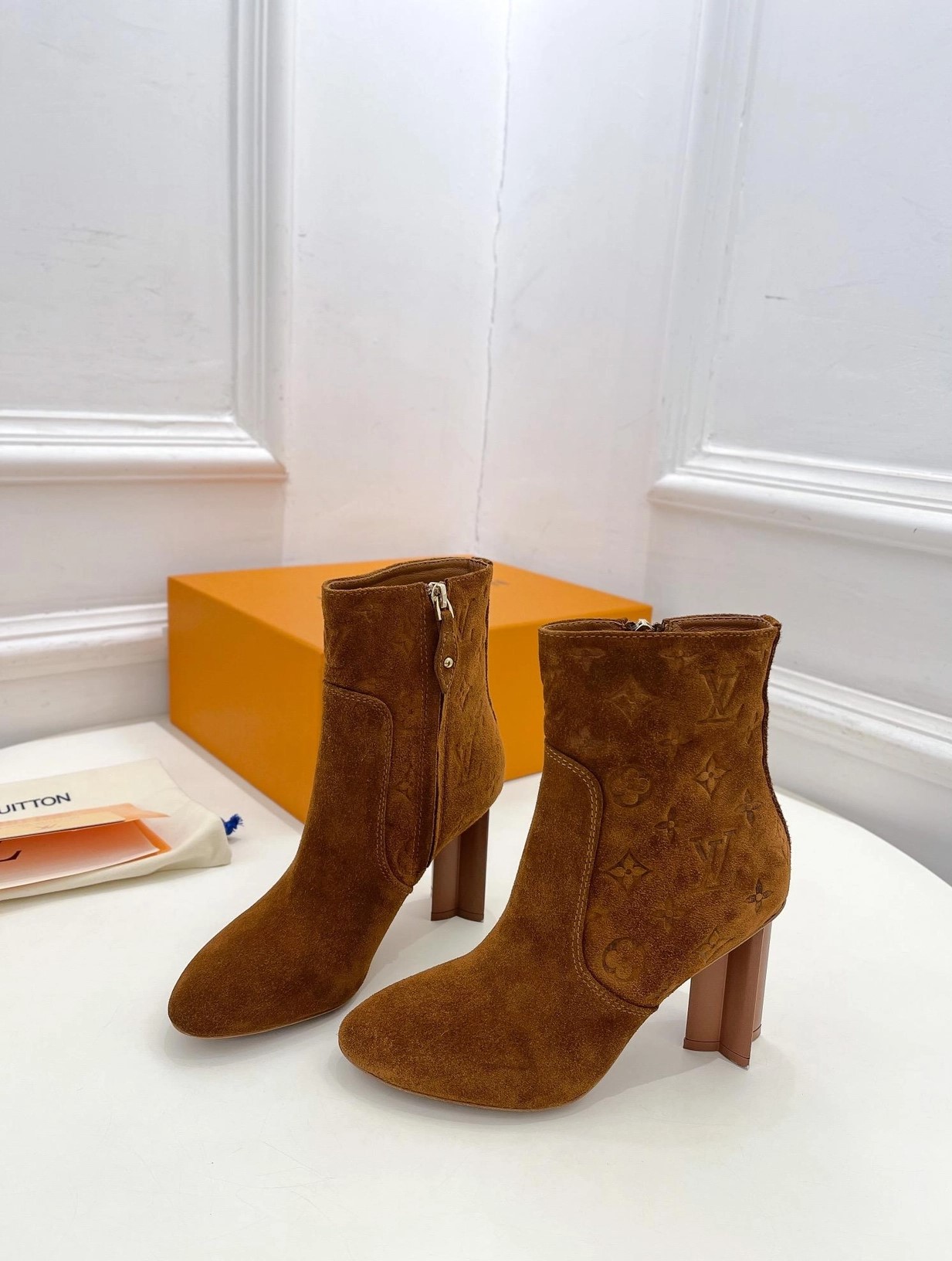 루이비통 실루엣 앵클 벨벳 부츠 코냑