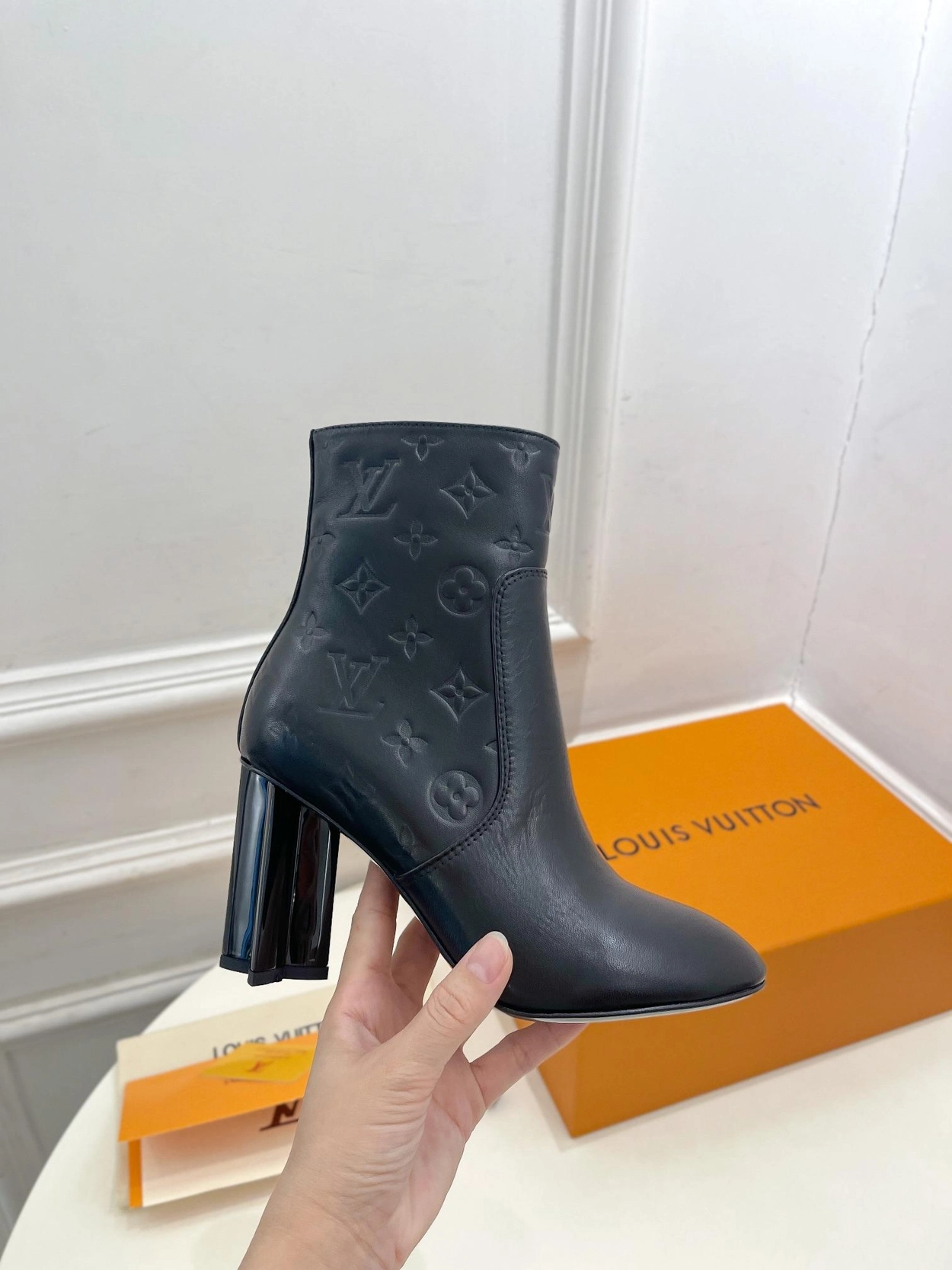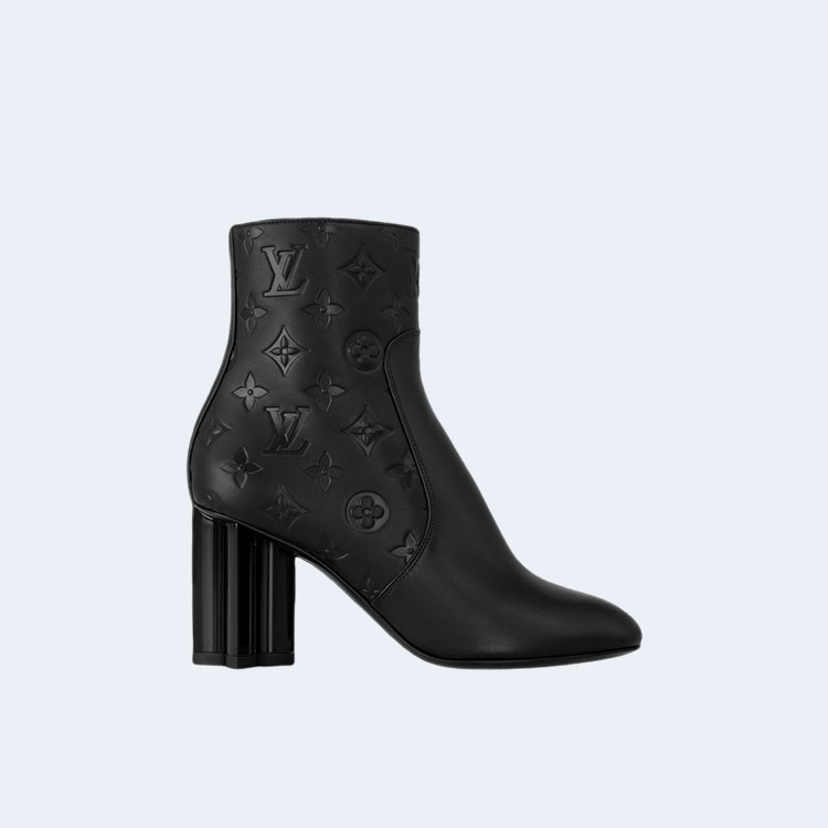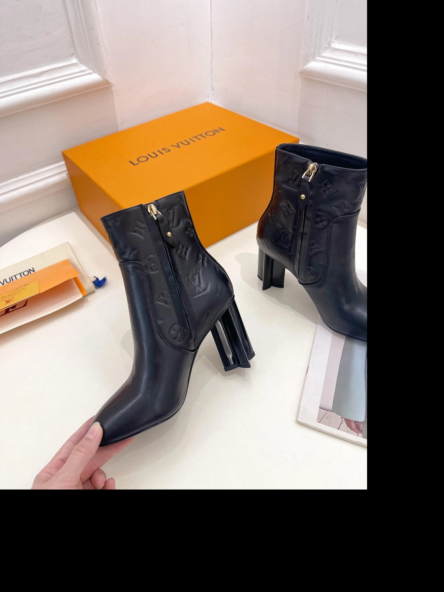 루이비통 실루엣 앵클 벨벳 부츠 코냑