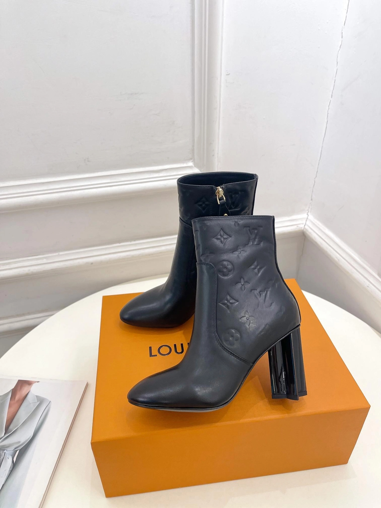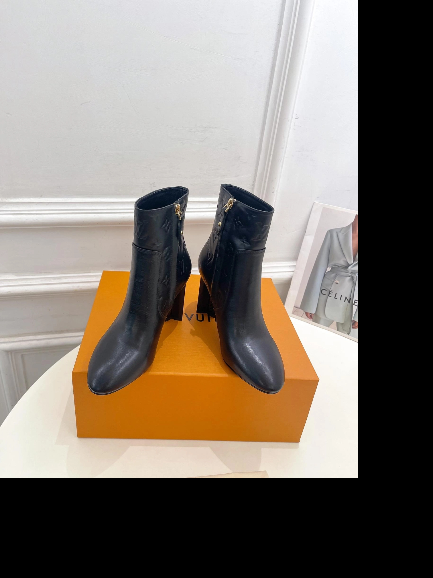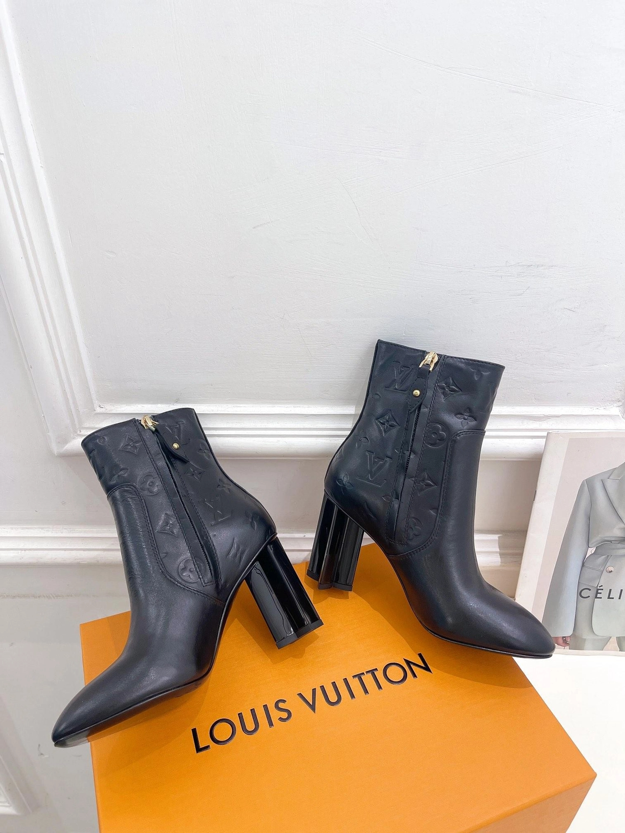 루이비통 실루엣 앵클 벨벳 부츠 코냑