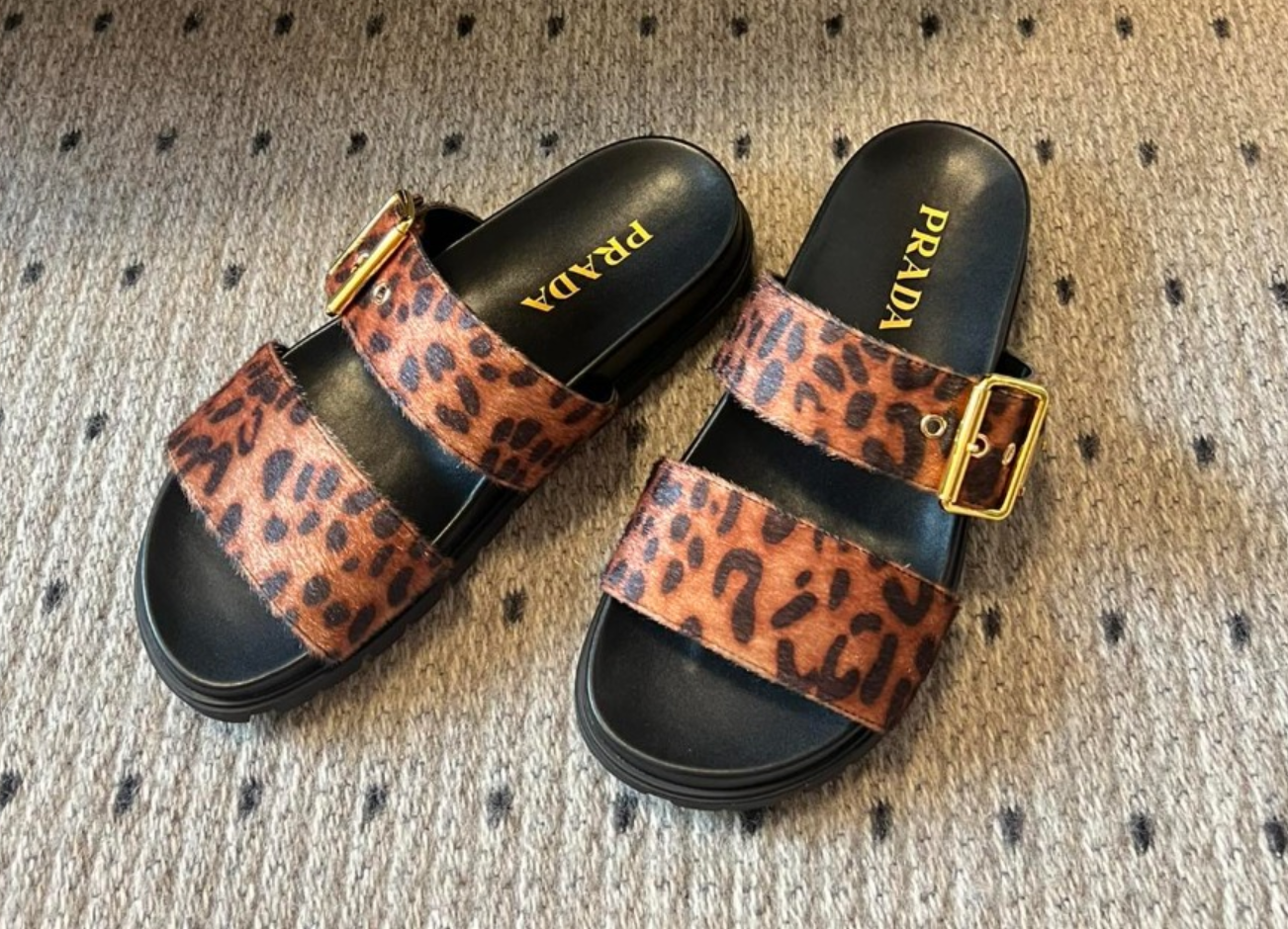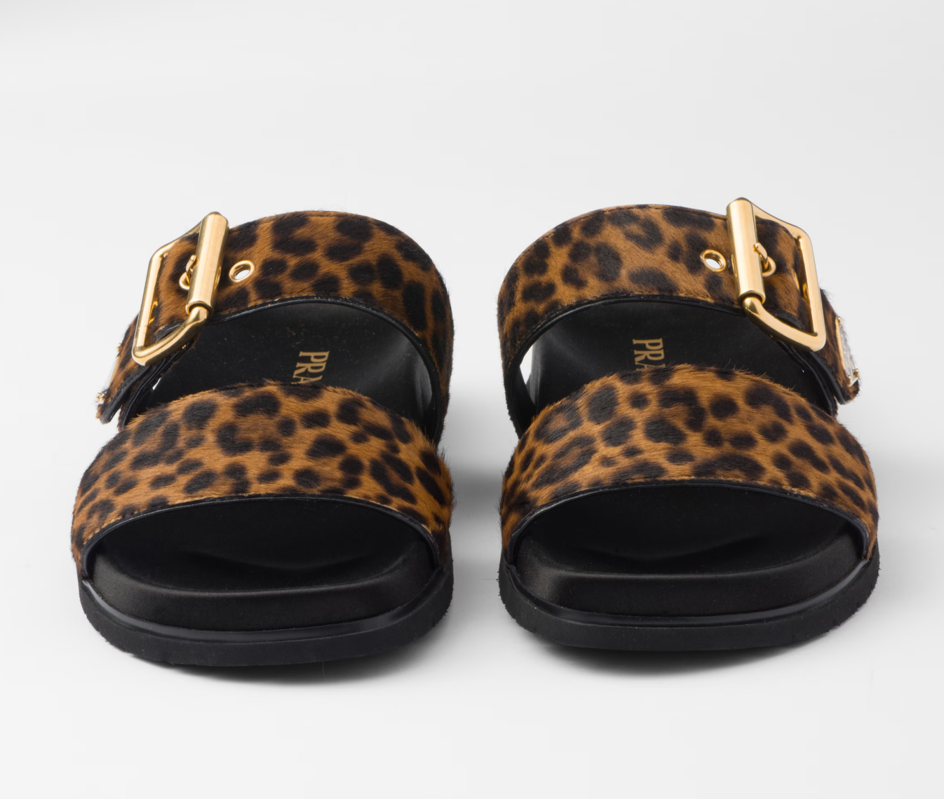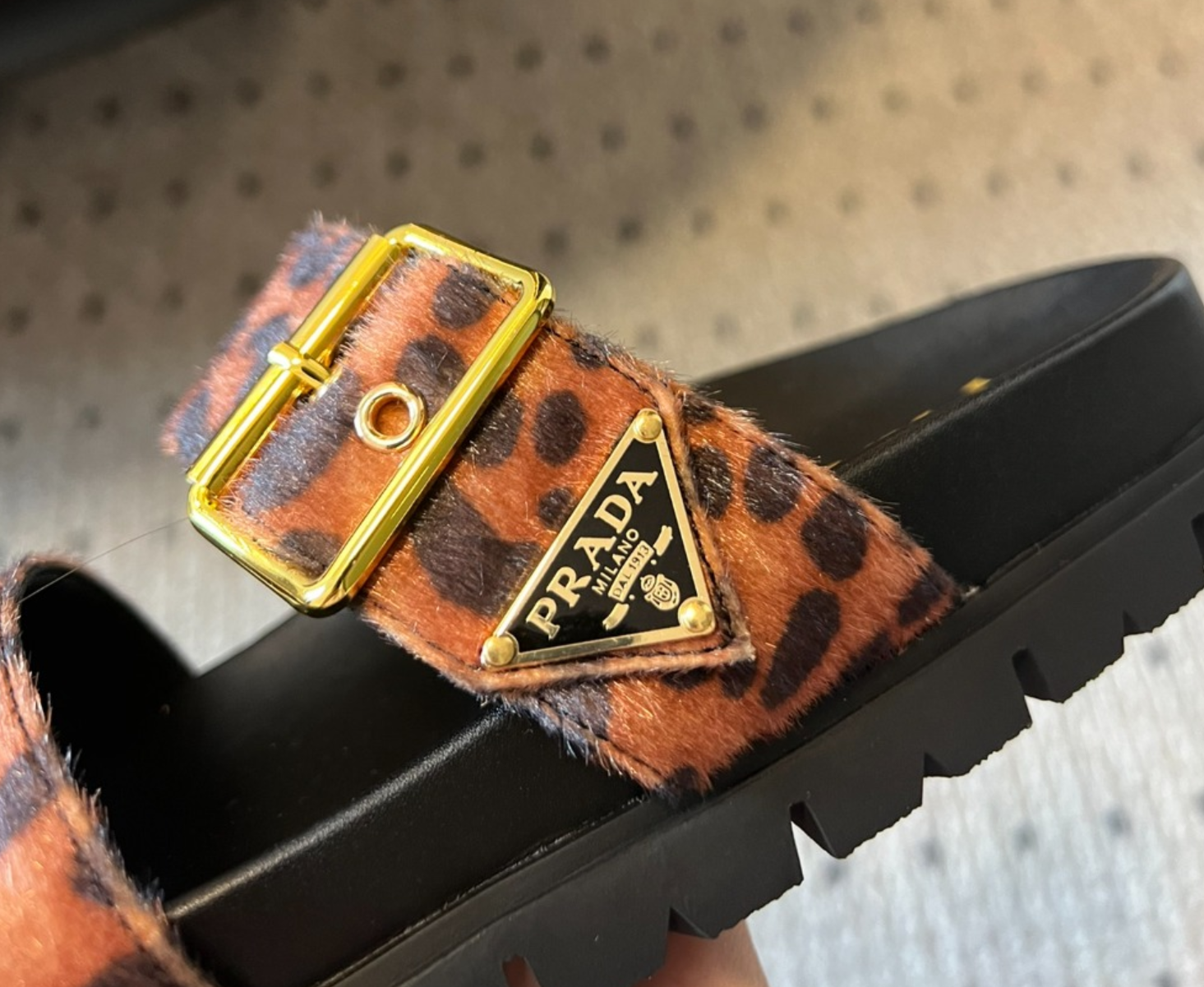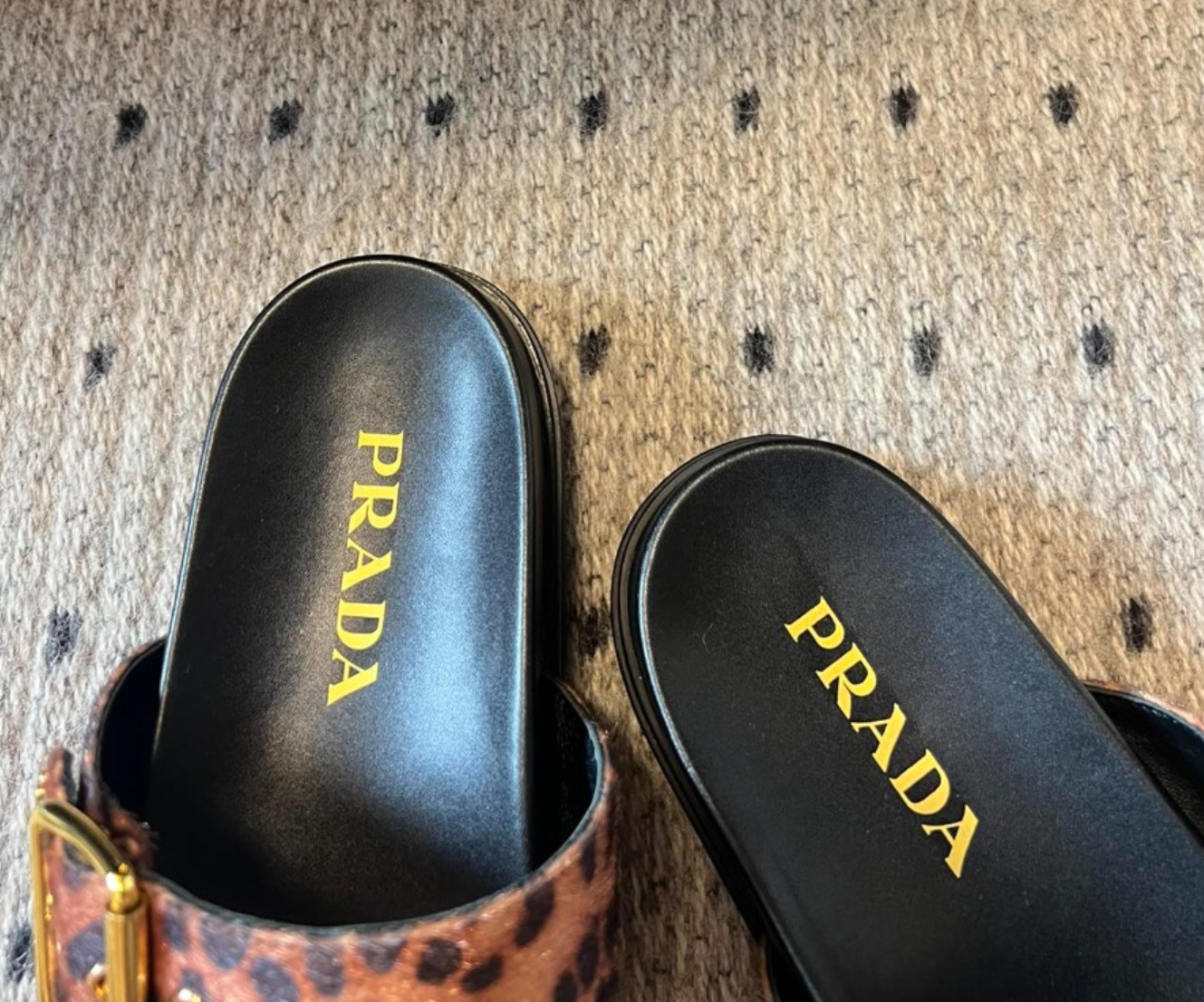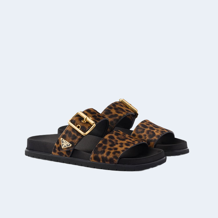 프라다 스웨이드 스트랩 슬라이드 에크루