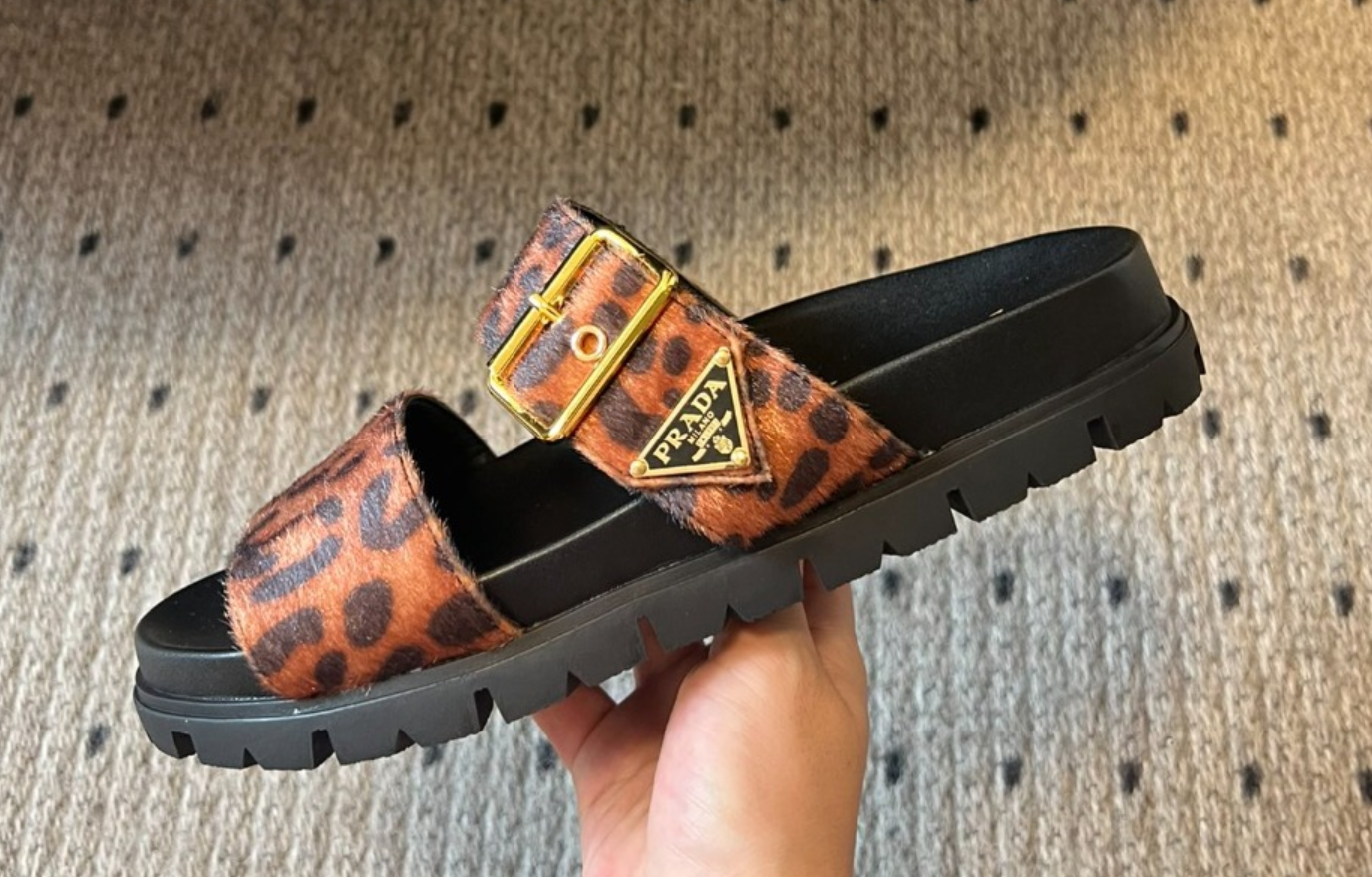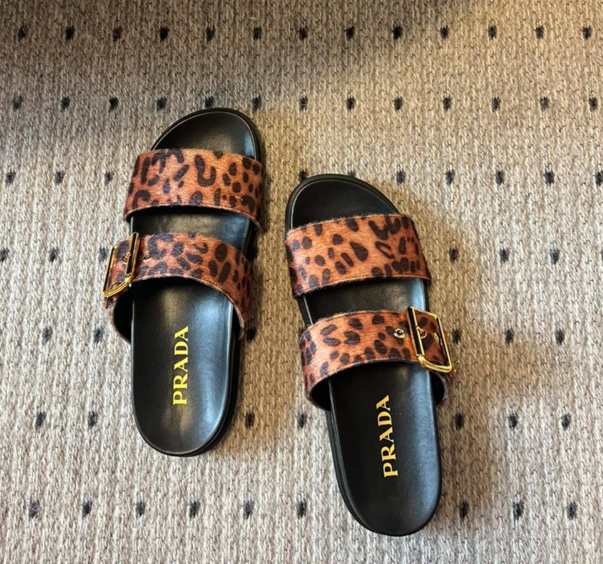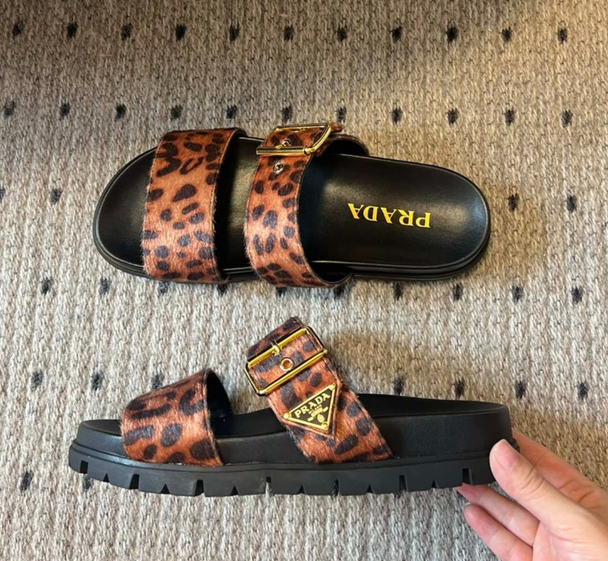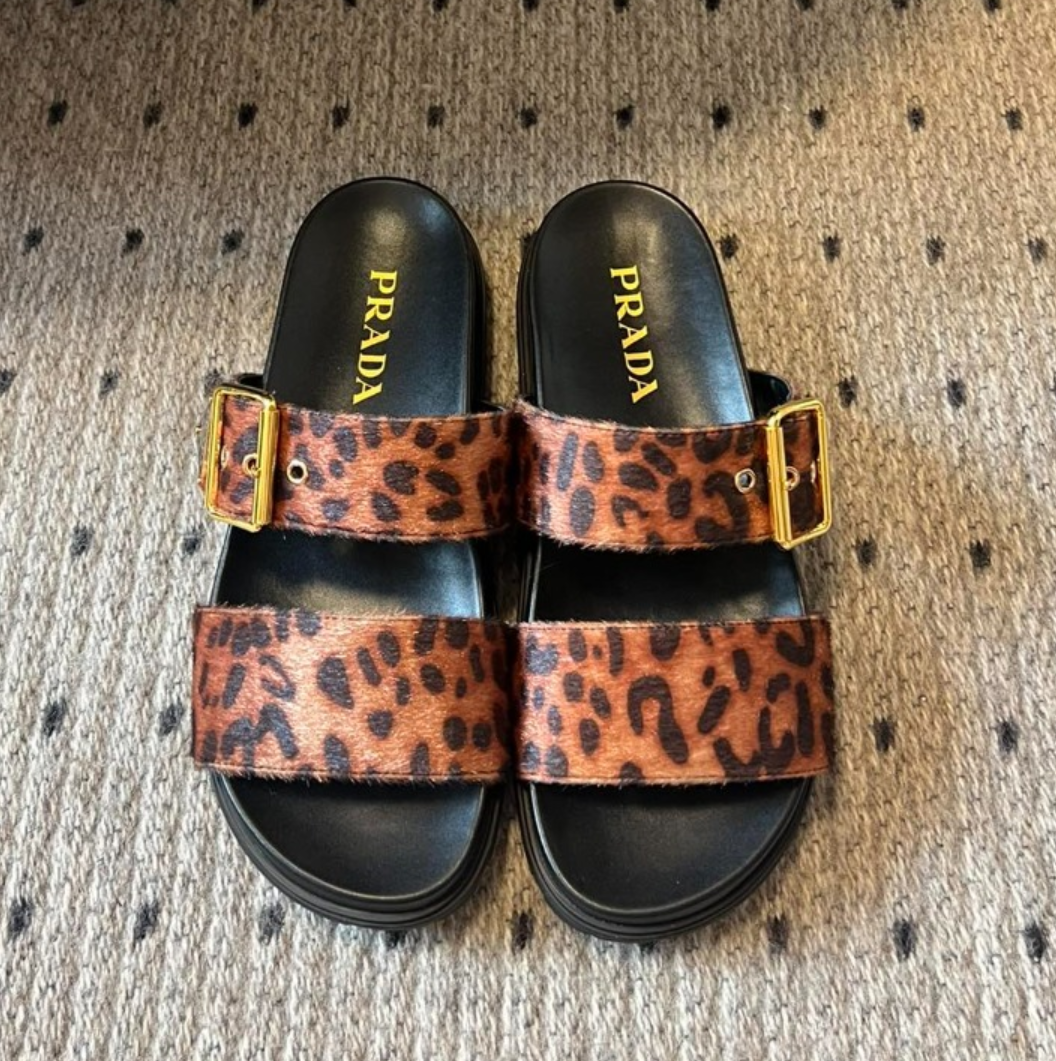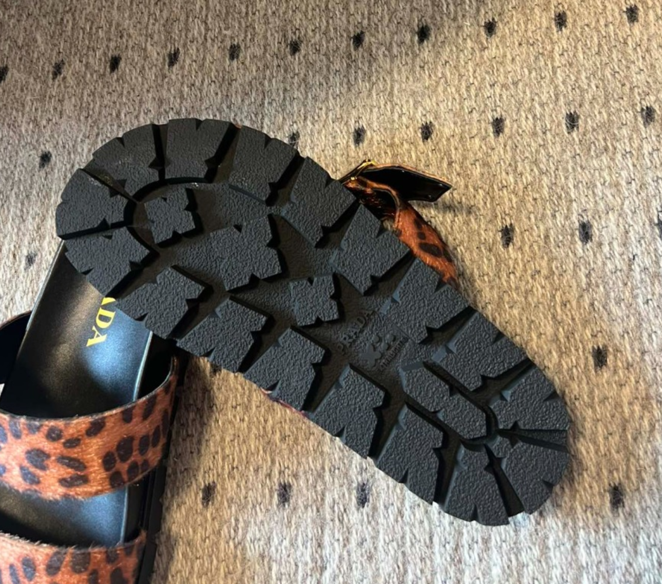 프라다 스웨이드 스트랩 슬라이드 에크루