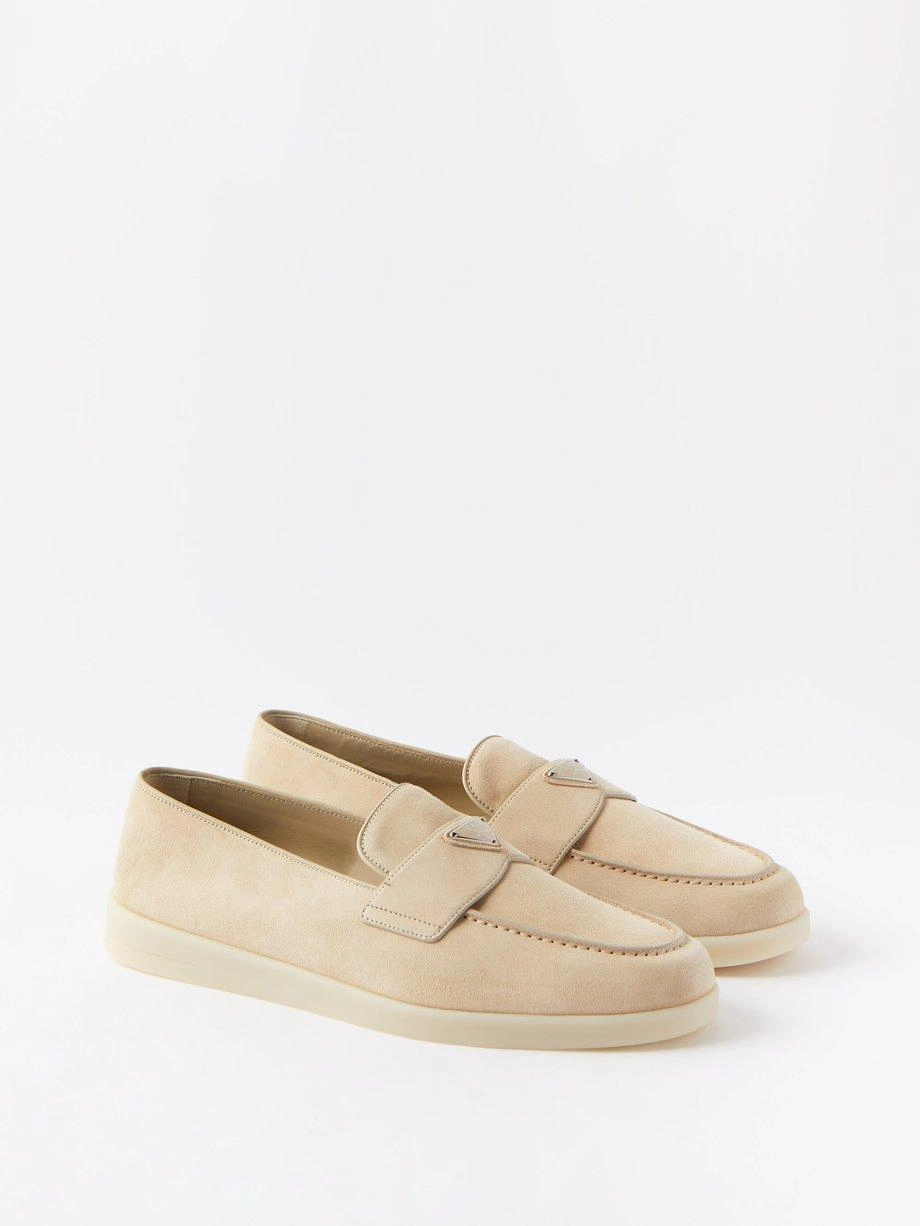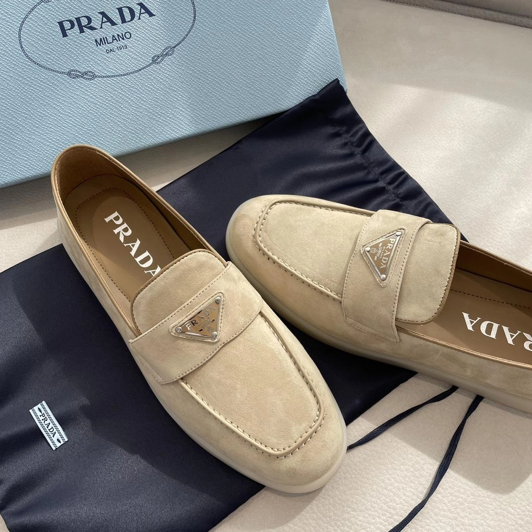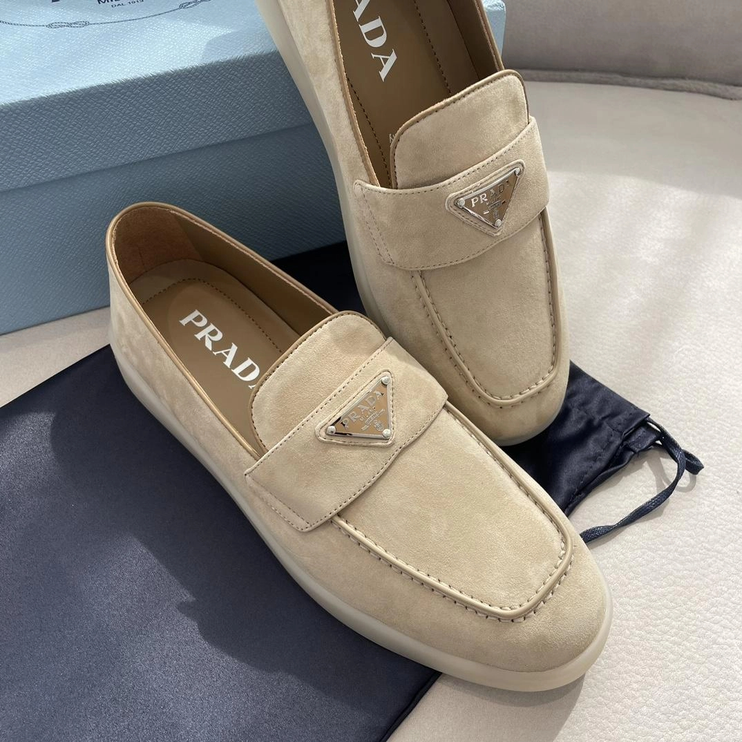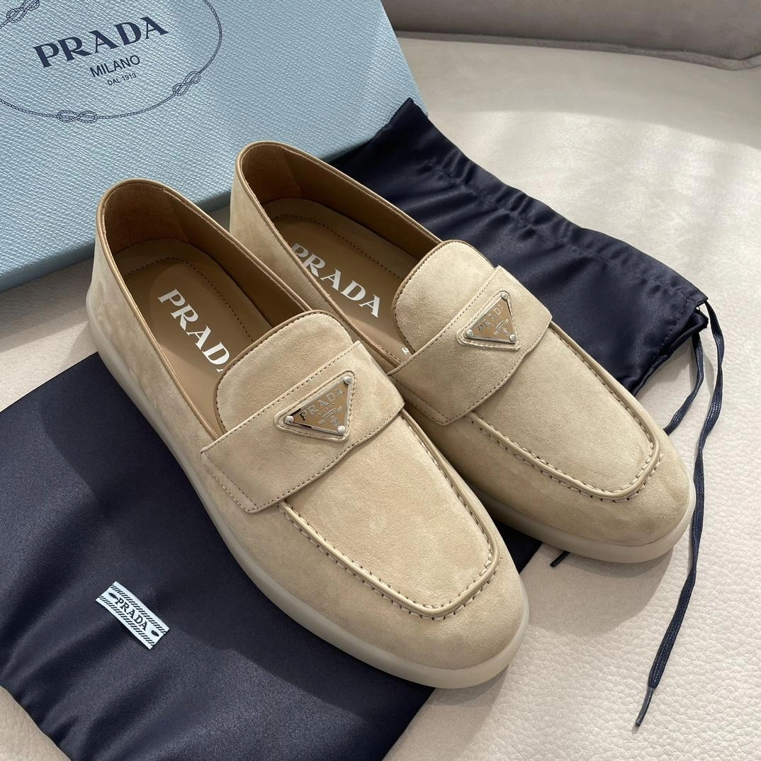 프라다 로고 스웨이드 로퍼