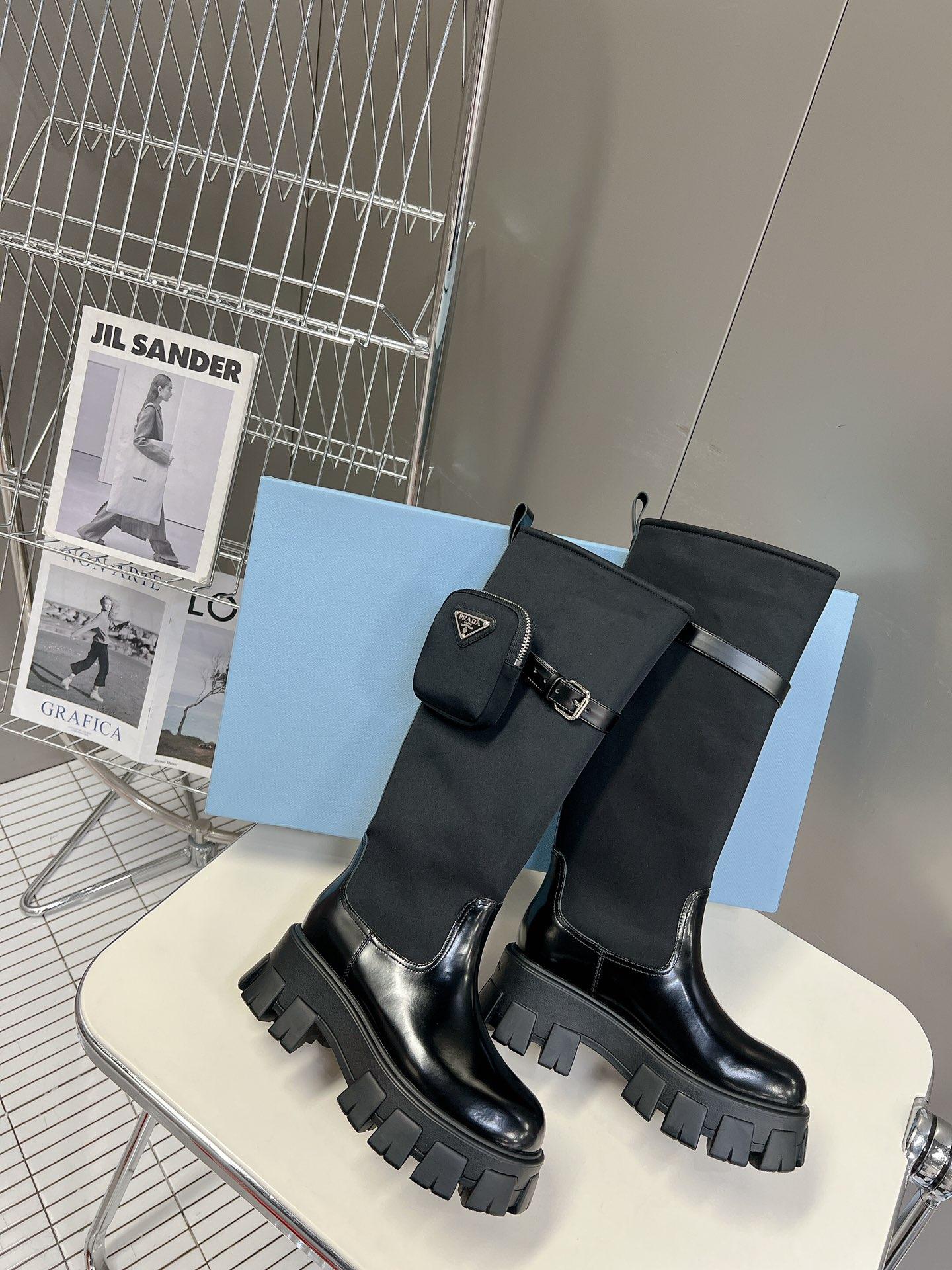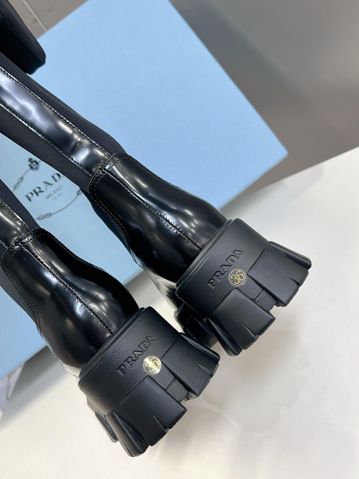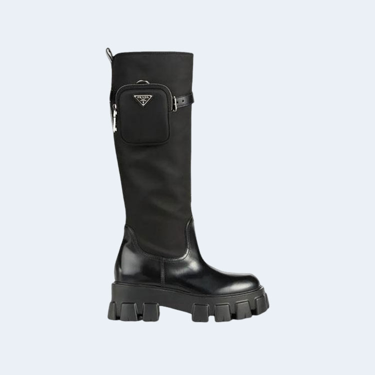 프라다 브러시드 ROIS 가죽 나일론 모노리스 부츠