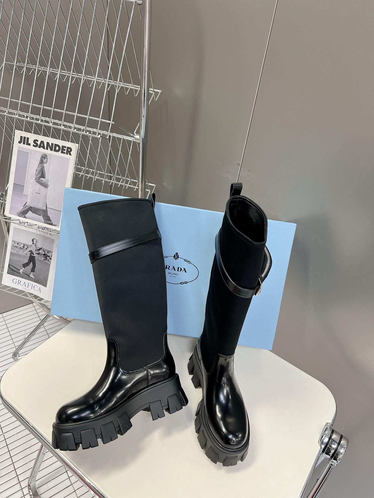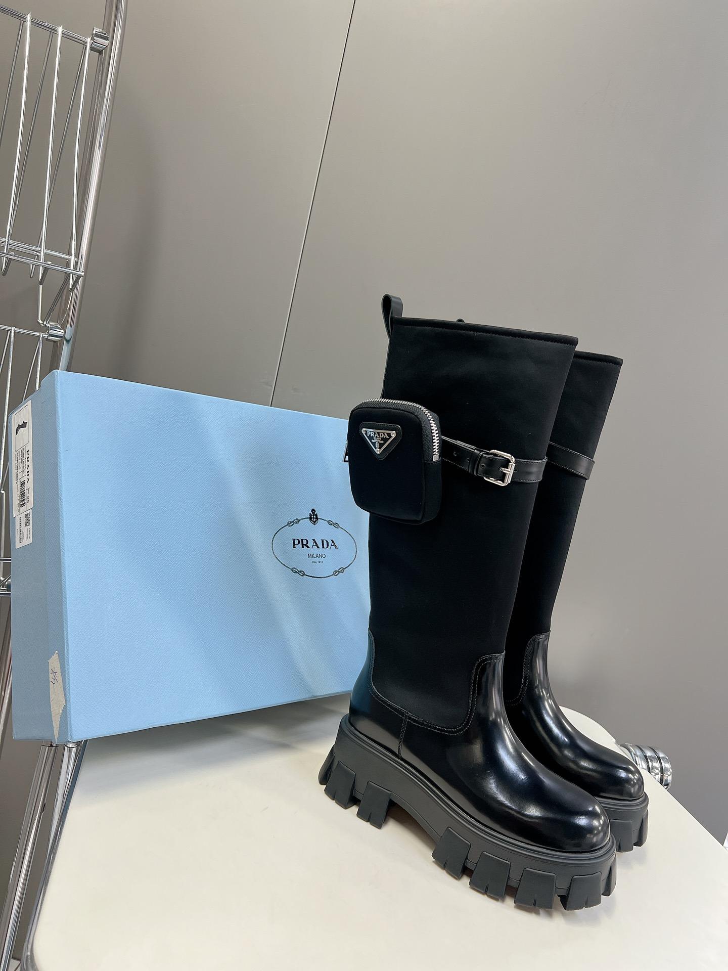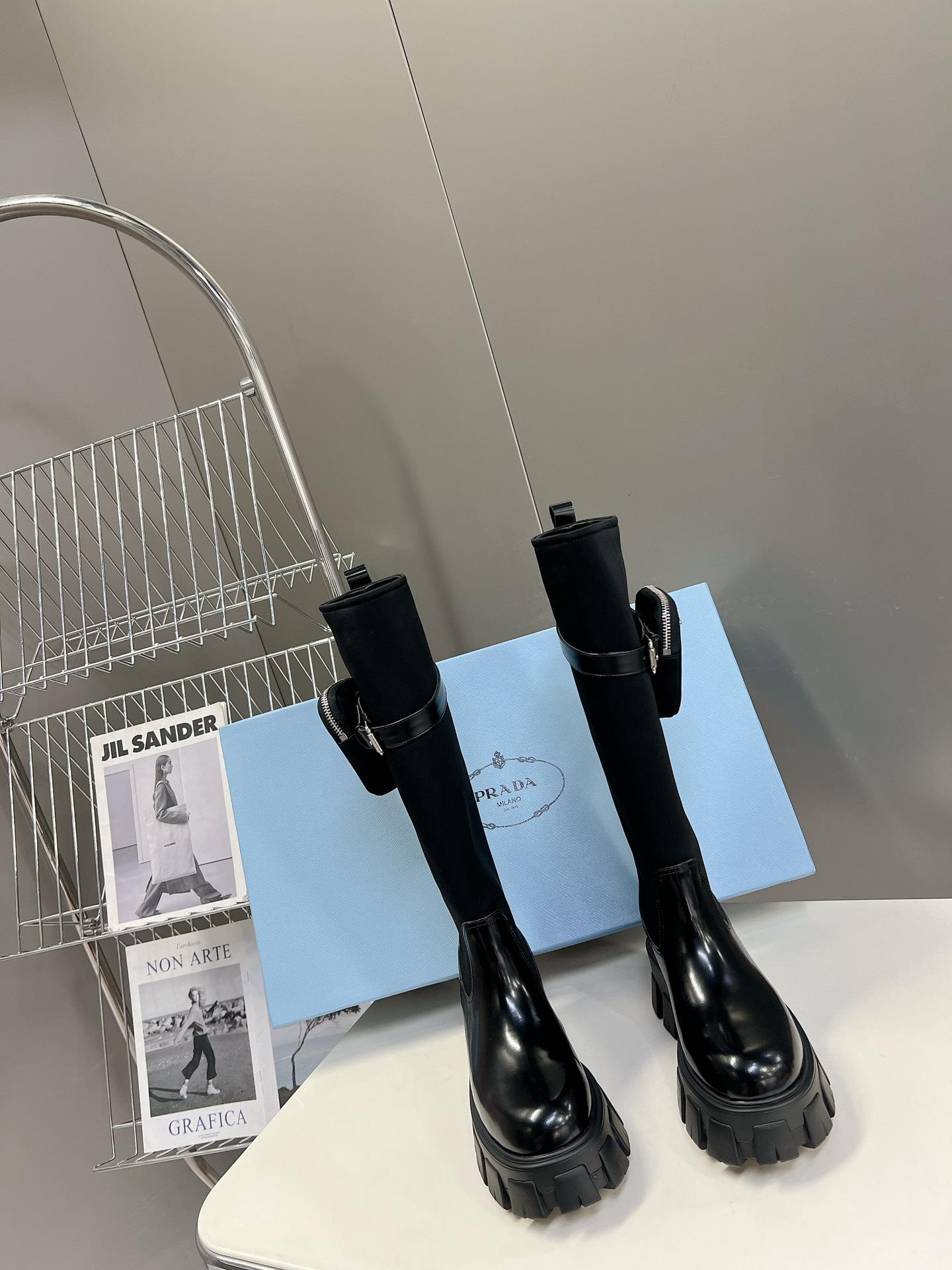 프라다 브러시드 ROIS 가죽 나일론 모노리스 부츠
