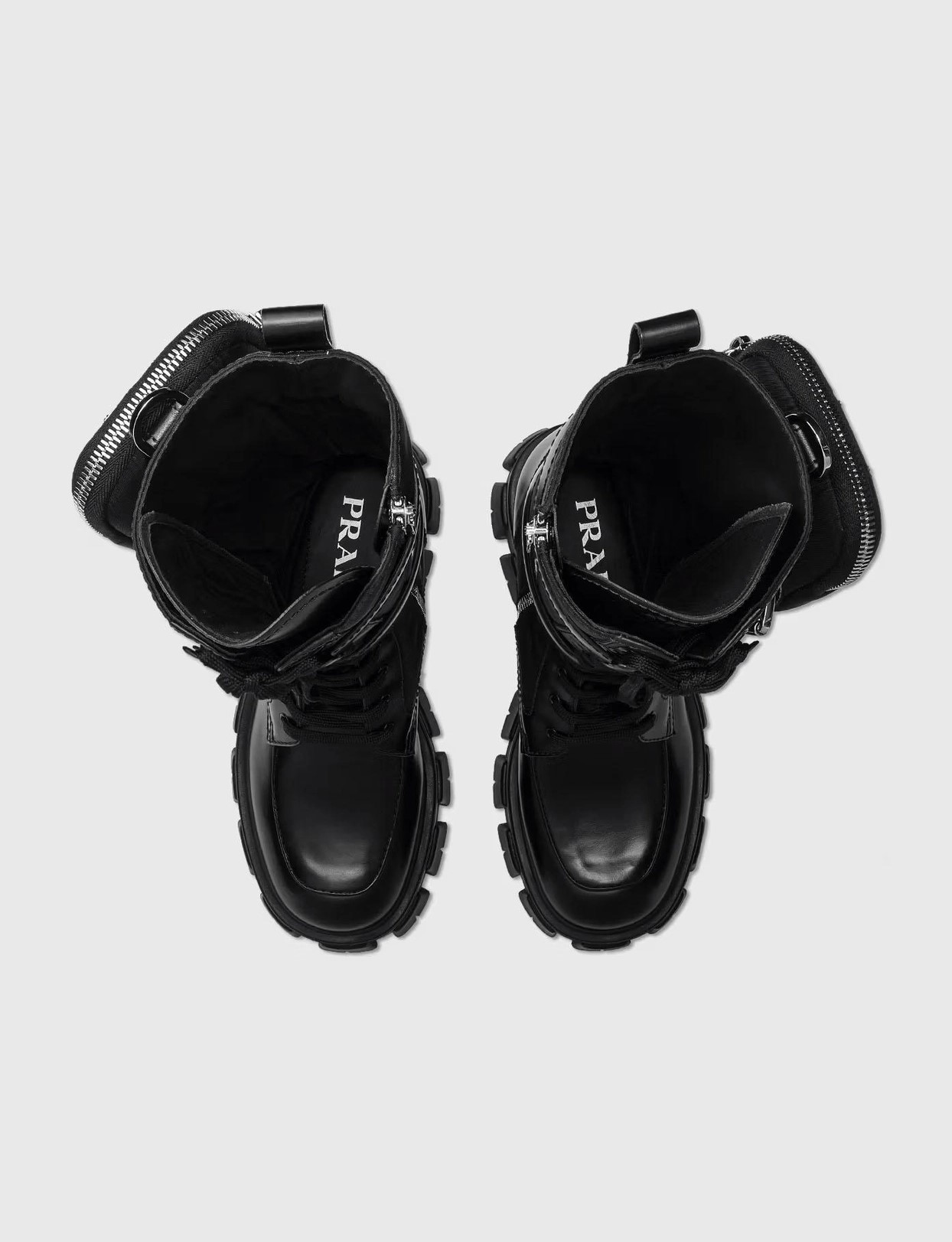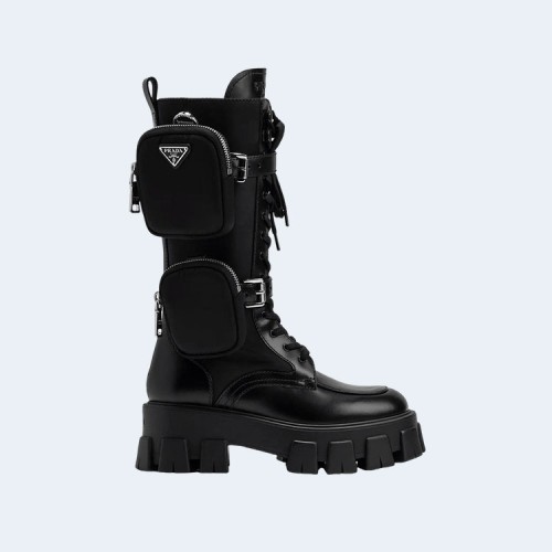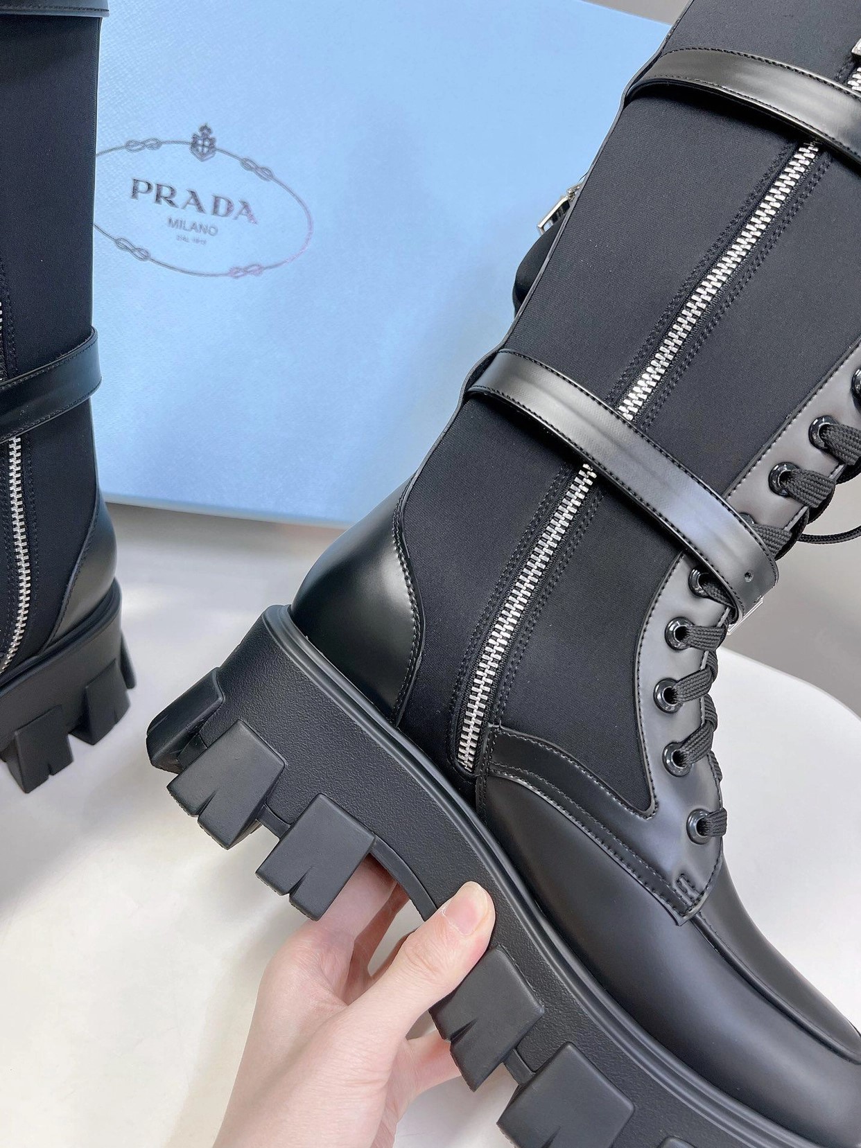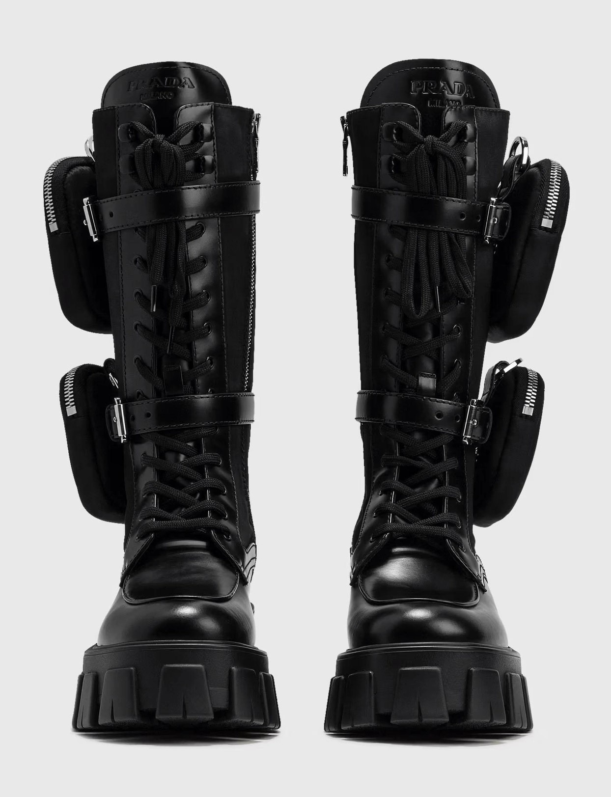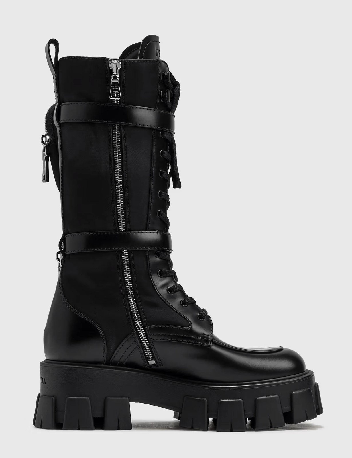 프라다 브러시드 ROIS 가죽 나일론 모노리스 부츠
