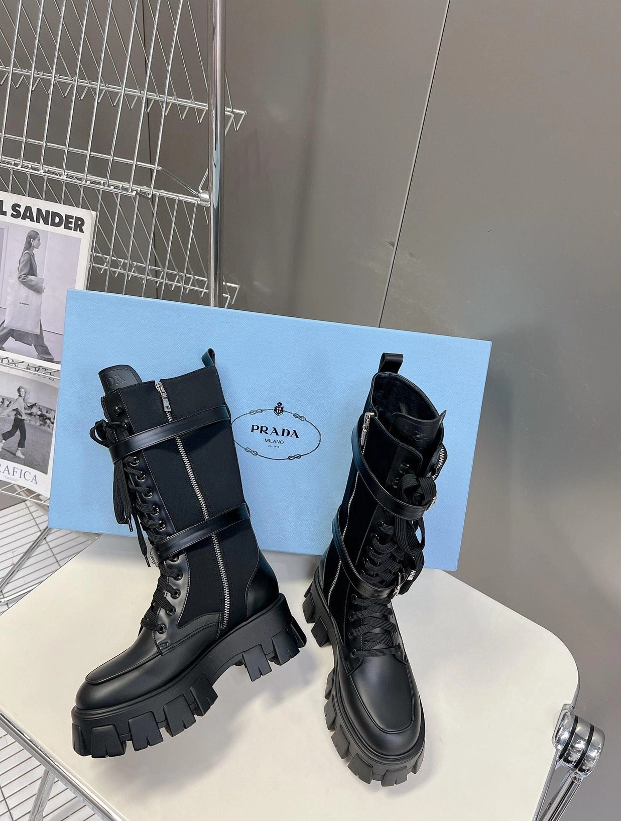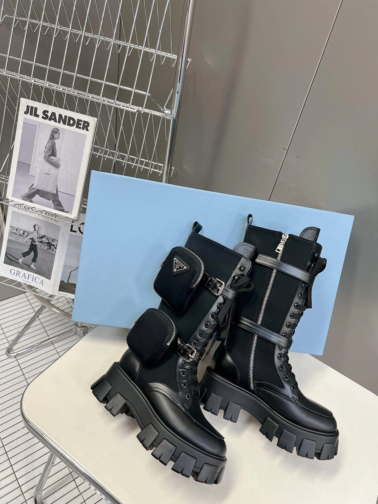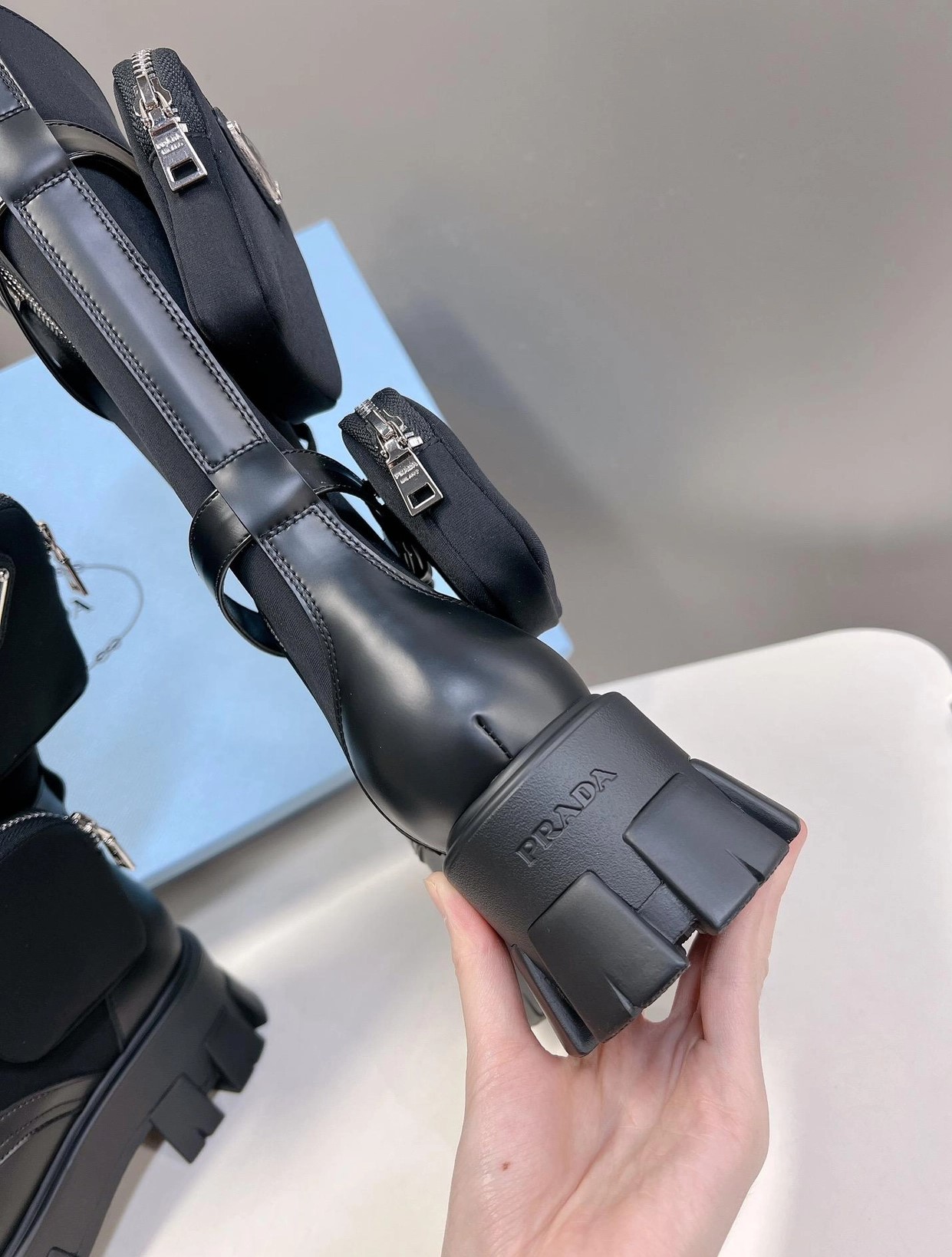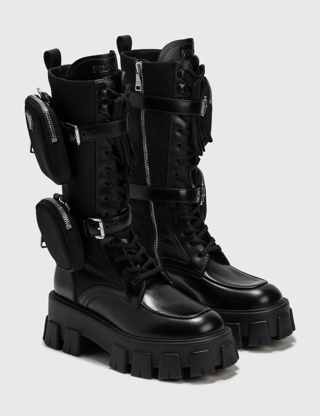 프라다 브러시드 ROIS 가죽 나일론 모노리스 부츠