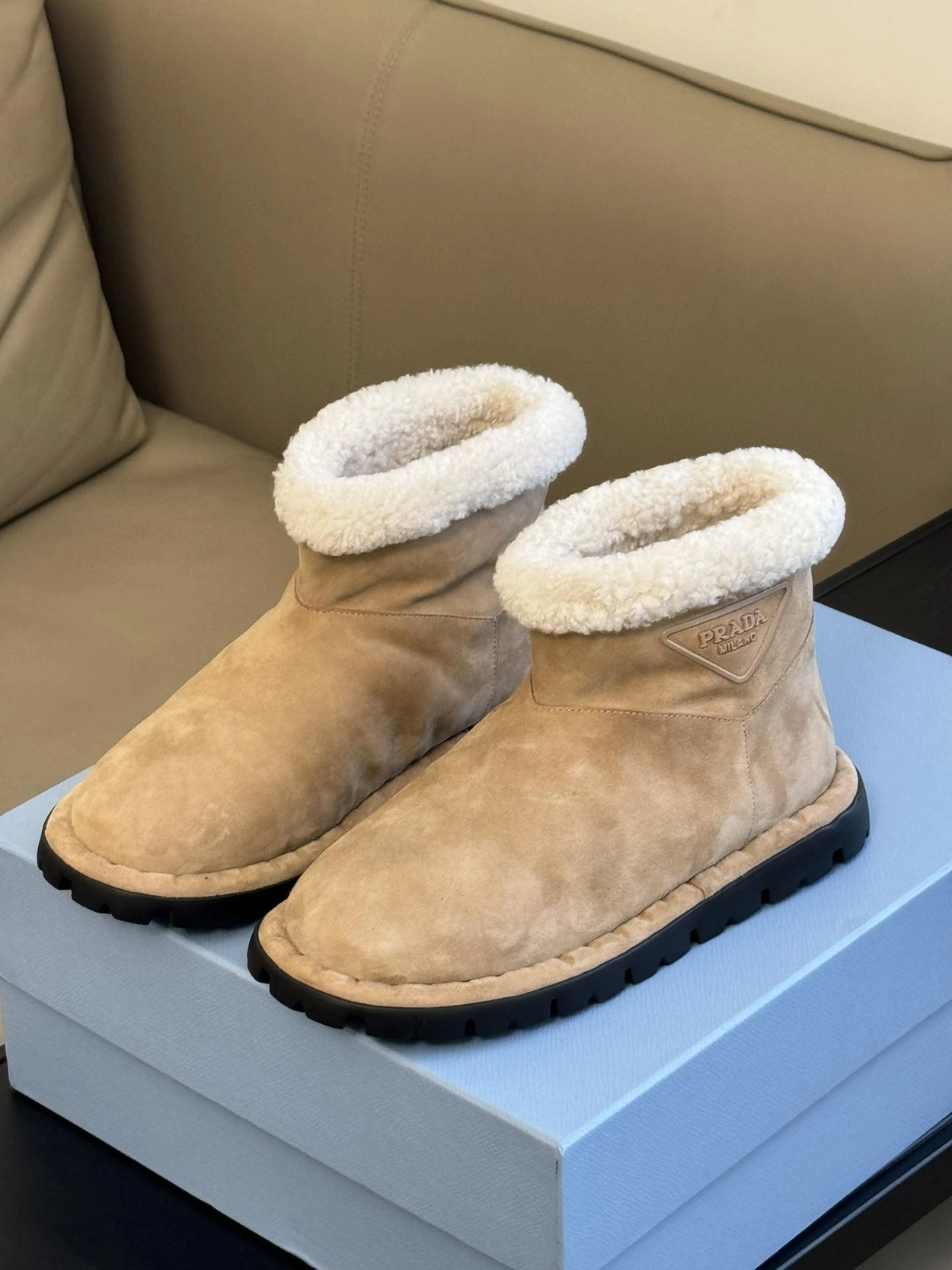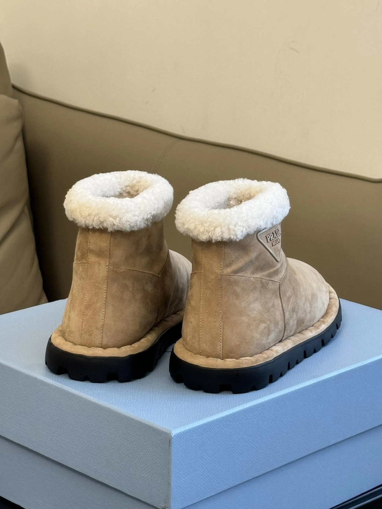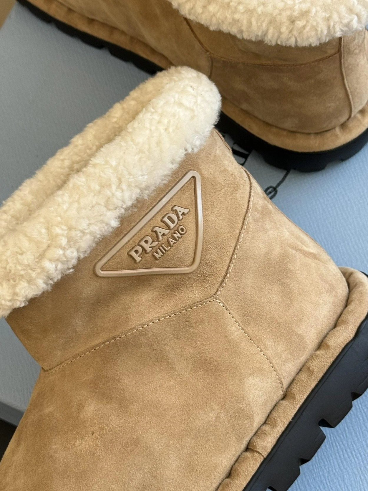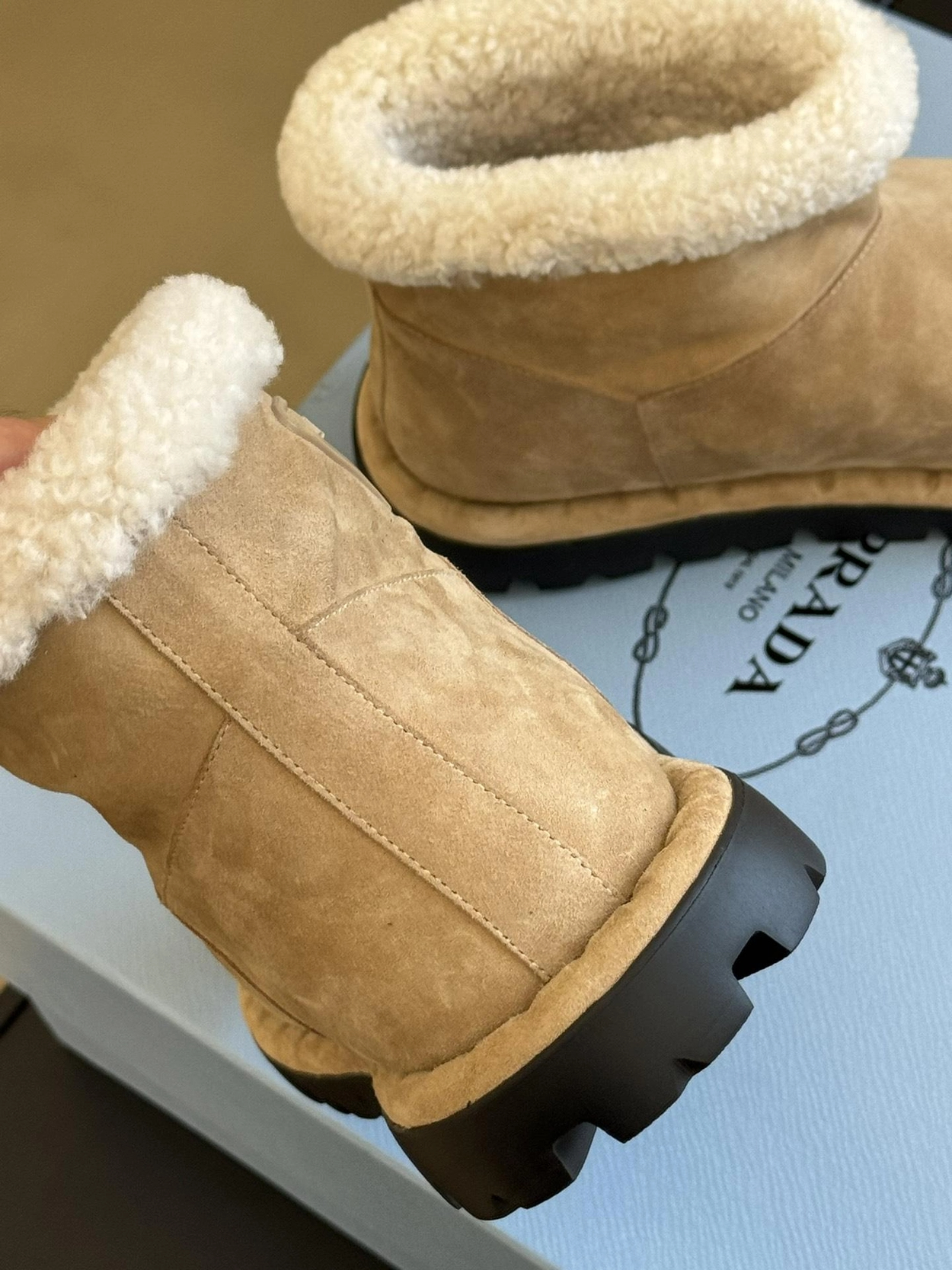 프라다 시어링 부티 에크루 베이지