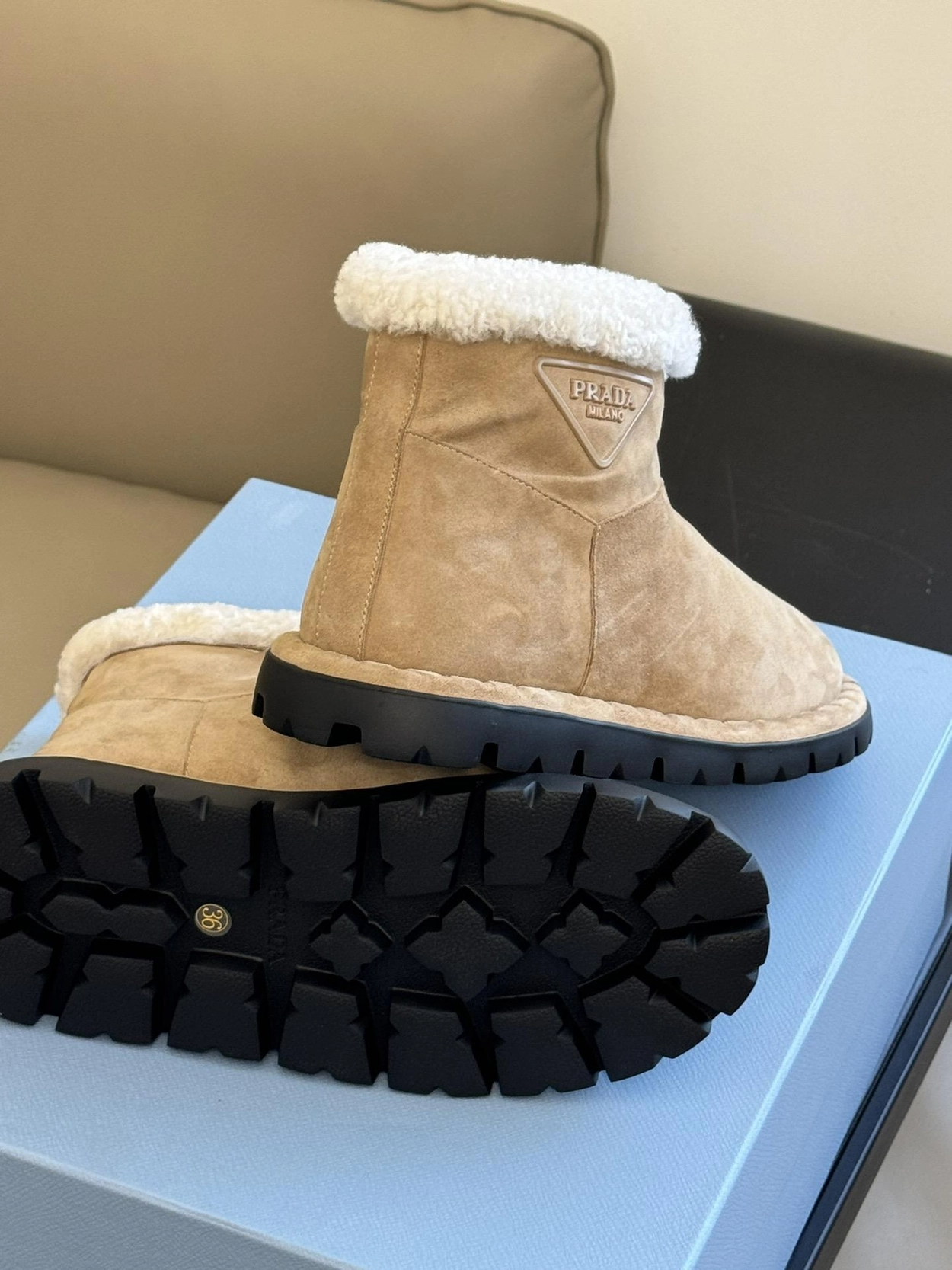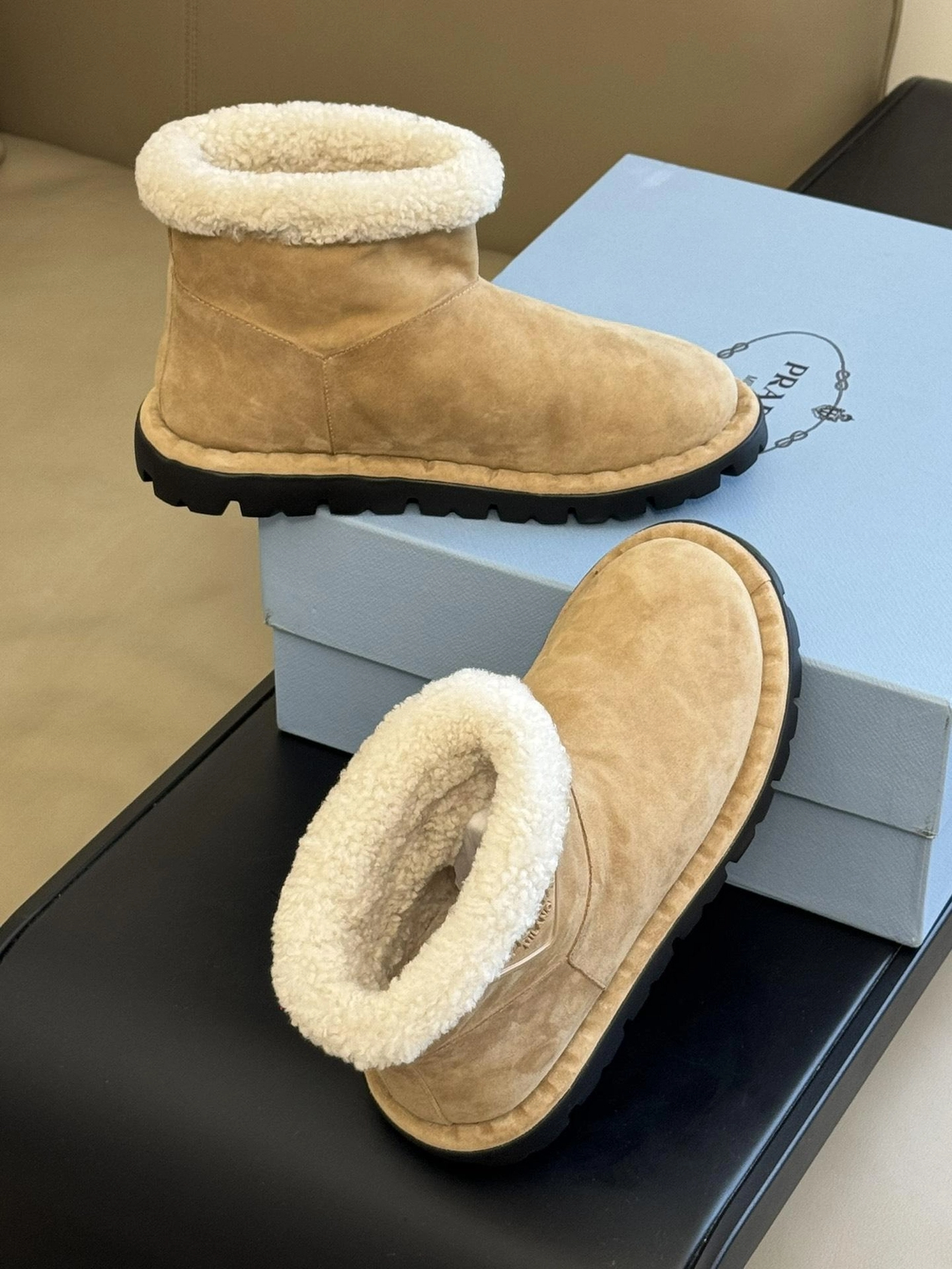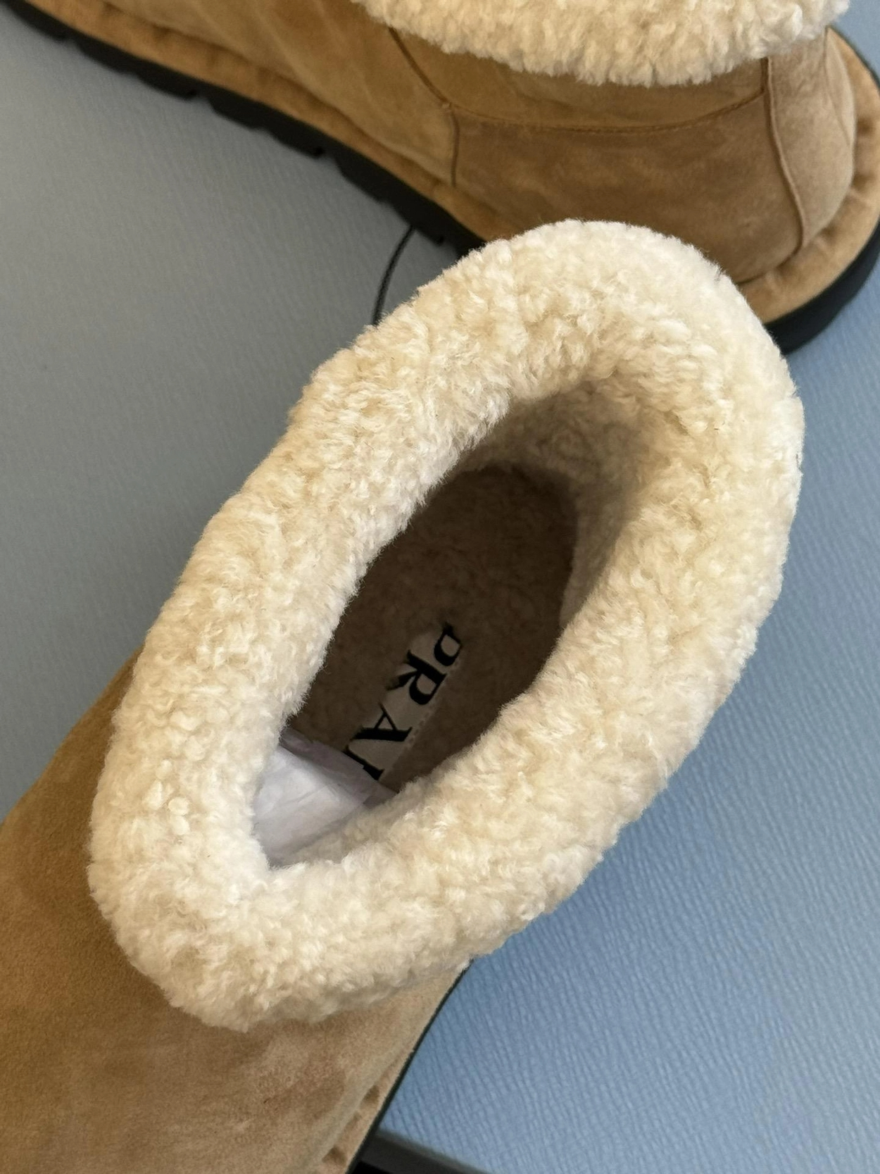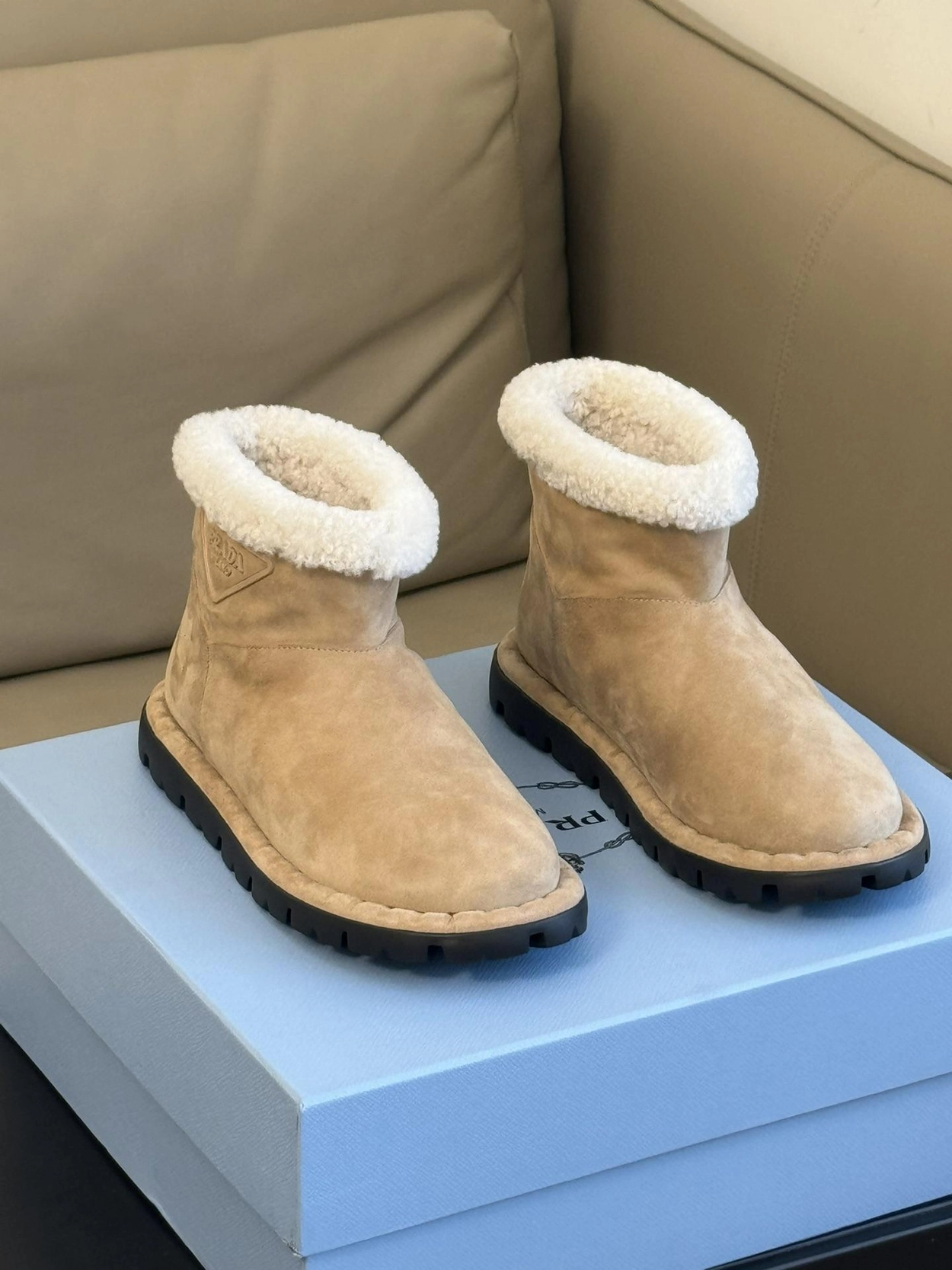 프라다 시어링 부티 에크루 베이지