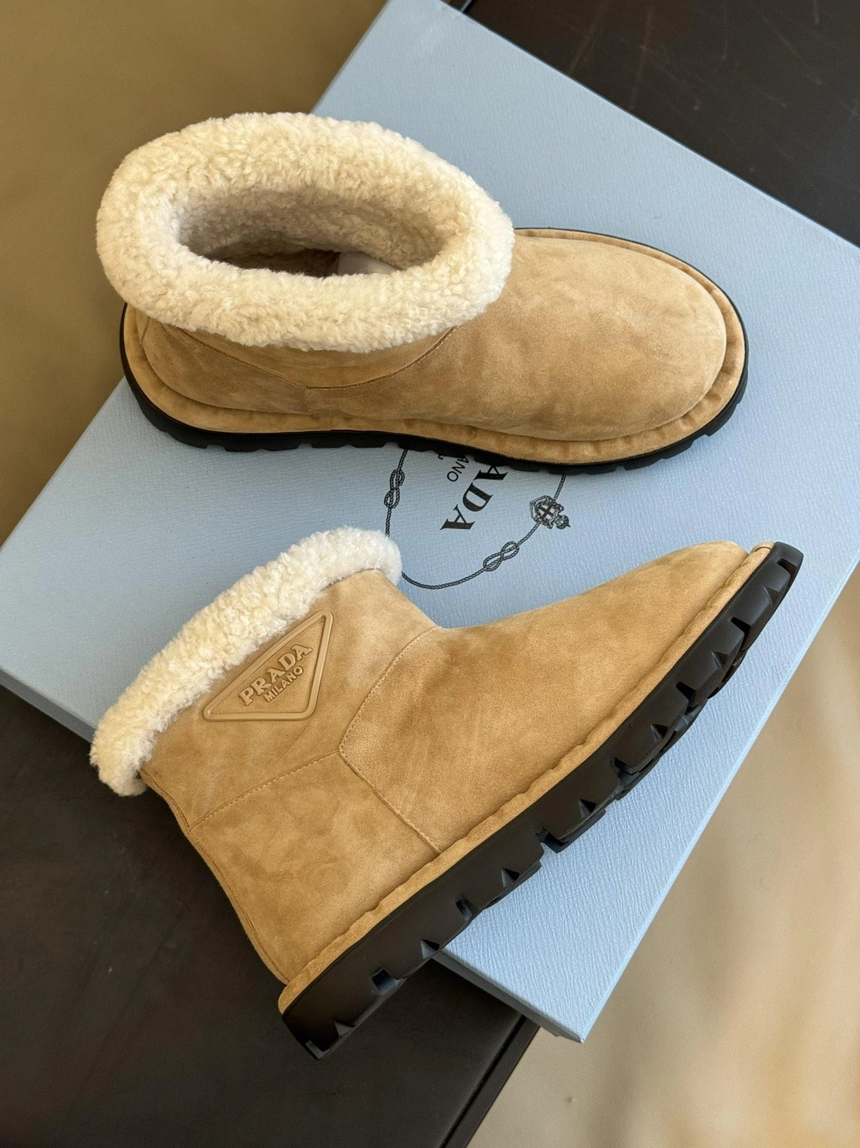 프라다 시어링 부티 에크루