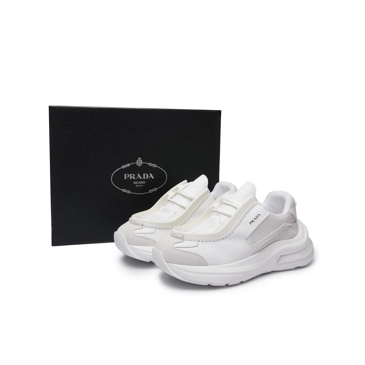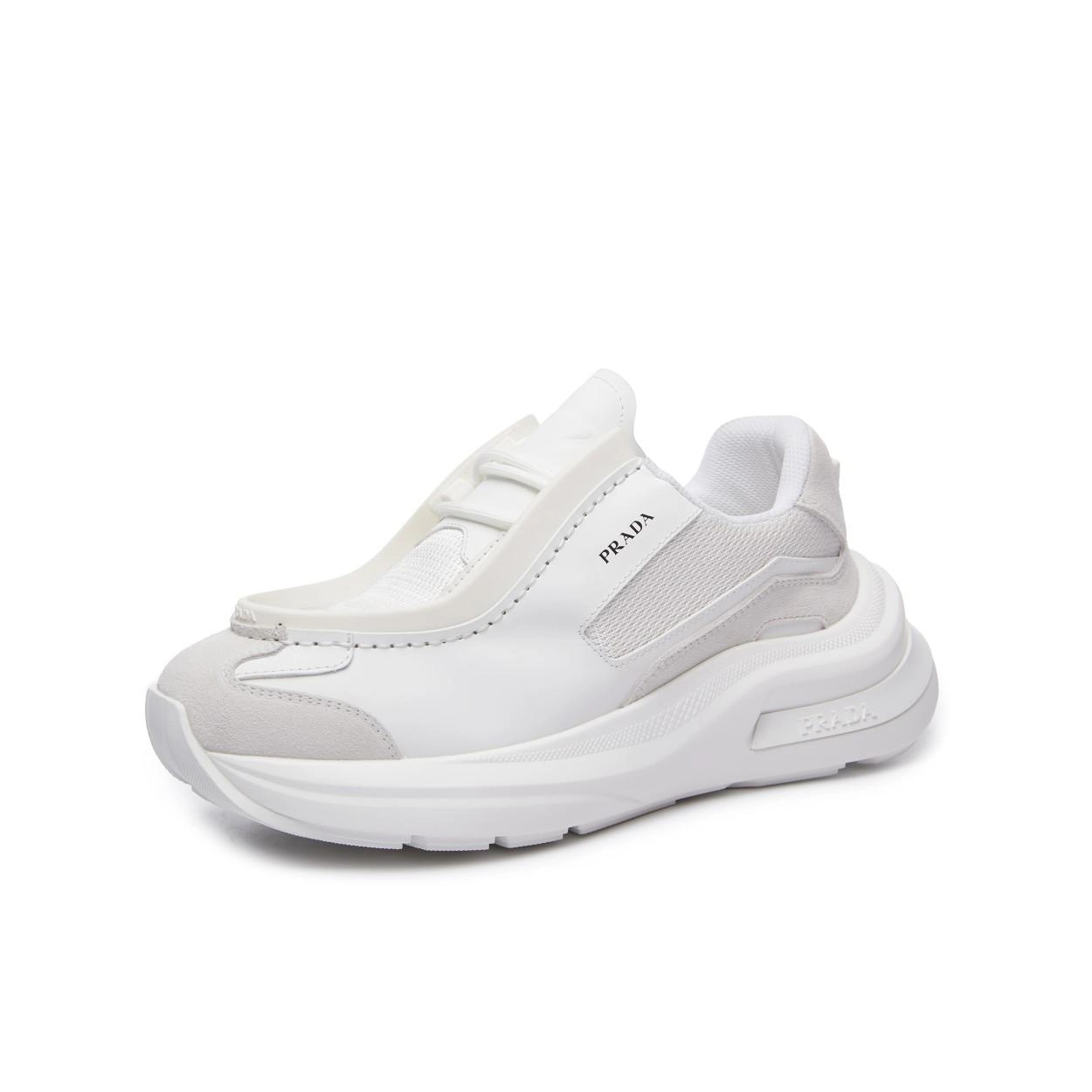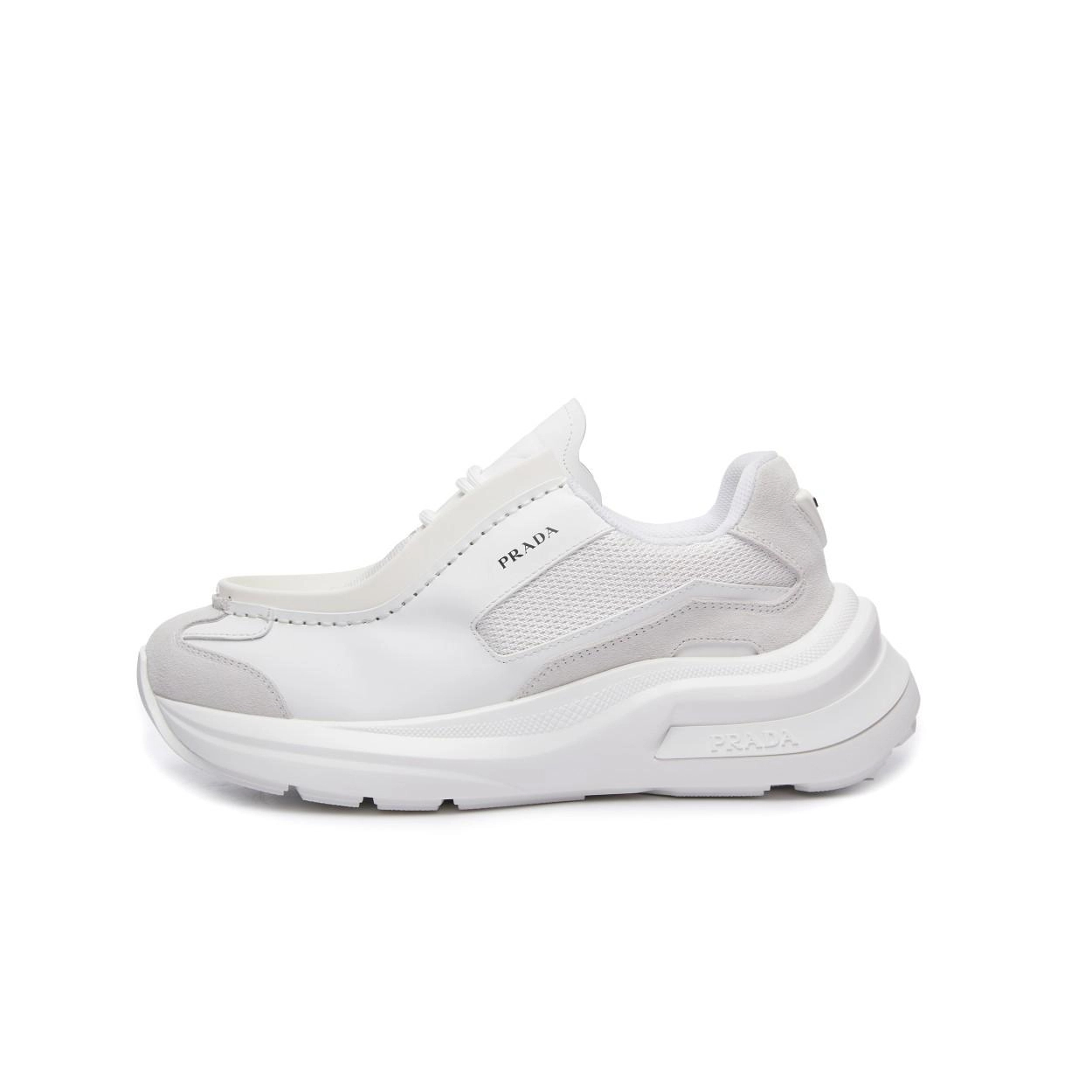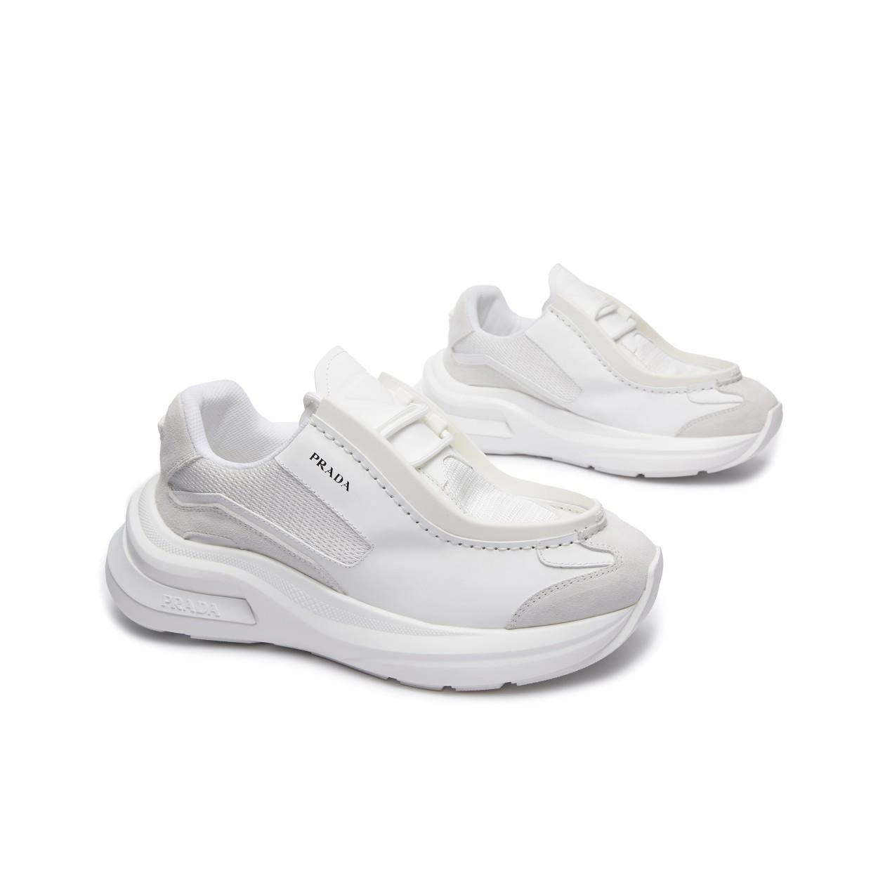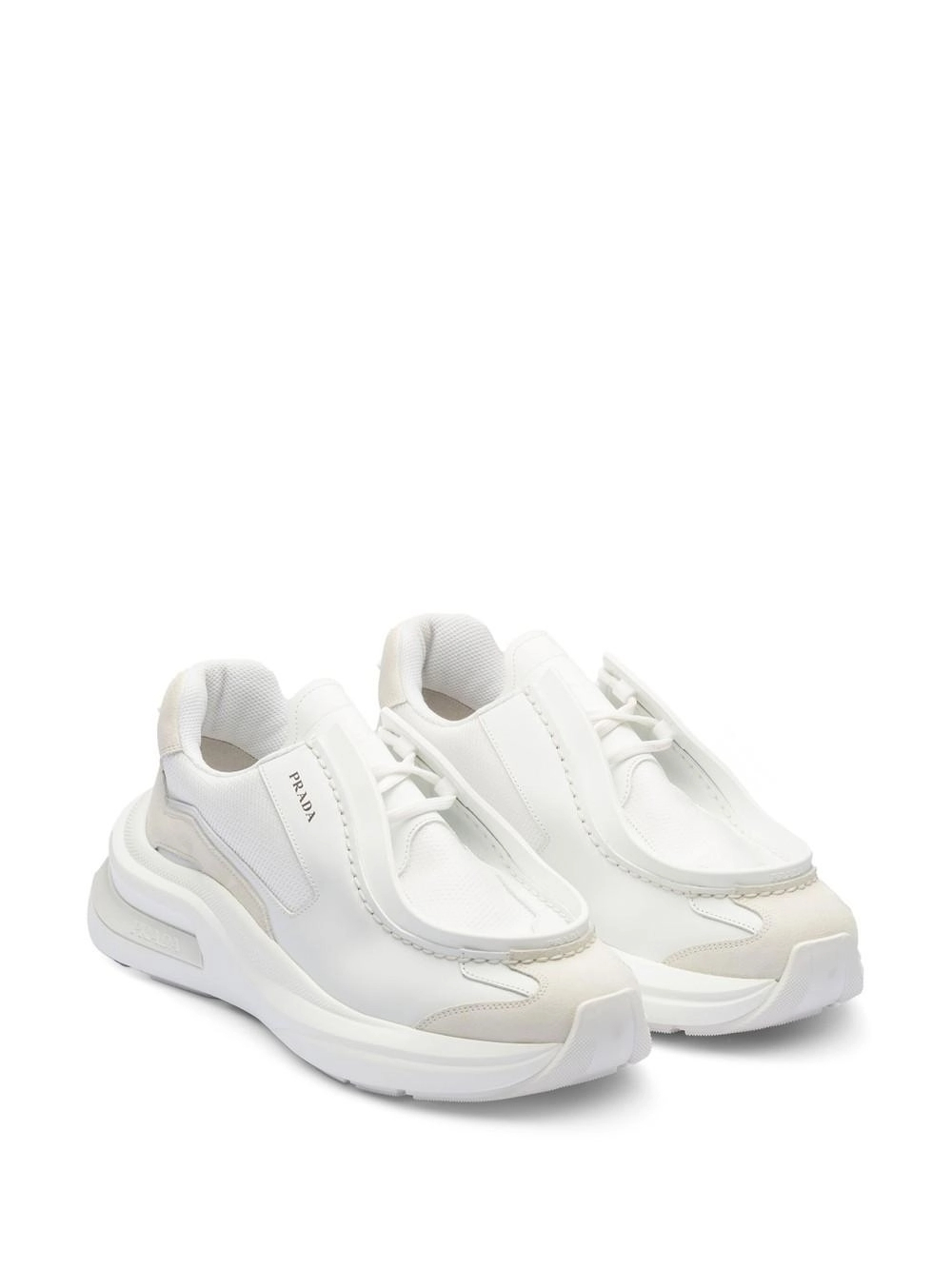 프라다 패널 가죽 청키 스니커즈 화이트