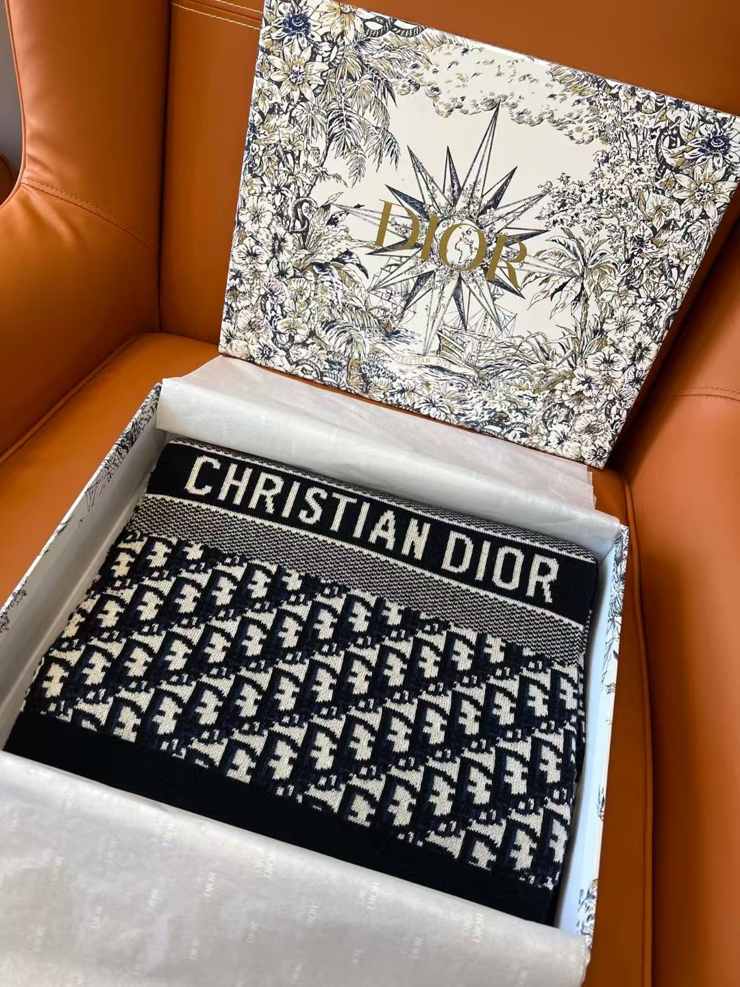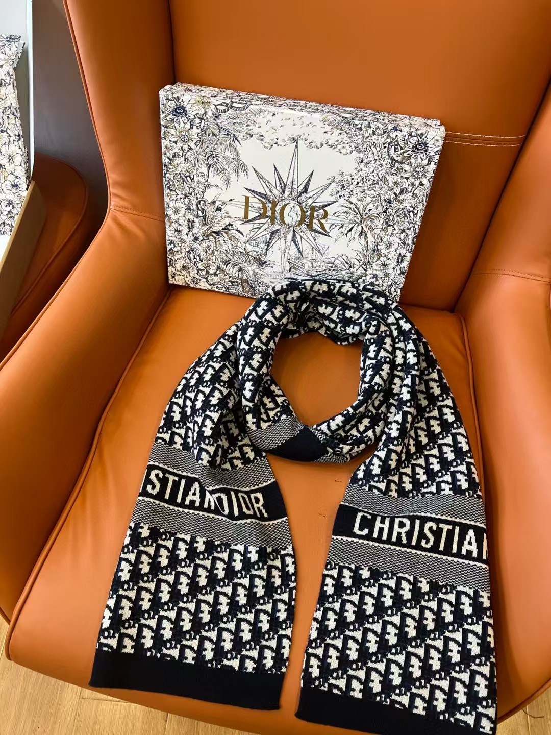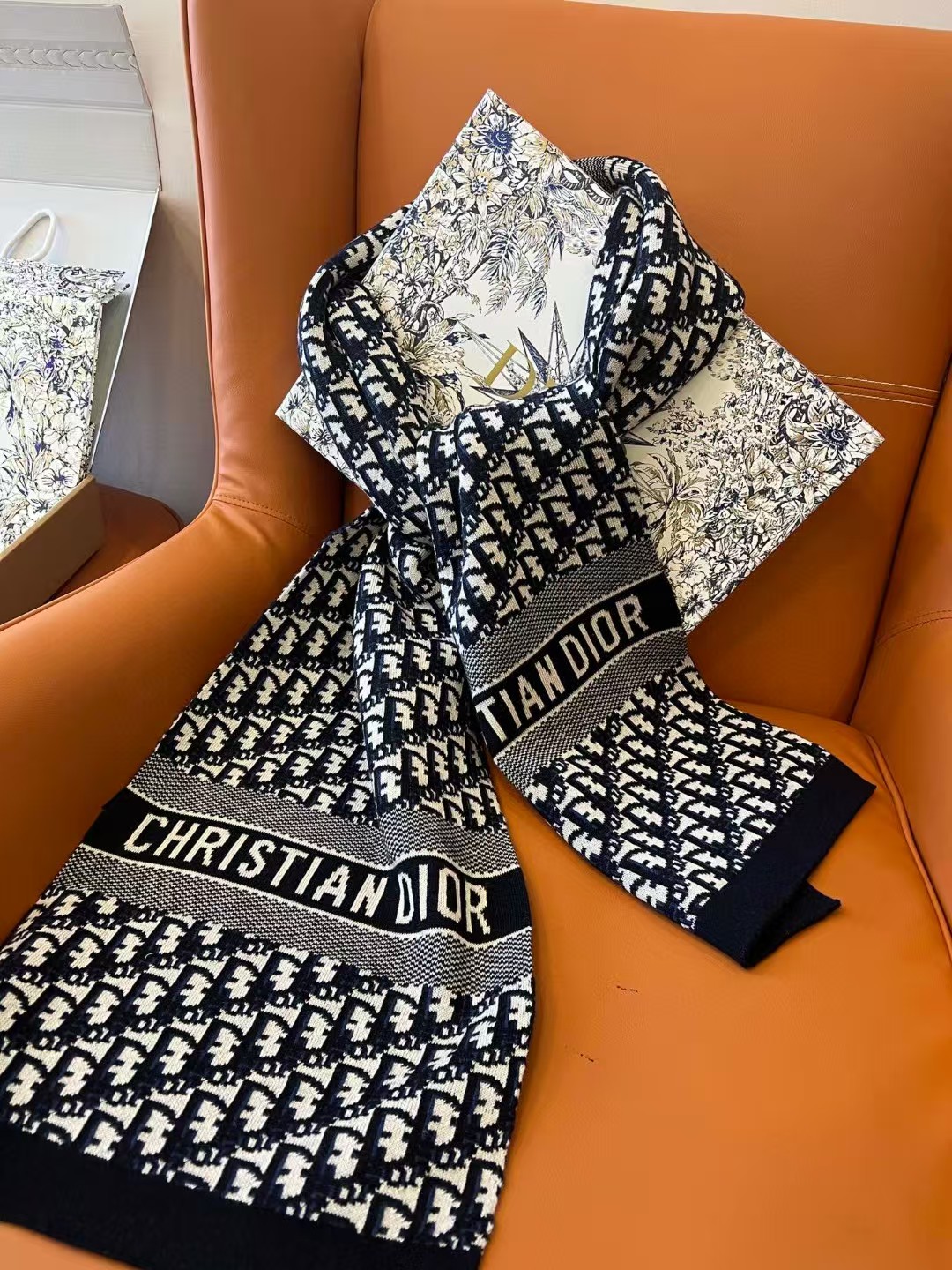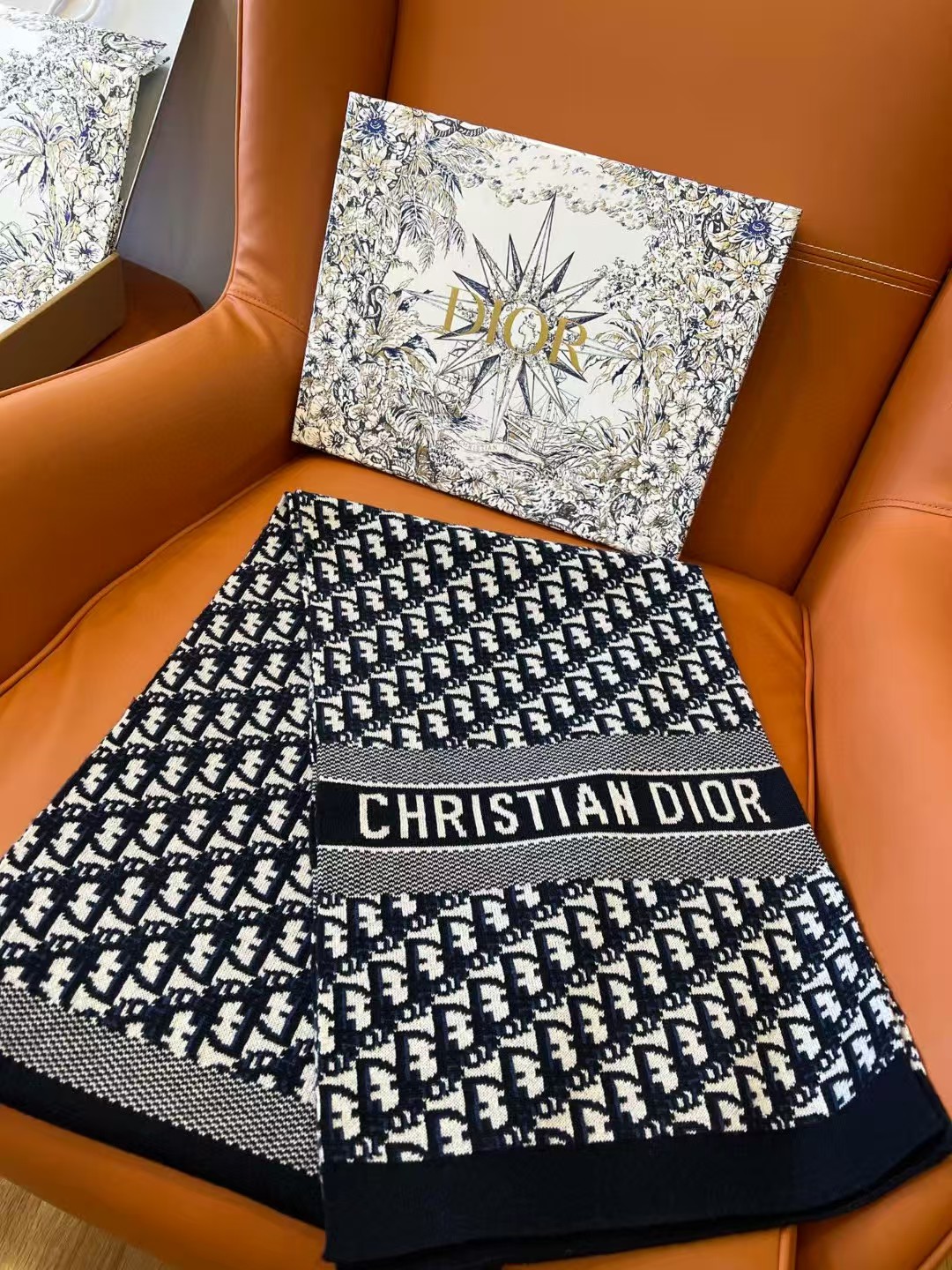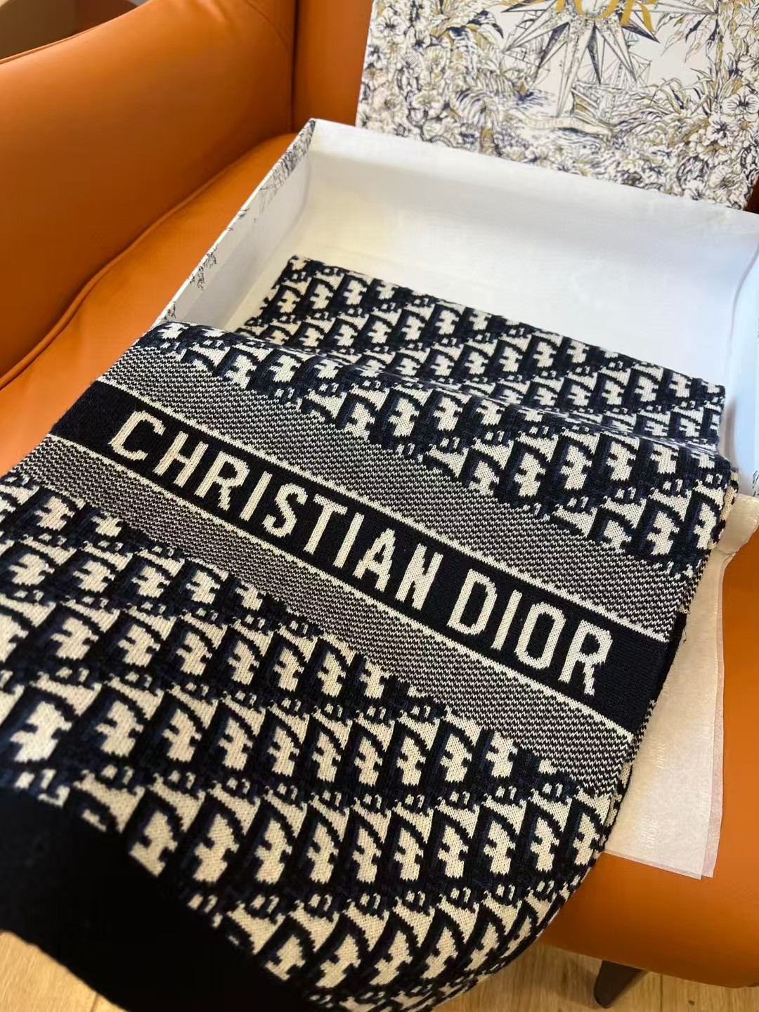 디올 오블리크 캐시미어 네이비 머플러