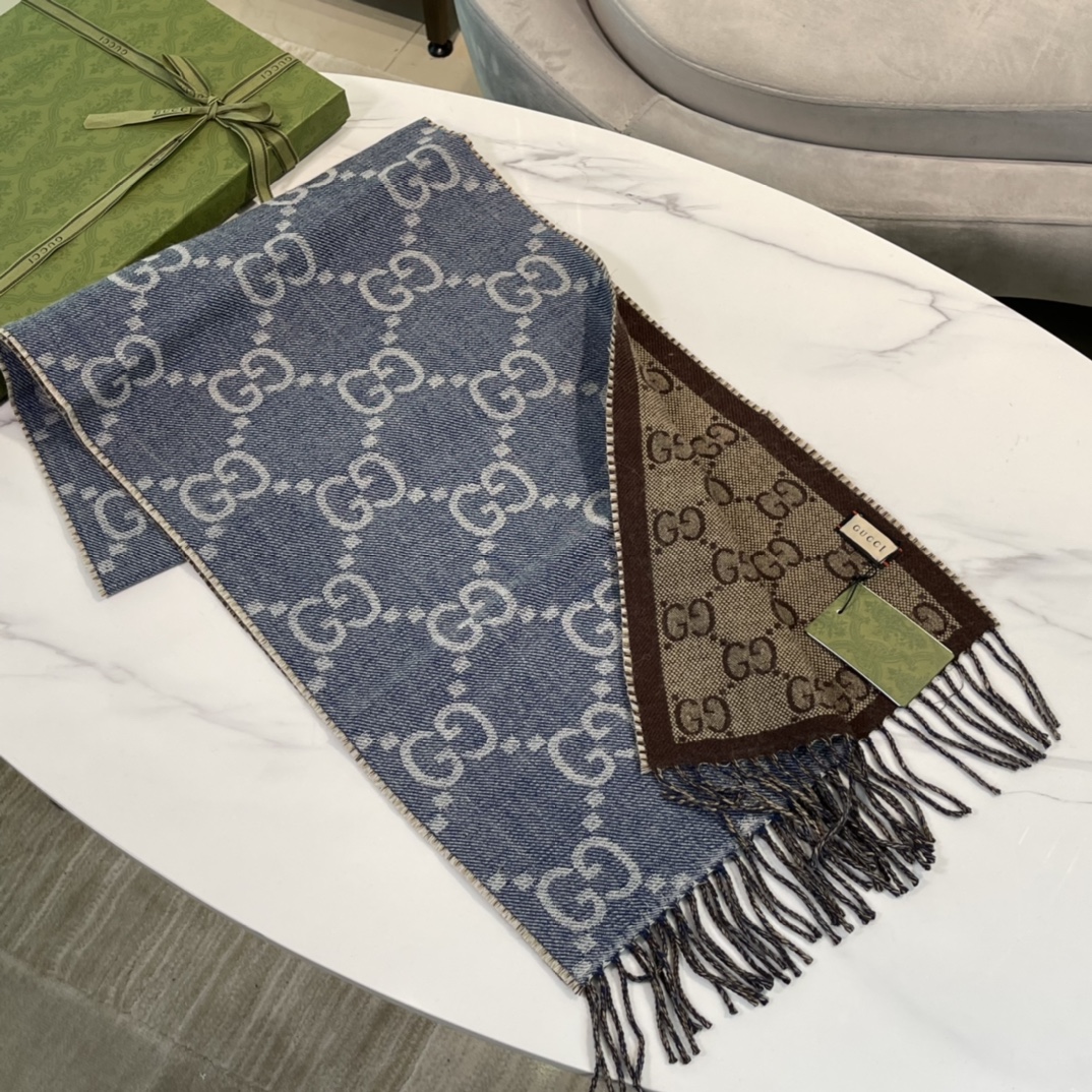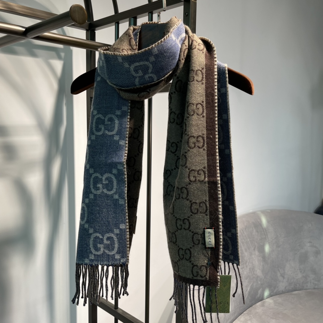 구찌 자카드 태슬 니트 머플러