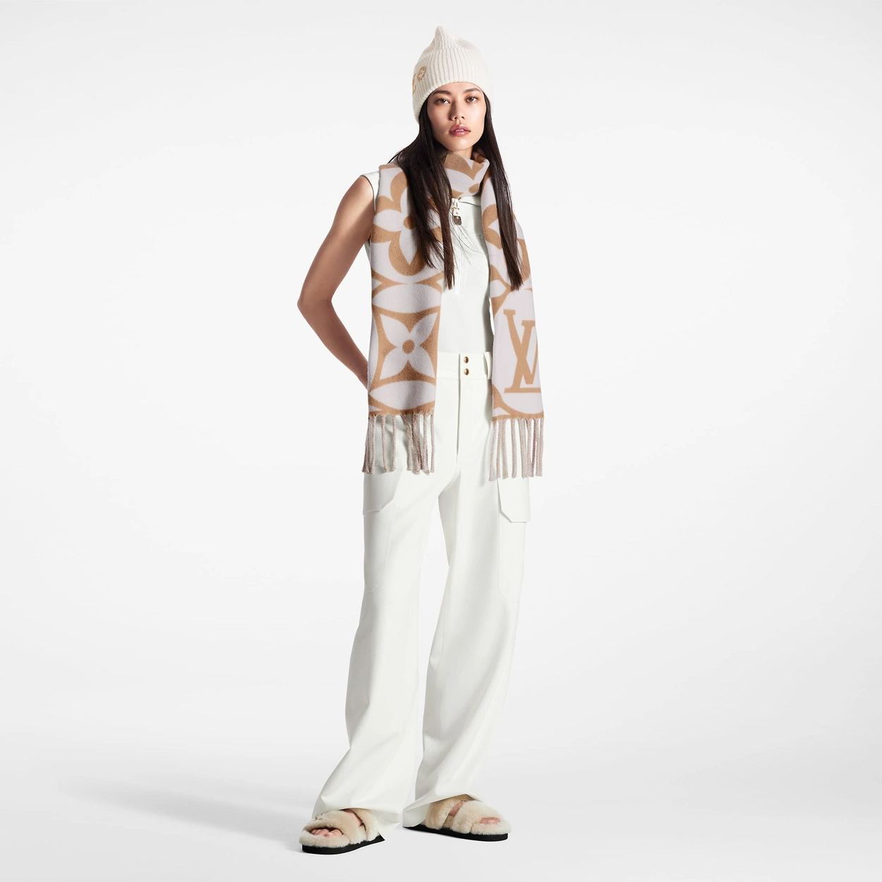 루이비통 메달리언 베이지 로즈 머플러
