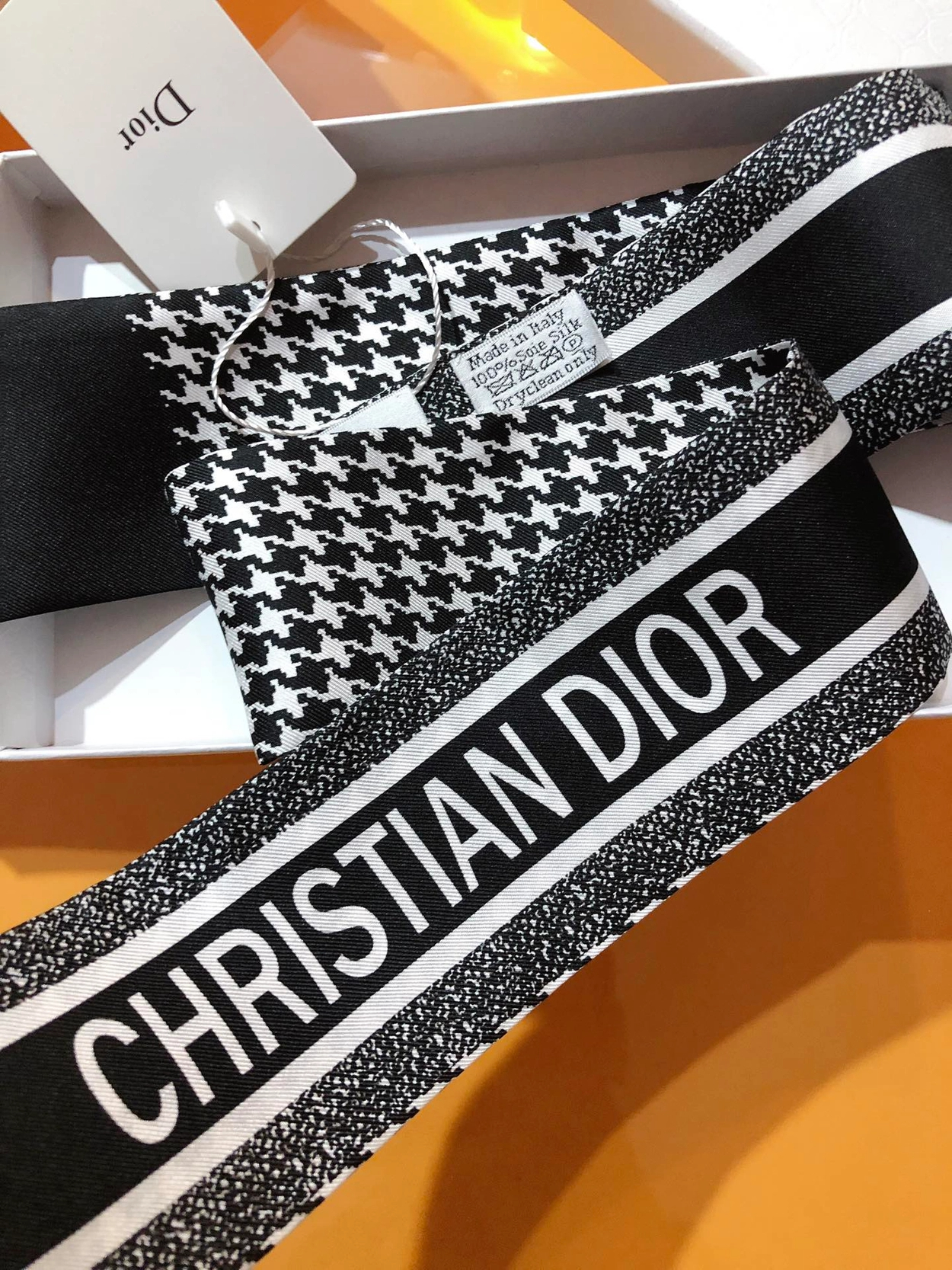 디올 몽테인 블랙 앤 화이트 실크 트윌 미차 스카프