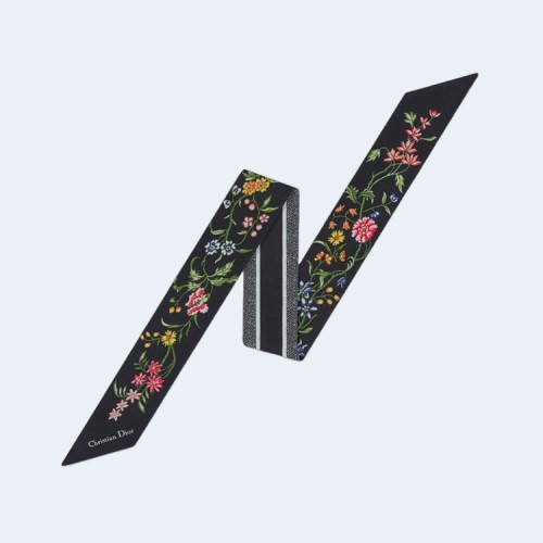 디올 블랙 멀티 컬러 실크 트윌 미차 스카프