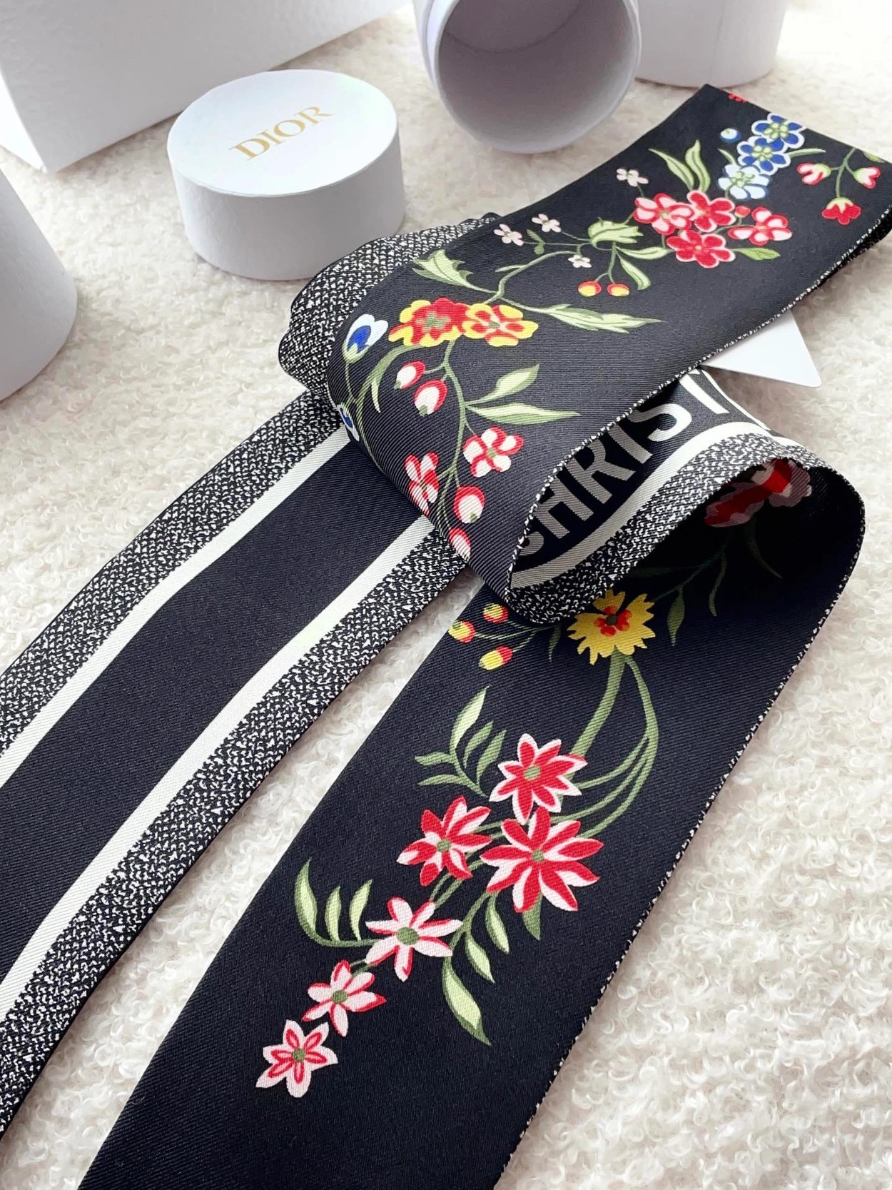 디올 블랙 투왈 드 주이 플라워 미차 스카프