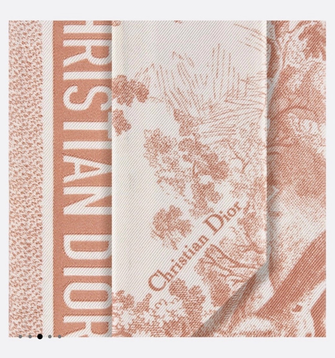 디올 아이보리 앤 핑크 실크 트윌 미차 스카프