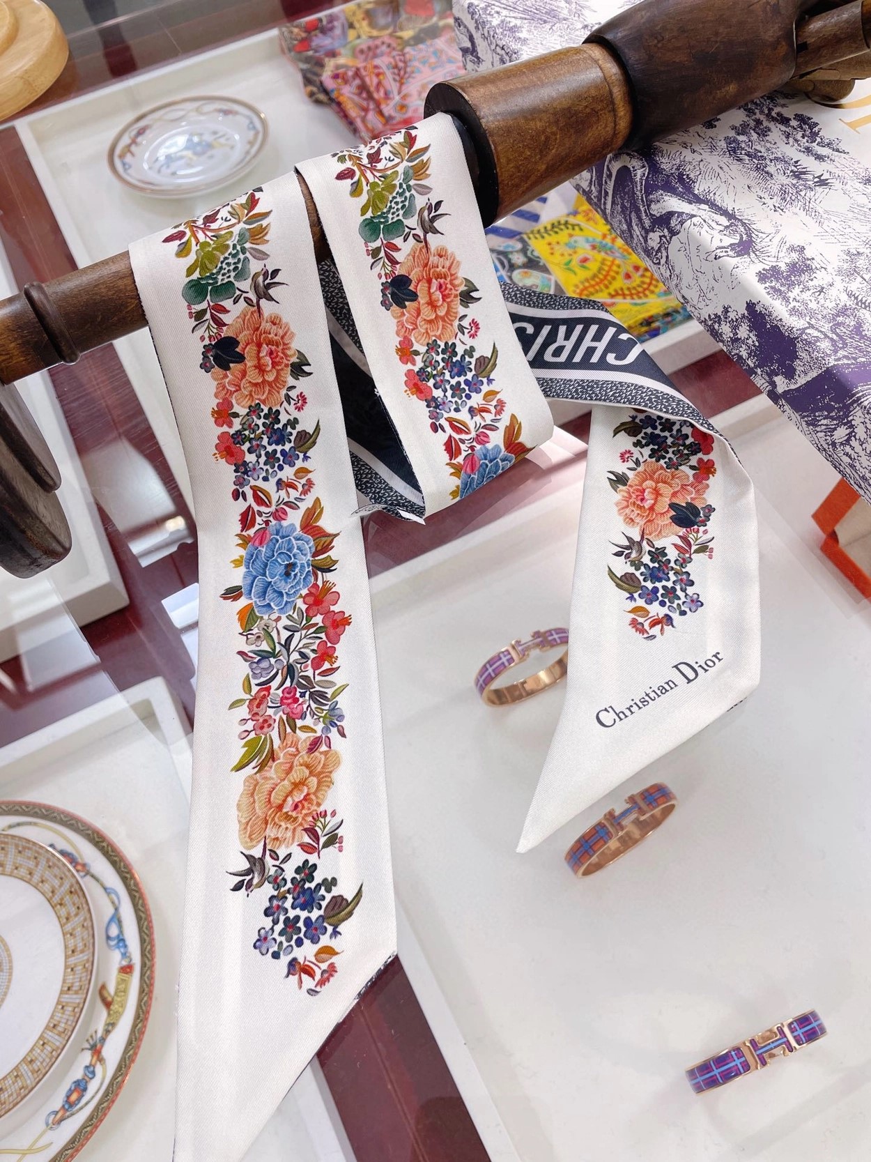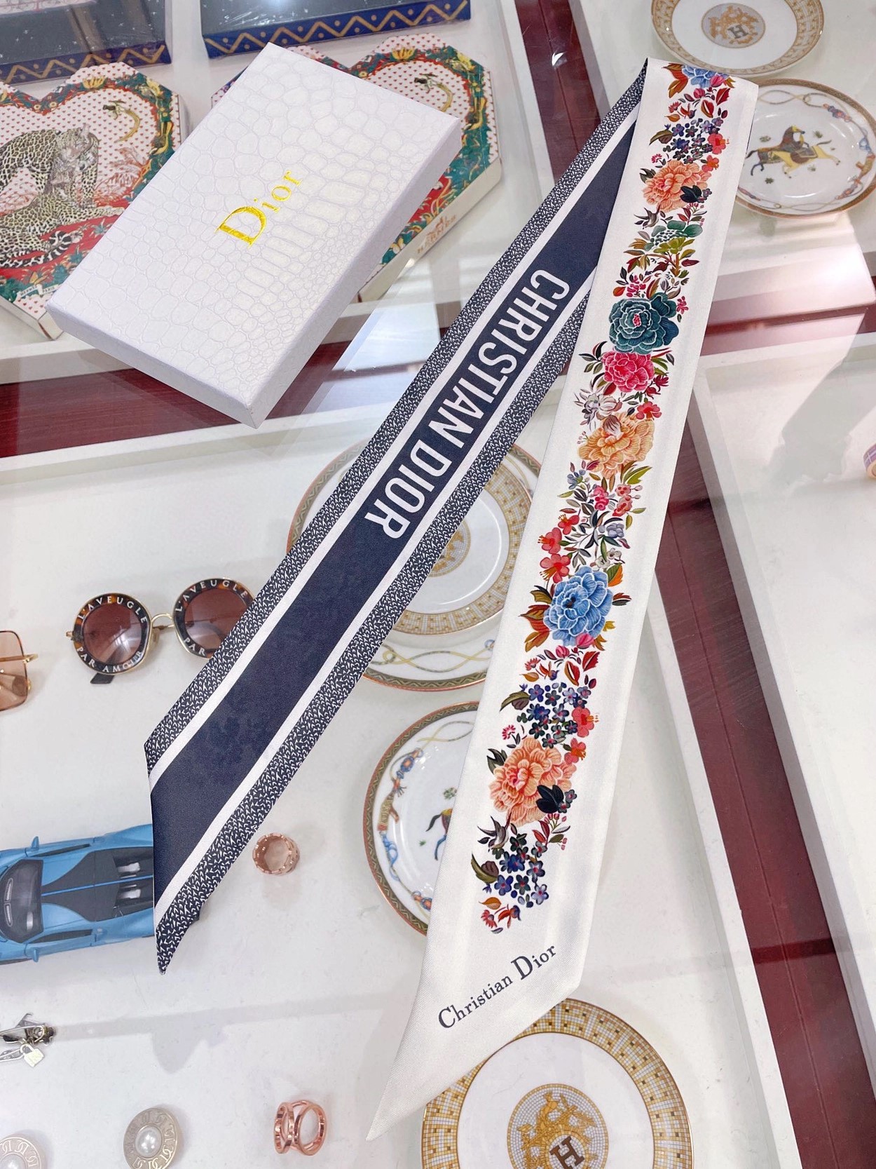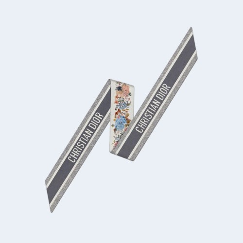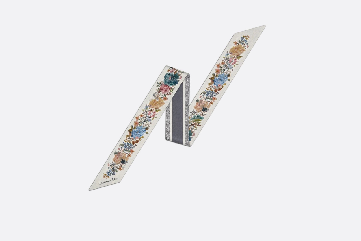 디올 화이트 멀티 컬러 실크 트윌 미차 스카프