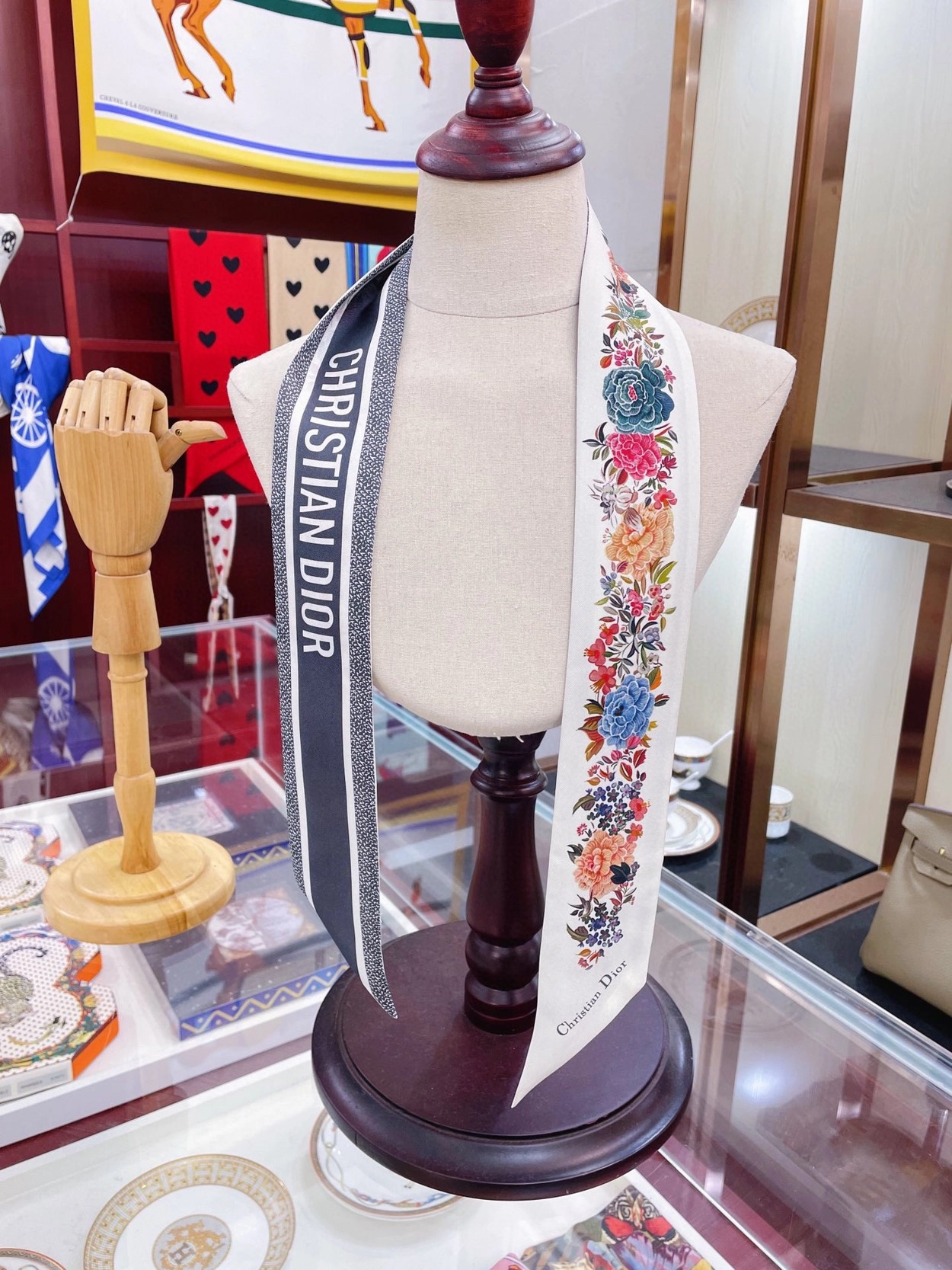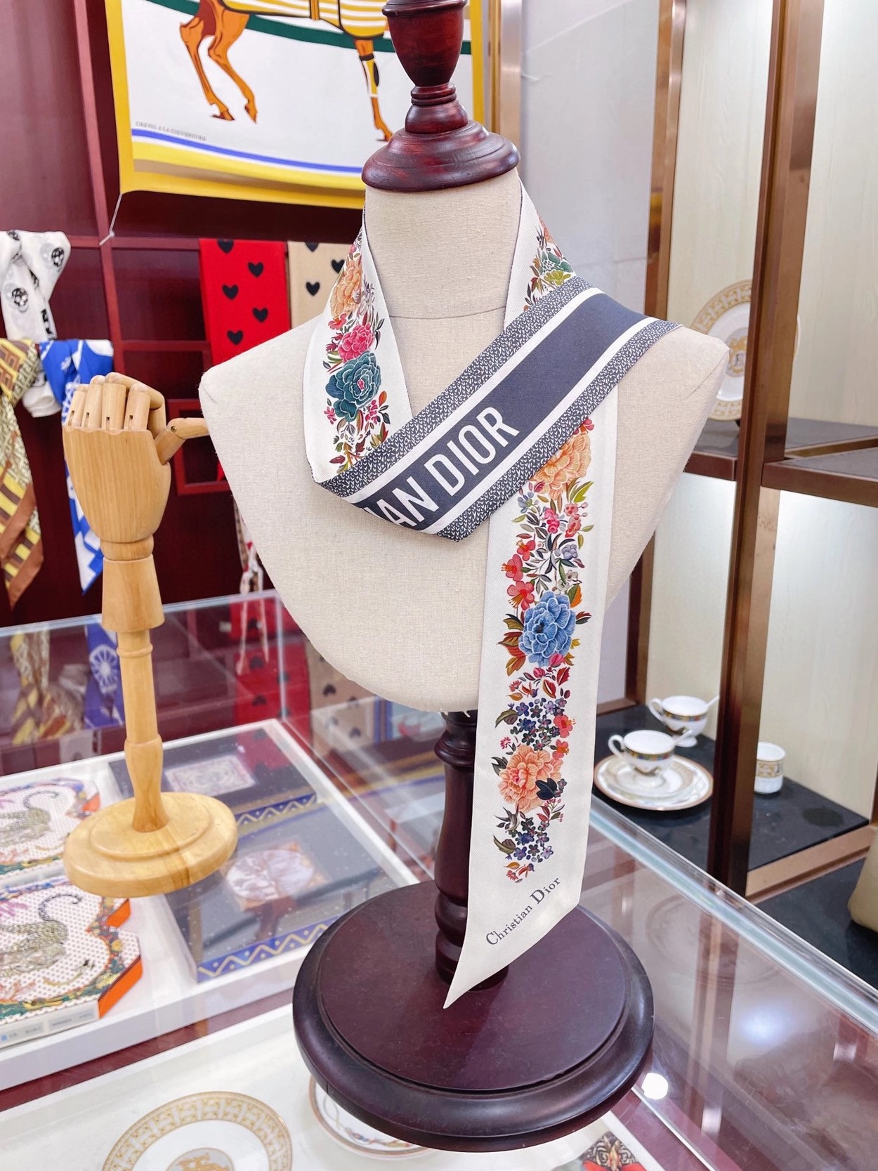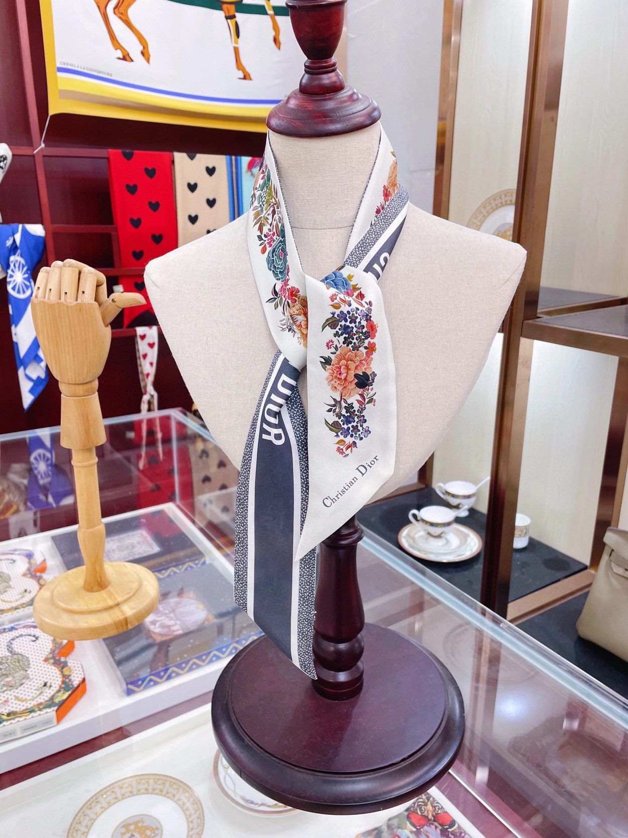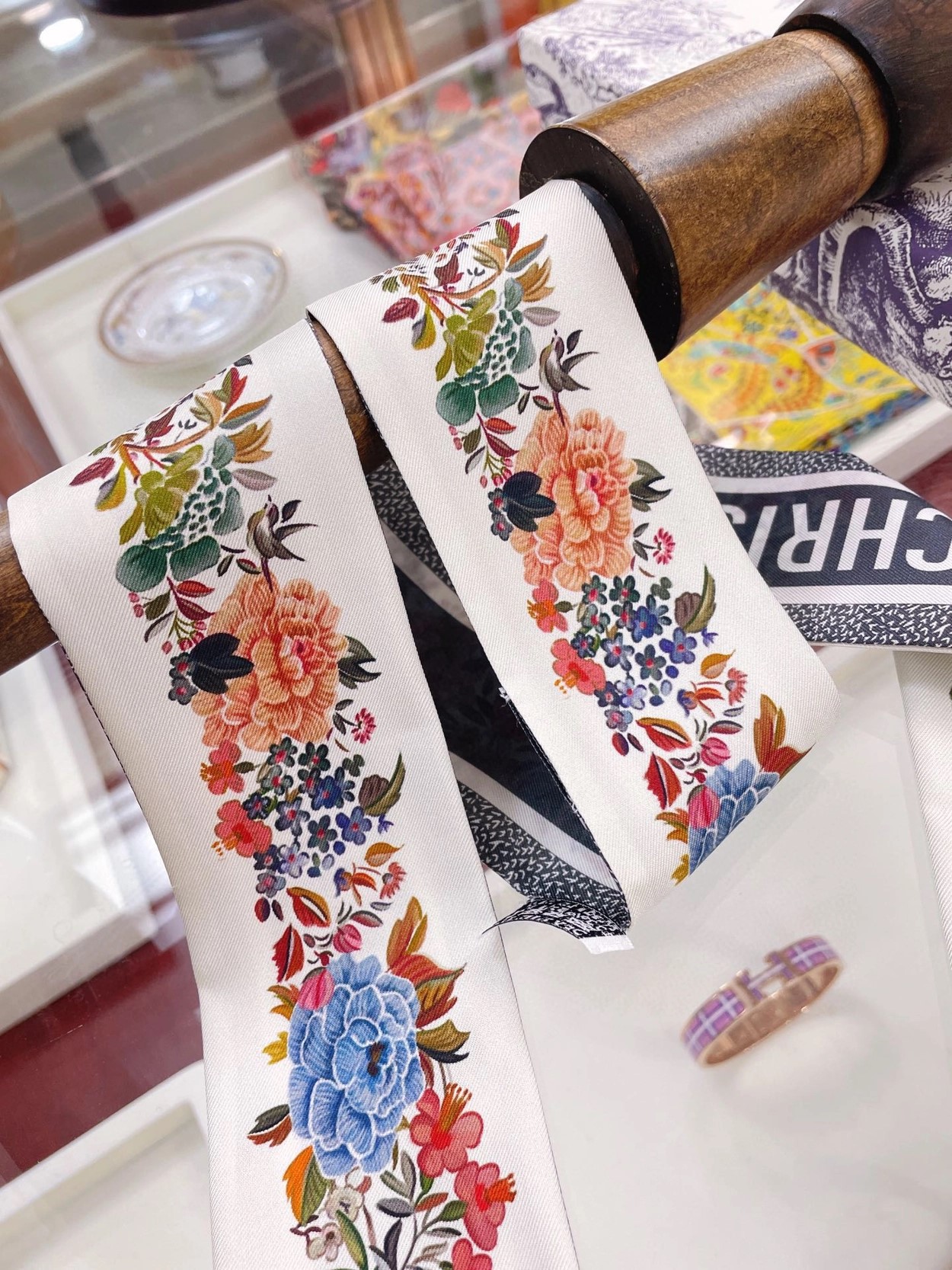 디올 화이트 멀티 컬러 실크 트윌 미차 스카프