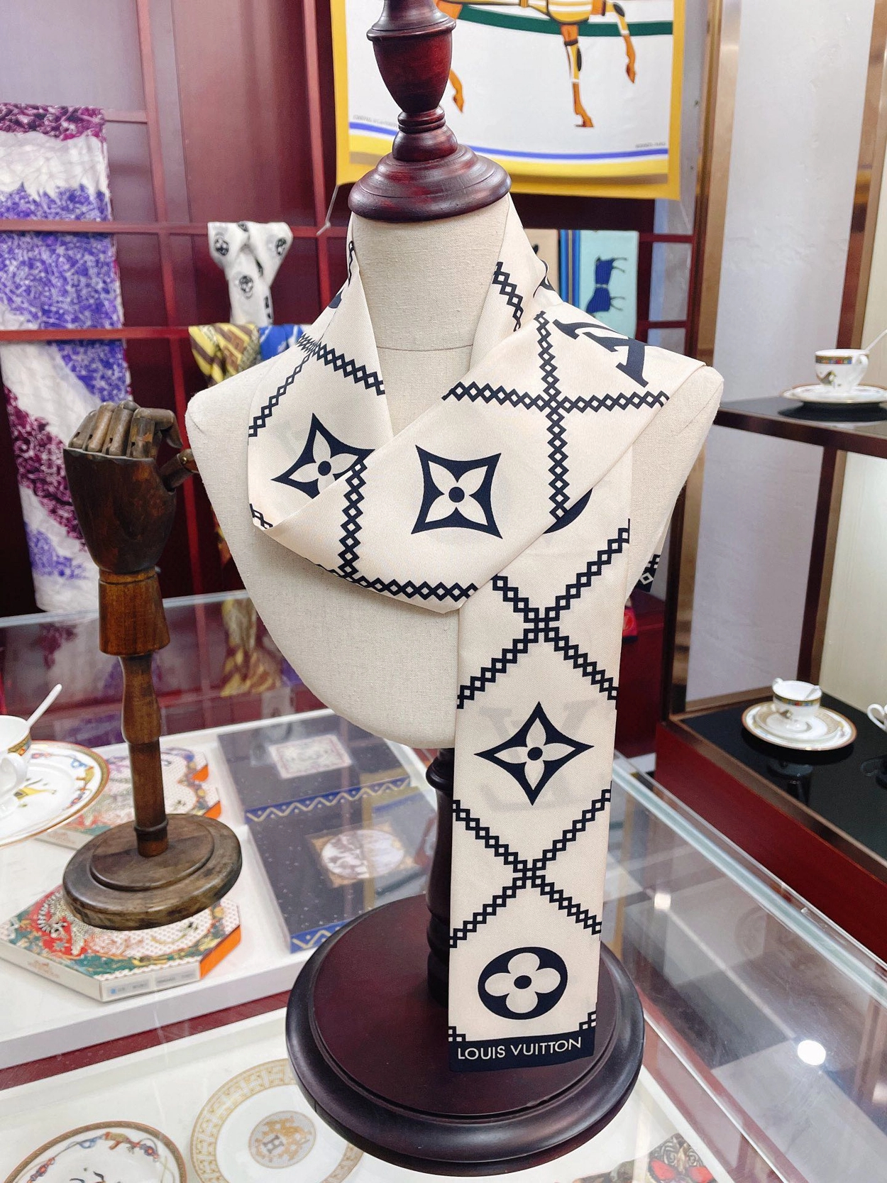 루이비통 크로아지옹 크림 방도 스카프 M77453