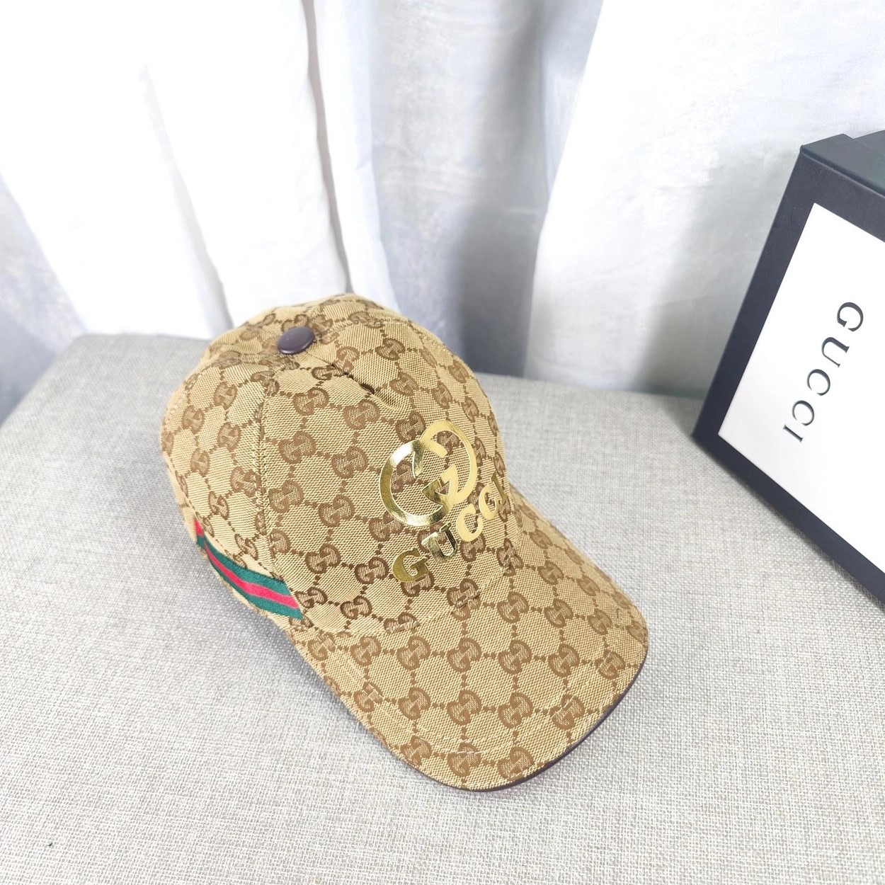 구찌 골드 로고 웨빙 베이지 베이스볼 캡