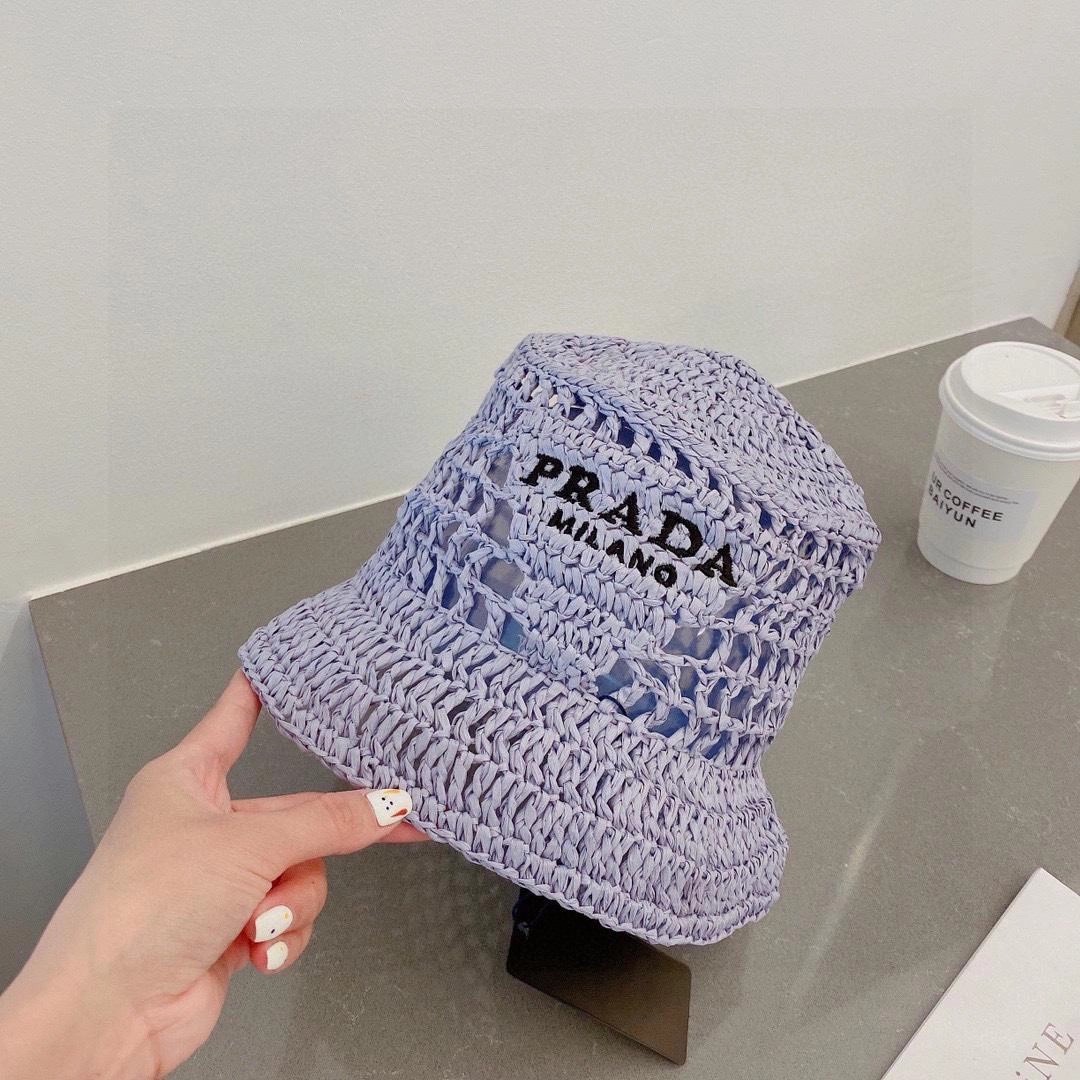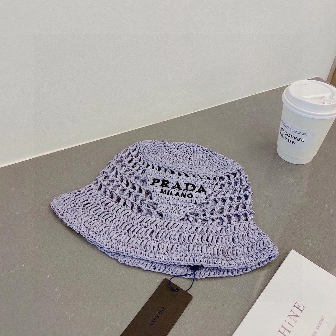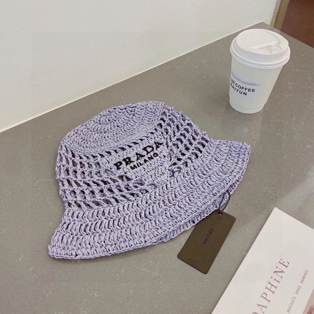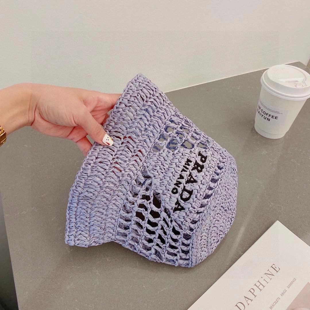 프라다 우븐 패브릭 퍼플 버킷 햇