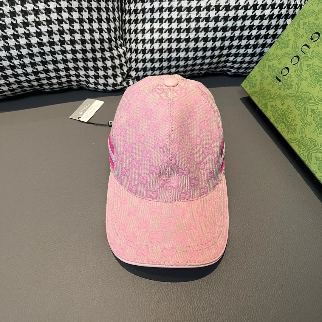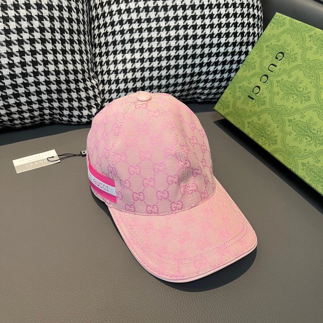 구찌 GG 자카드 로고 패치 핑크 베이스볼 캡