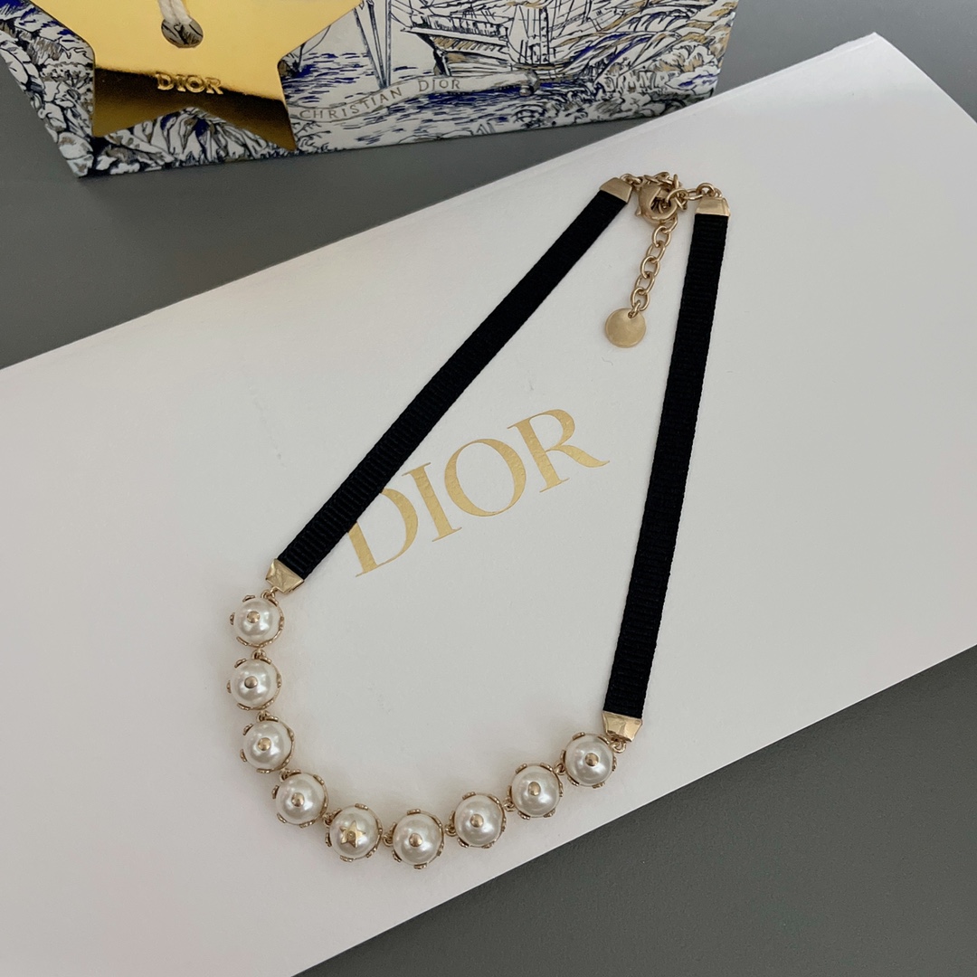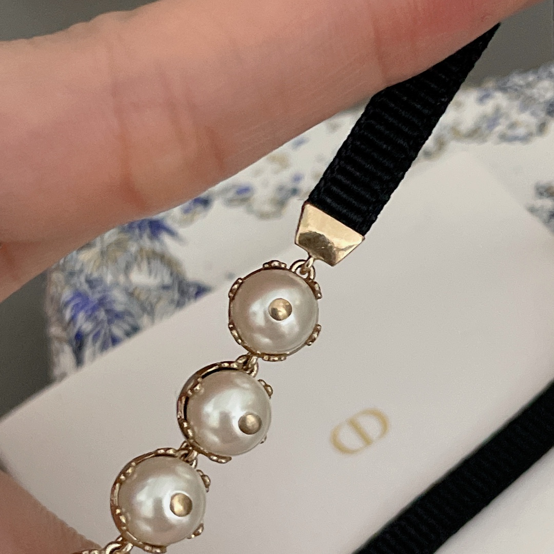 디올 D 르네상스 블랙 그로그랭 목걸이